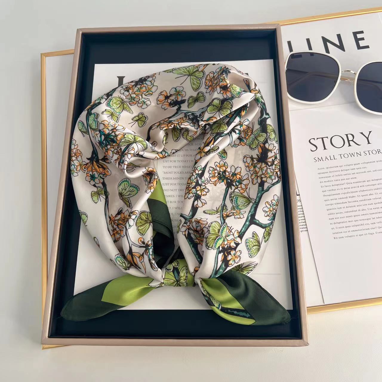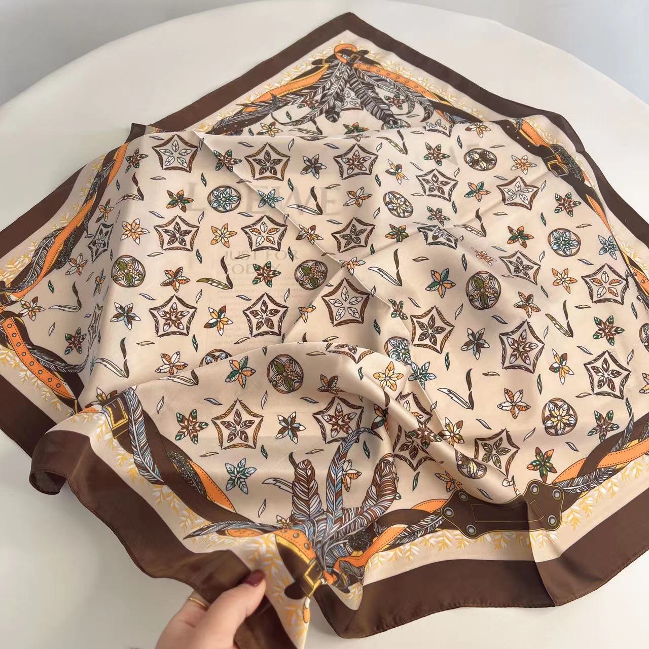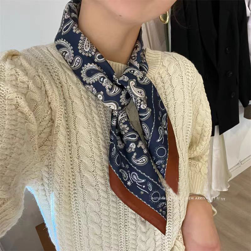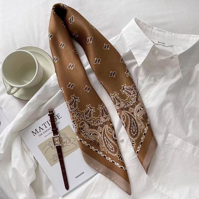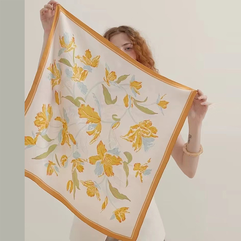 여성을위한 고급 인쇄 시뮬레이션 실크 스카프 봄과 여름 얇은 70 작은 사각형 스카프 장식 전문 스카프 유행 도매