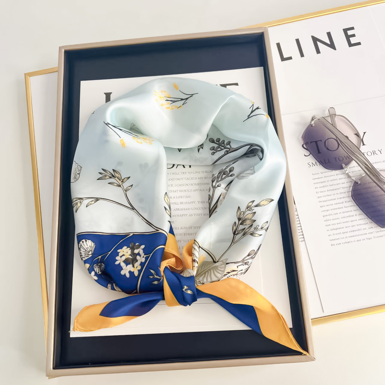 여성을위한 고급 인쇄 시뮬레이션 실크 스카프 봄과 여름 얇은 70 작은 사각형 스카프 장식 전문 스카프 유행 도매스토어 가기