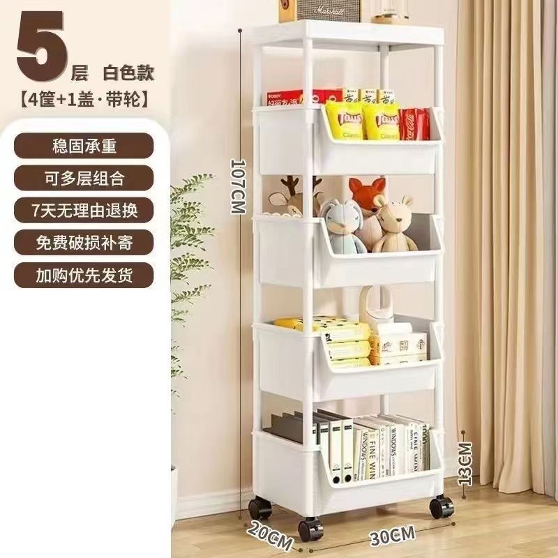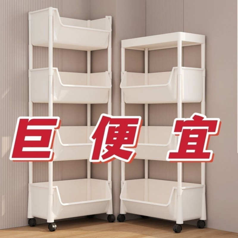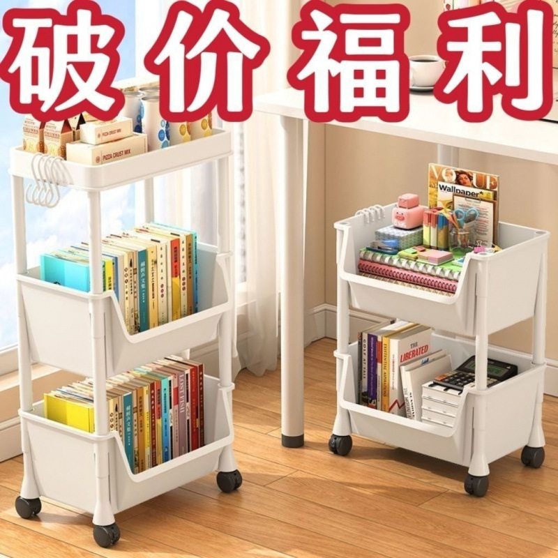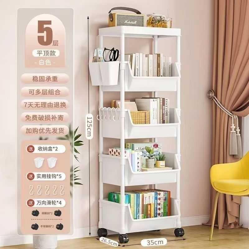 트롤리 수납 선반 이동식 책장 바닥에 세워진 다층 바퀴 달린 거실 기숙사 어린이 작은 책장 트롤리 수납 선반스토어 가기