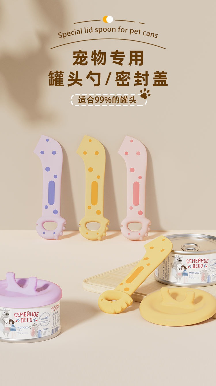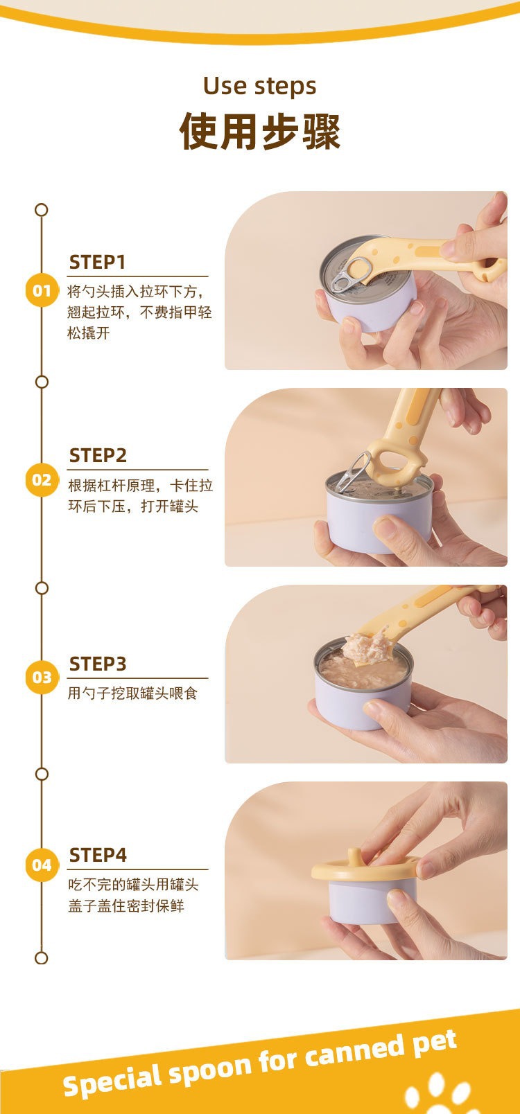 뚜껑이 있는 애완용 고양이 다기능 캔 스푼, 습식 식품 먹이 스푼 세트, 애완동물 보존 및 밀봉 캔 오프너
