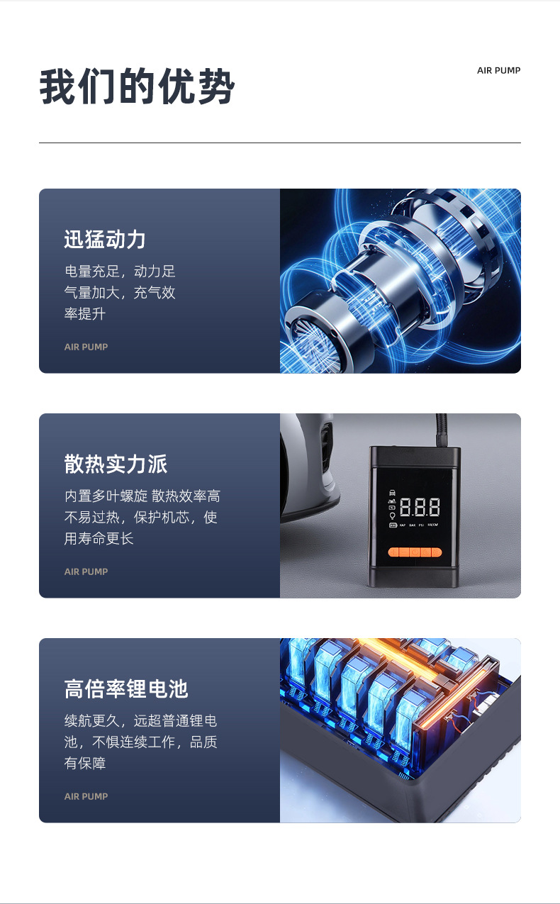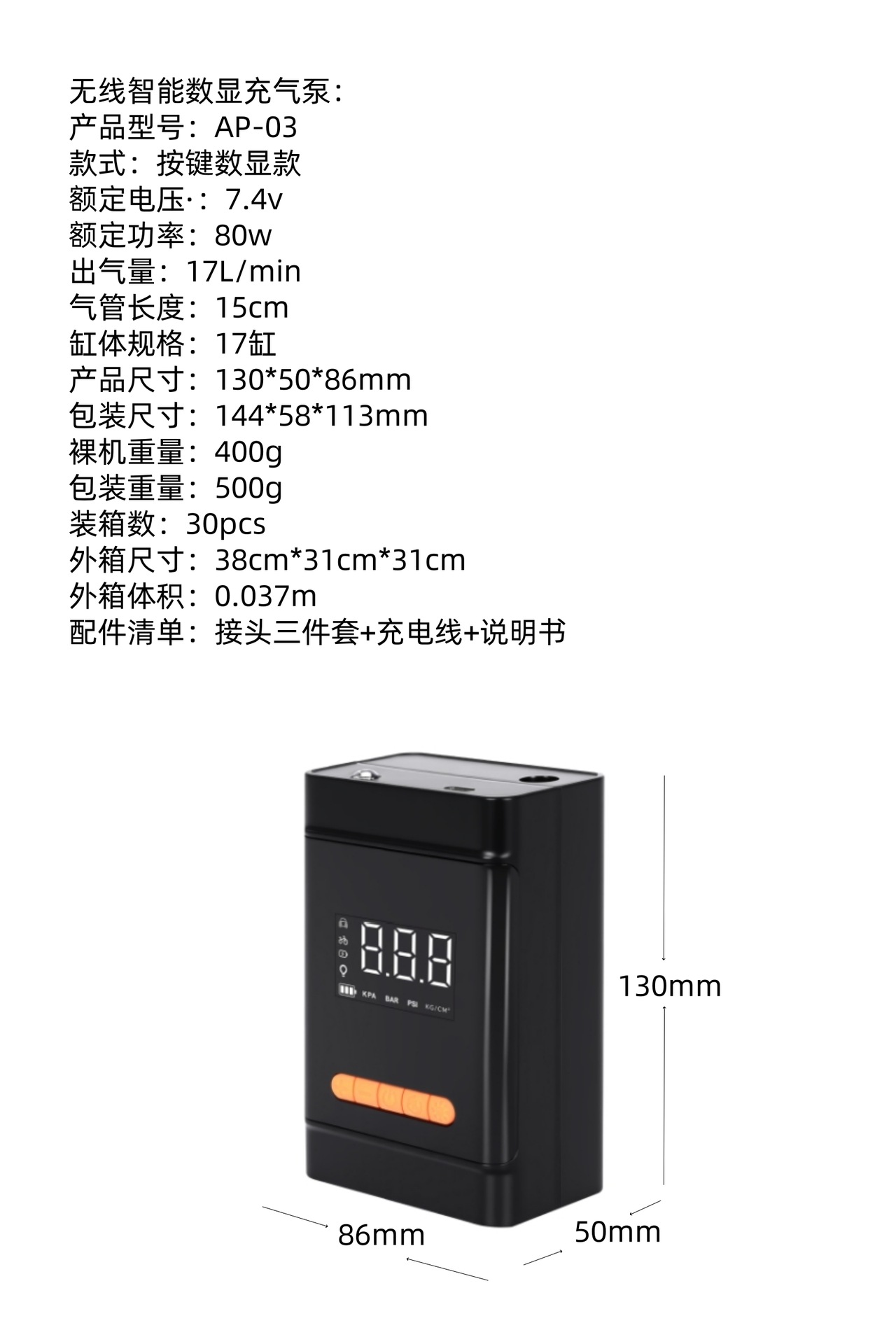 휴대용 자동차 공기 펌프 고출력 무선 지능형 디지털 디스플레이 전기 공기 펌프 다기능 타이어 공기 펌프