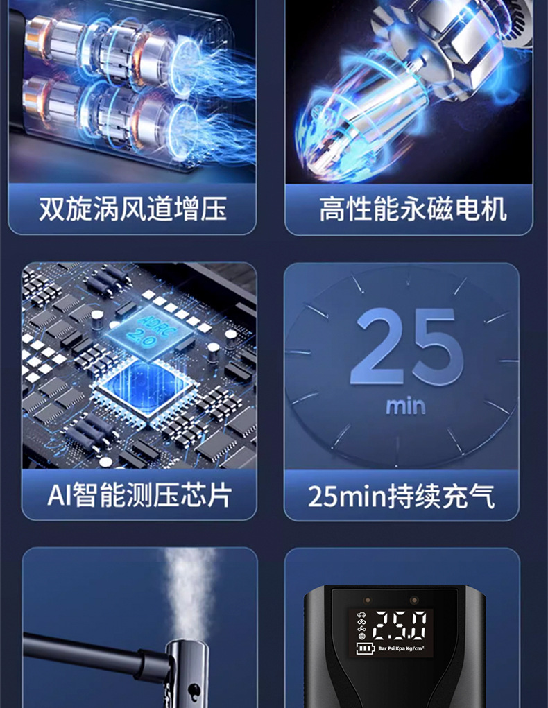 휴대용 자동차 공기 펌프 고출력 무선 지능형 디지털 디스플레이 전기 공기 펌프 다기능 타이어 공기 펌프스토어 가기