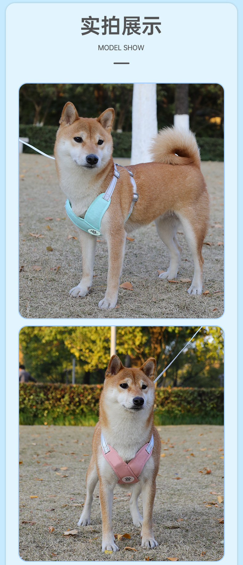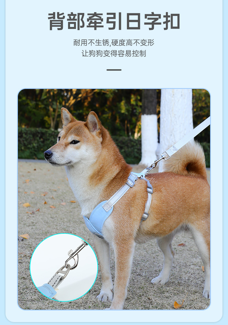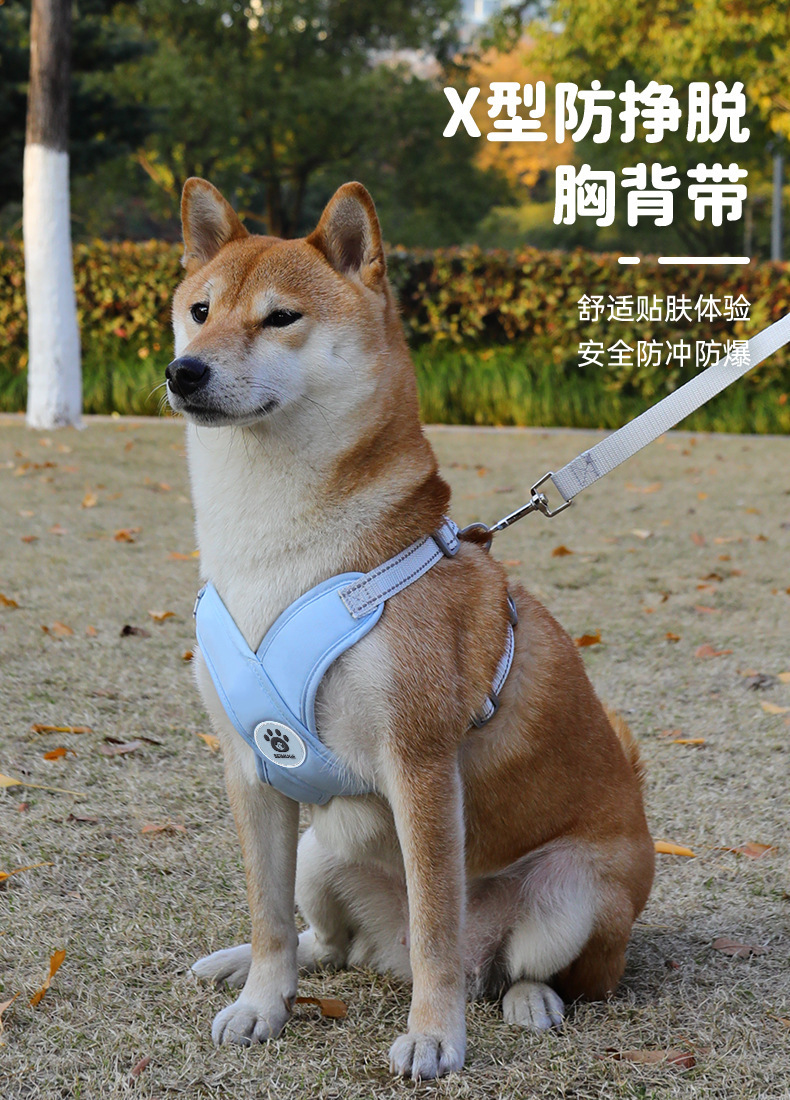 애완동물 X자형 가슴보호 하네스, 조절 가능한 탈출방지, 중소형 시바견 테디 특수 개목줄스토어 가기