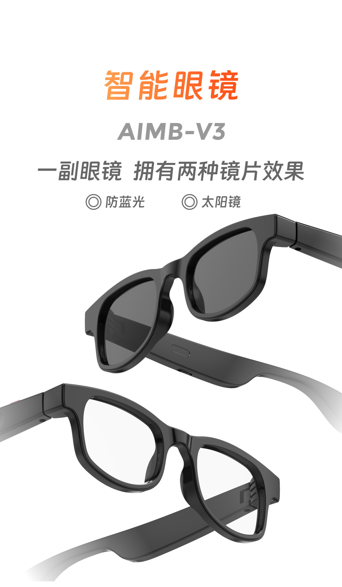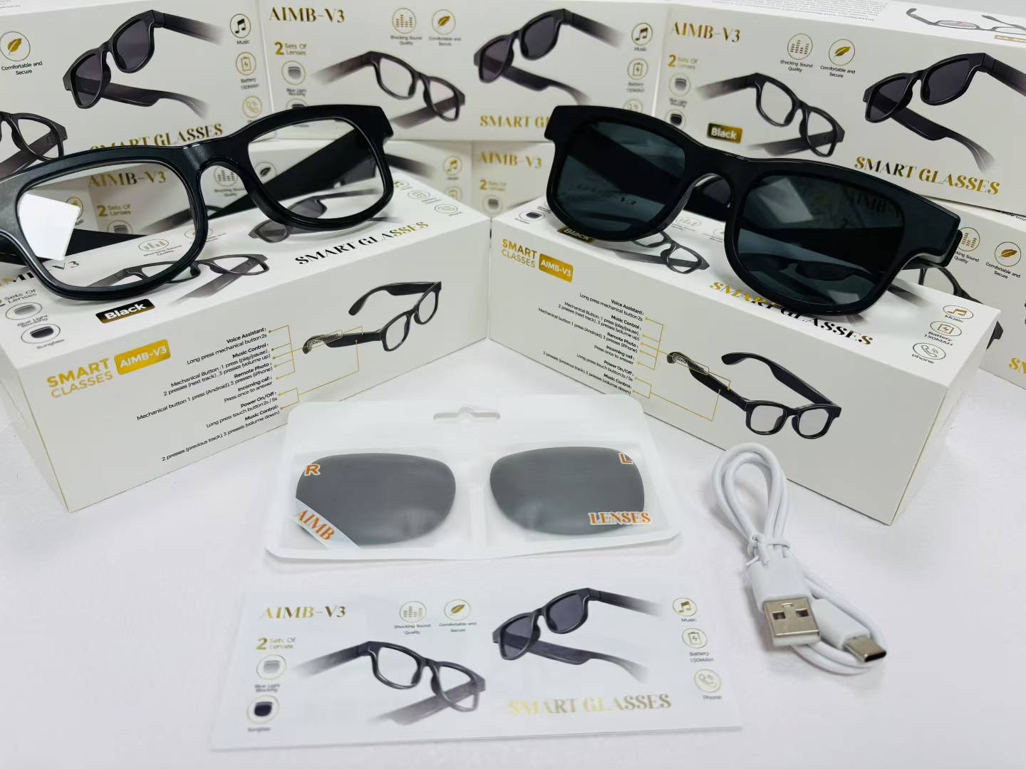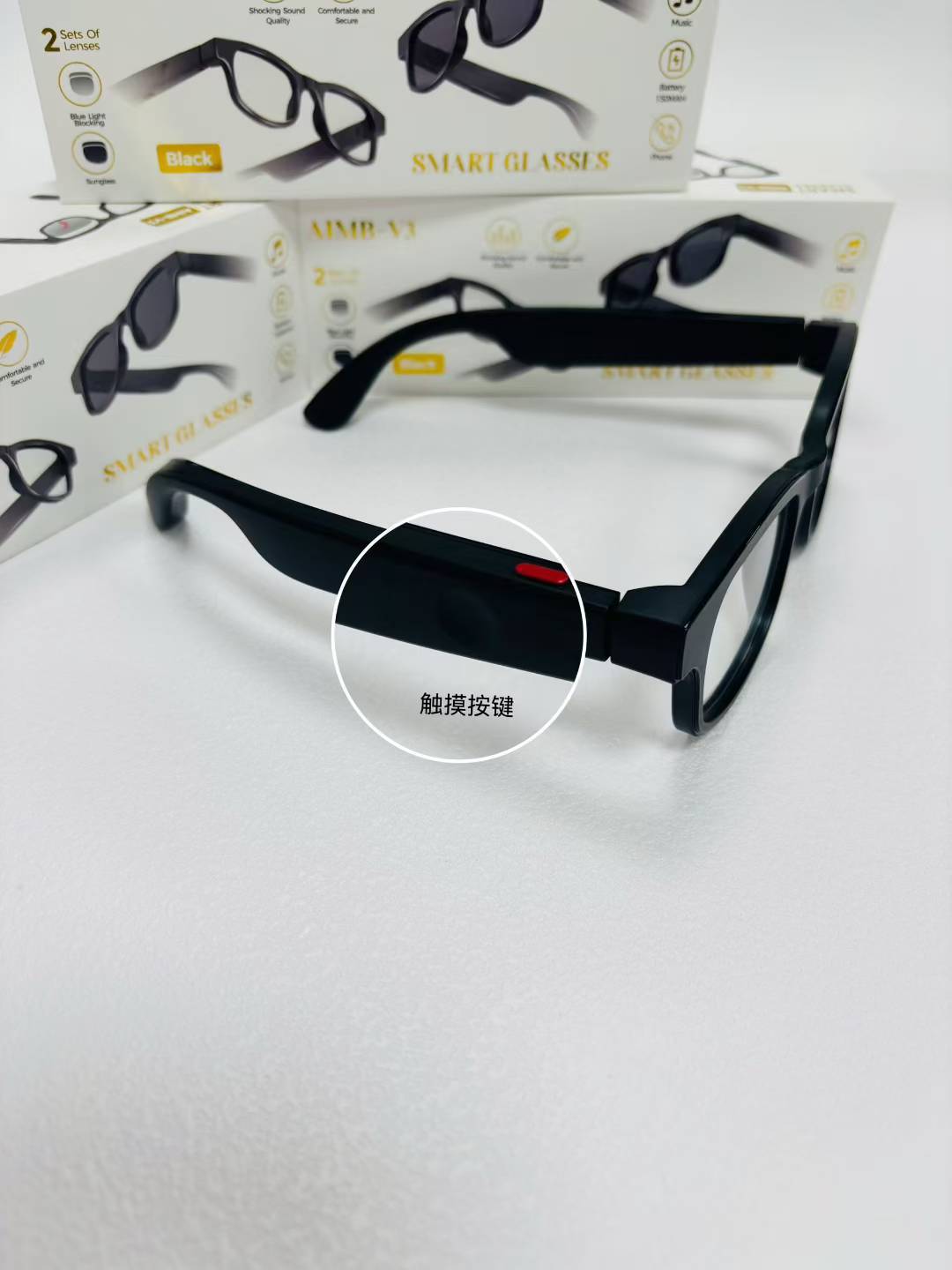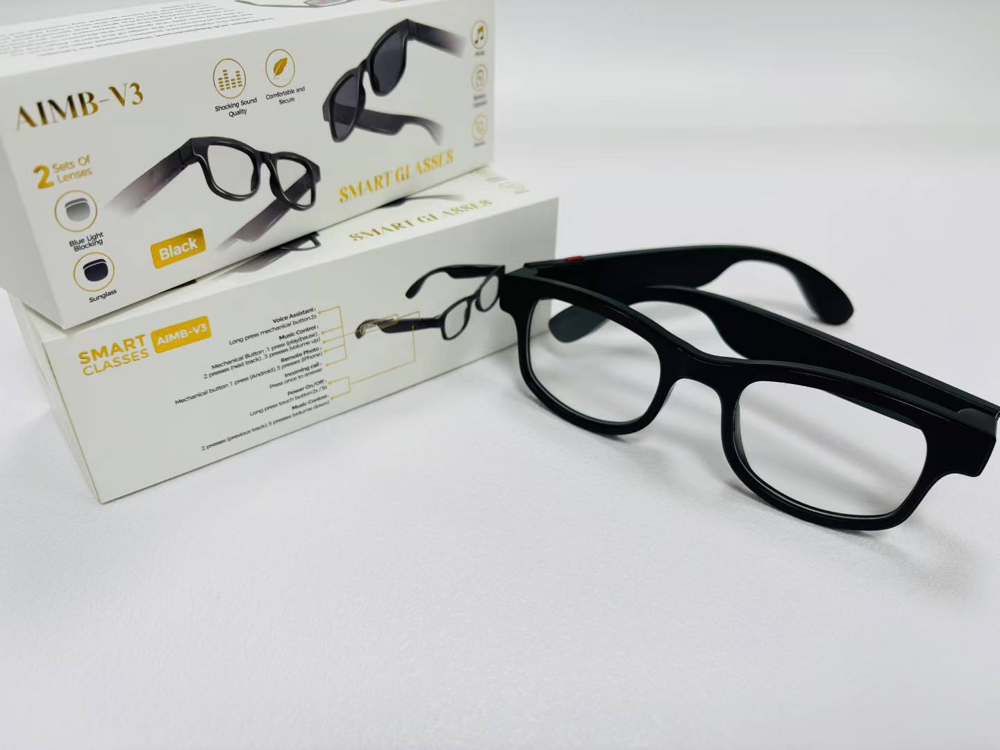 국경 간 인기 AIMB-V3 스마트 안경 이중 렌즈 자외선 방지 원격 제어 사진 Bluetooth 전화 대형 프레임 눈스토어 가기