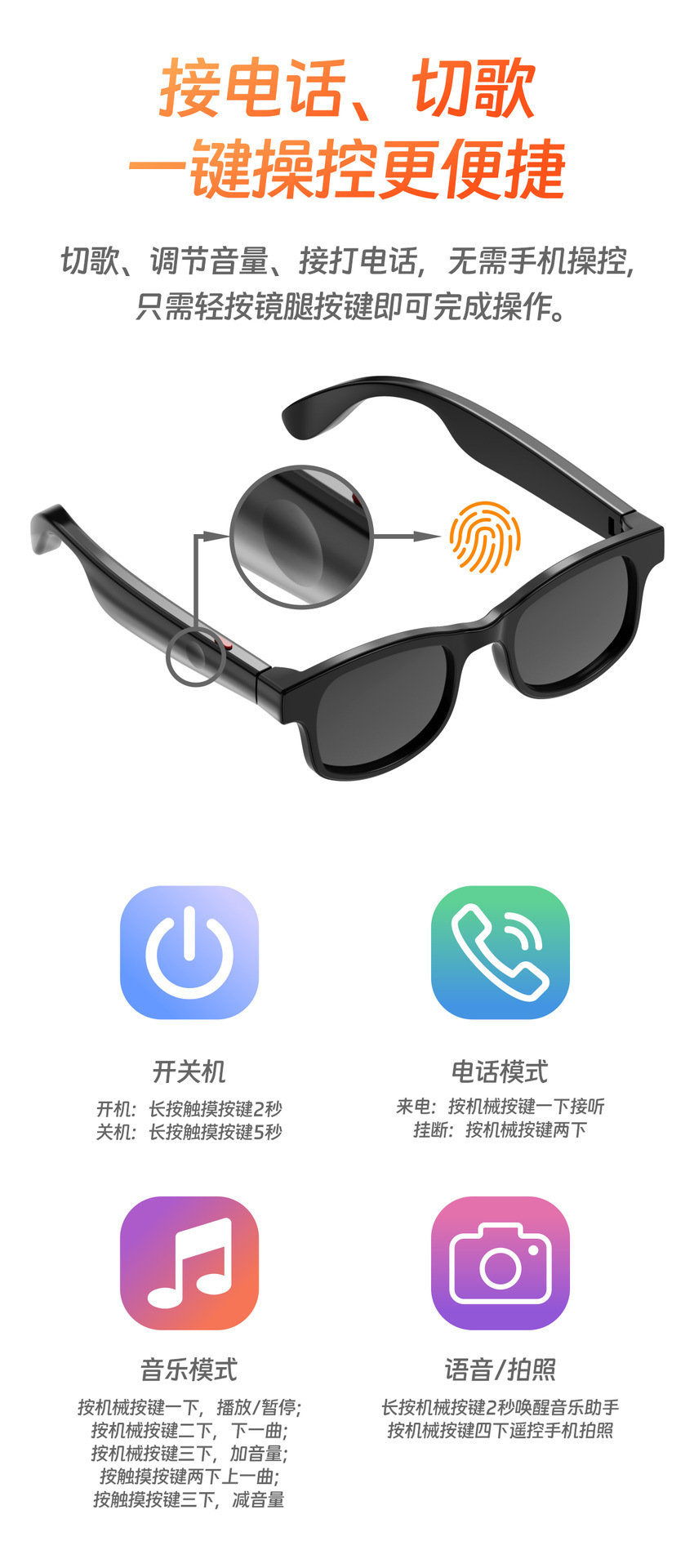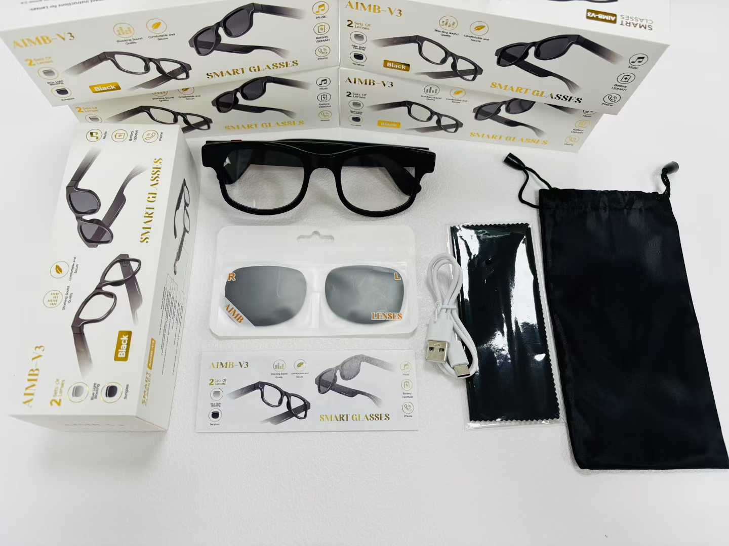 국경 간 인기 AIMB-V3 스마트 안경 이중 렌즈 자외선 방지 원격 제어 사진 Bluetooth 전화 대형 프레임 눈