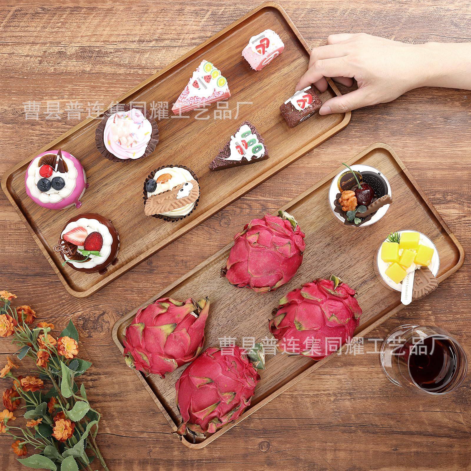 간단한 나무 트레이 사각형 트레이 디너 플레이트 호텔 단단한 나무 서빙 직사각형 티 컵 치즈 과일 나무 트레이