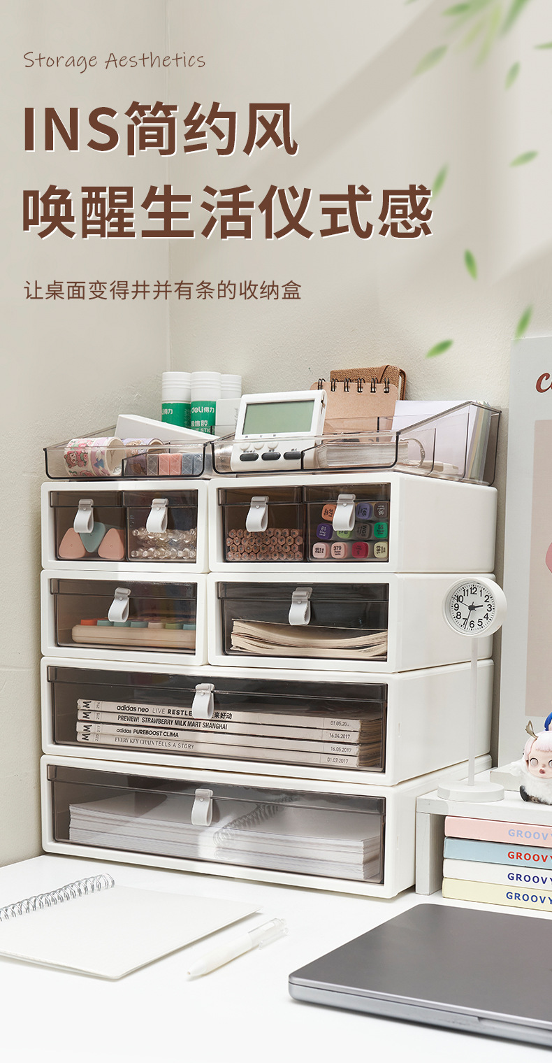 [핫 스타일] 데스크탑 수납함 서랍형 사무용 문구 및 화장품 수납함 정리 다층 수납함스토어 가기
