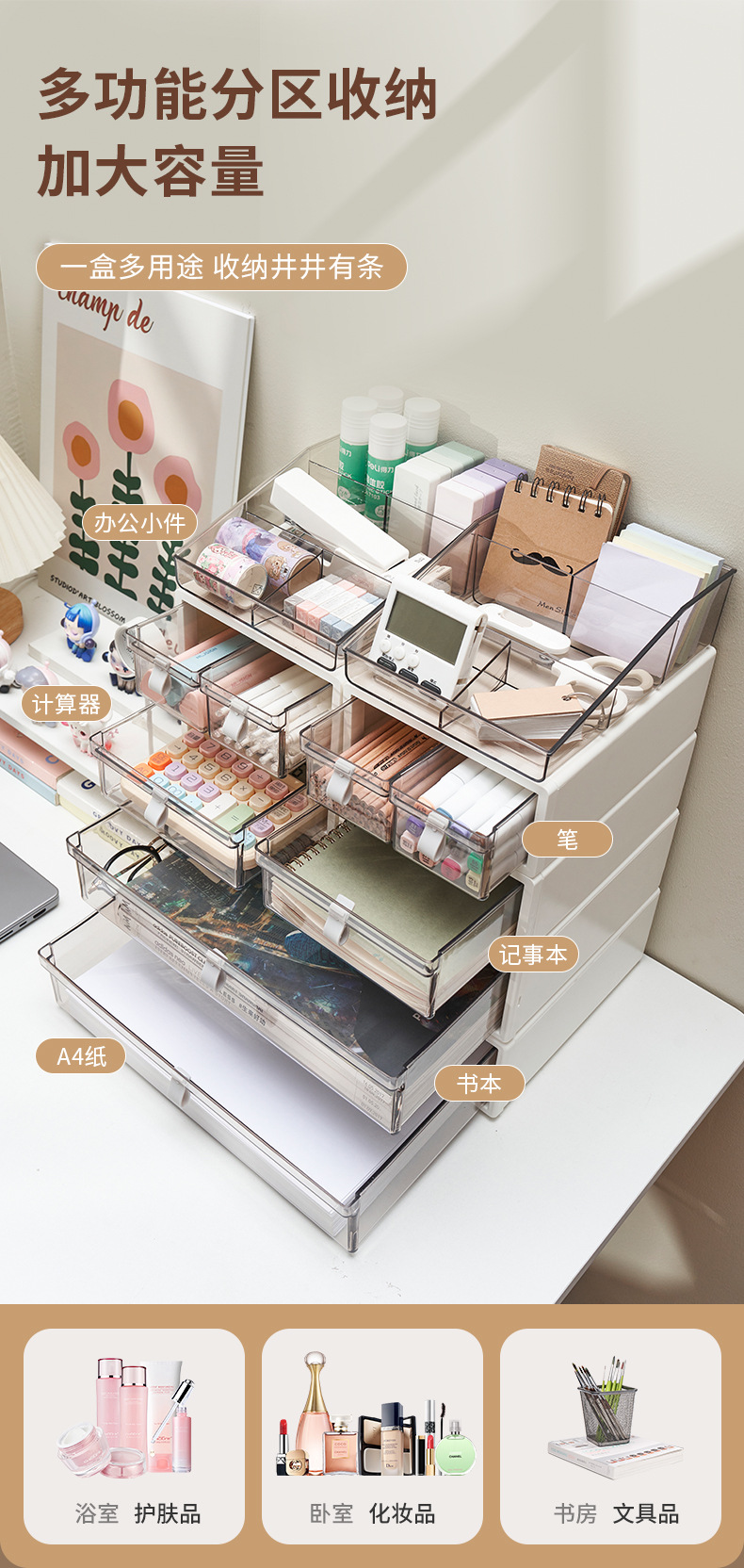 [핫 스타일] 데스크탑 수납함 서랍형 사무용 문구 및 화장품 수납함 정리 다층 수납함