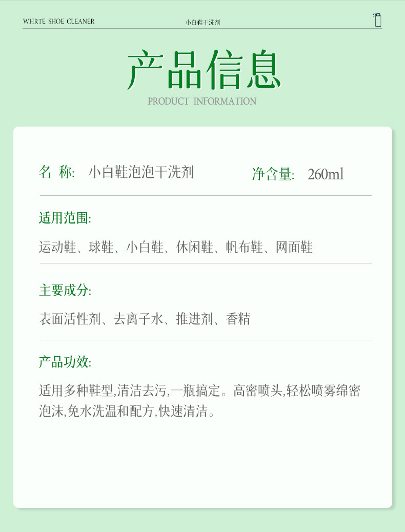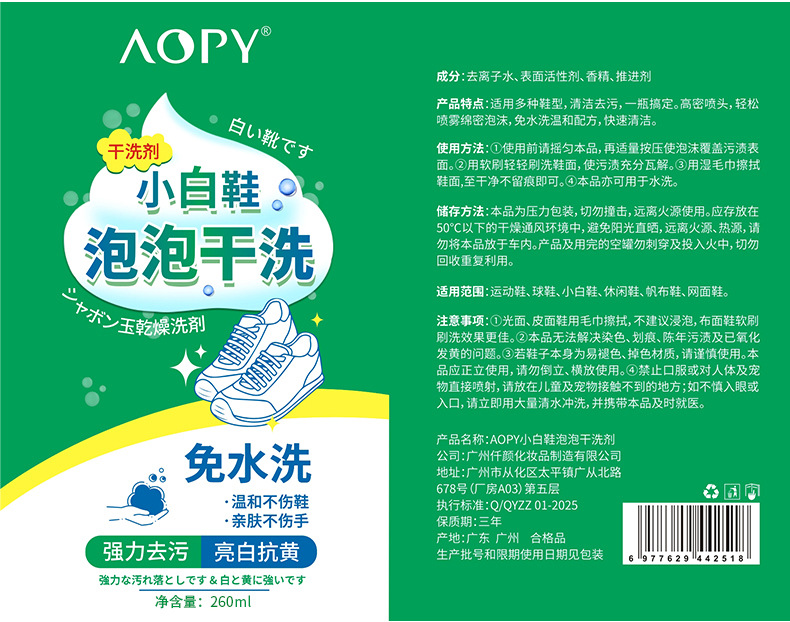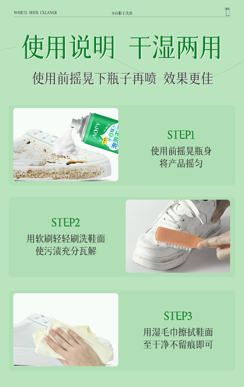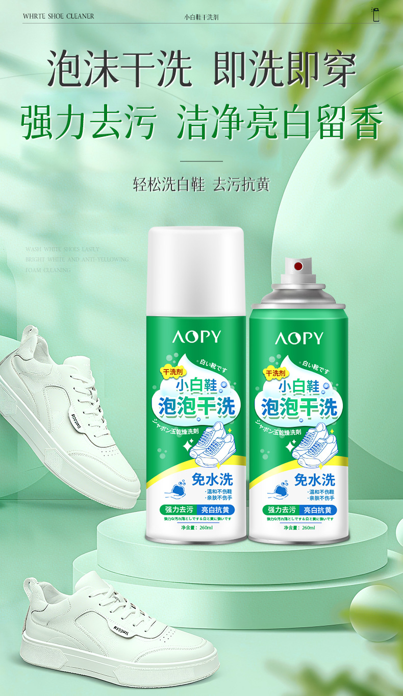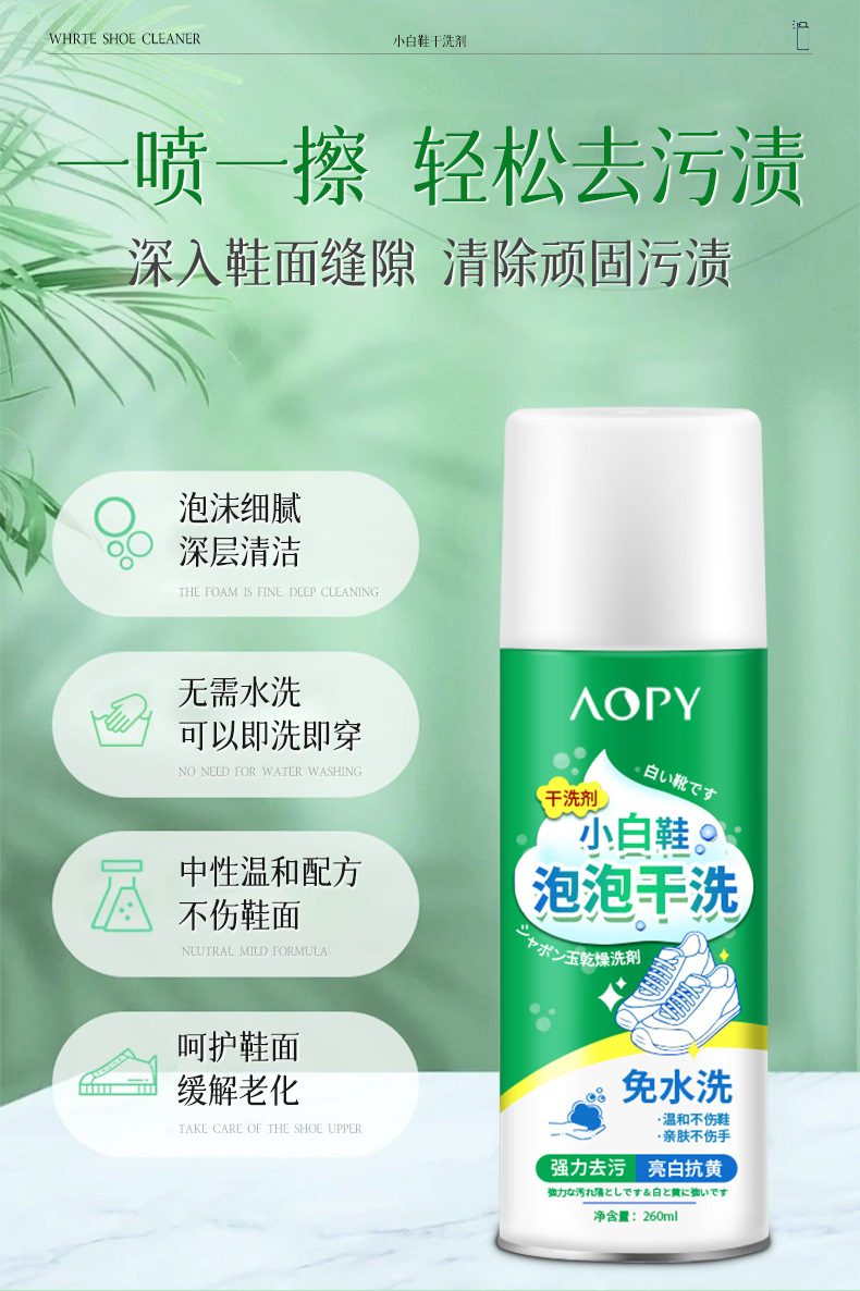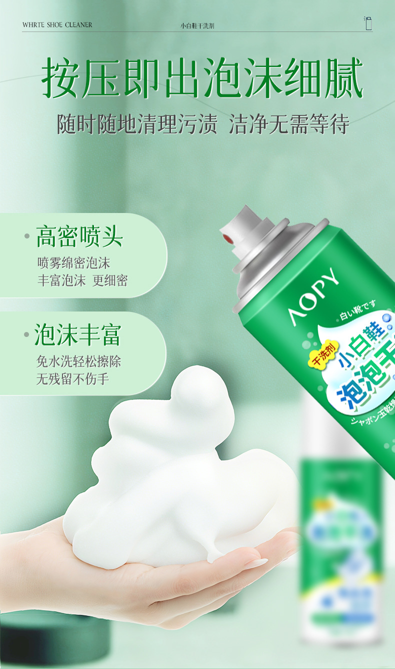 AOPY 흰색 신발 버블 드라이 클리닝 에이전트 다기능 가정용 무수 오염 제거 게으른 흰색 신발 폼 클리너
