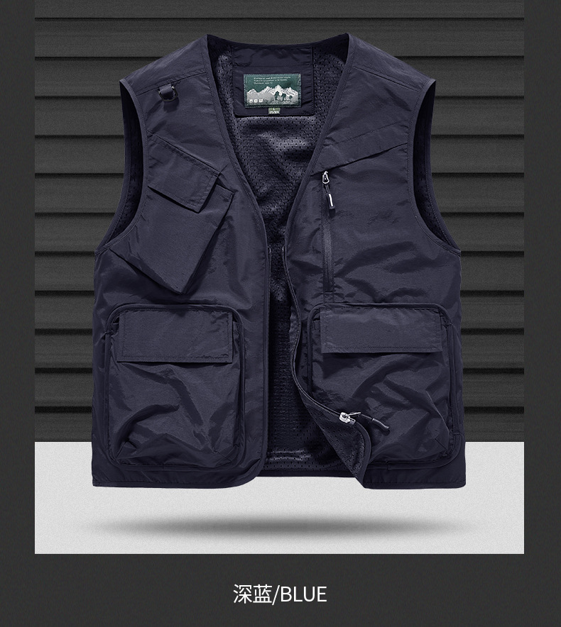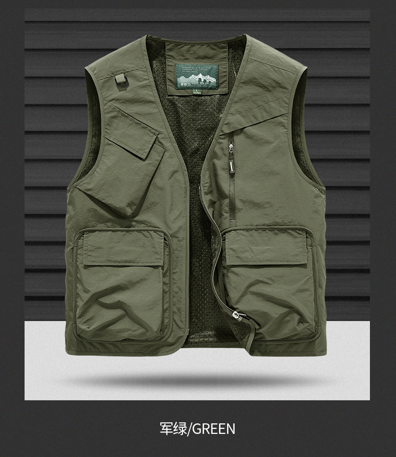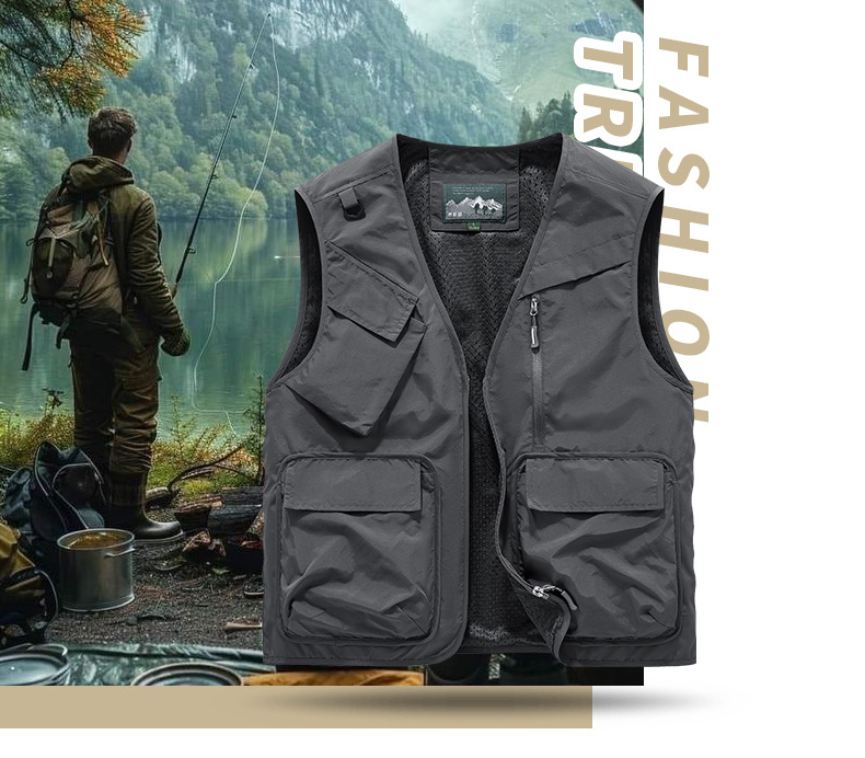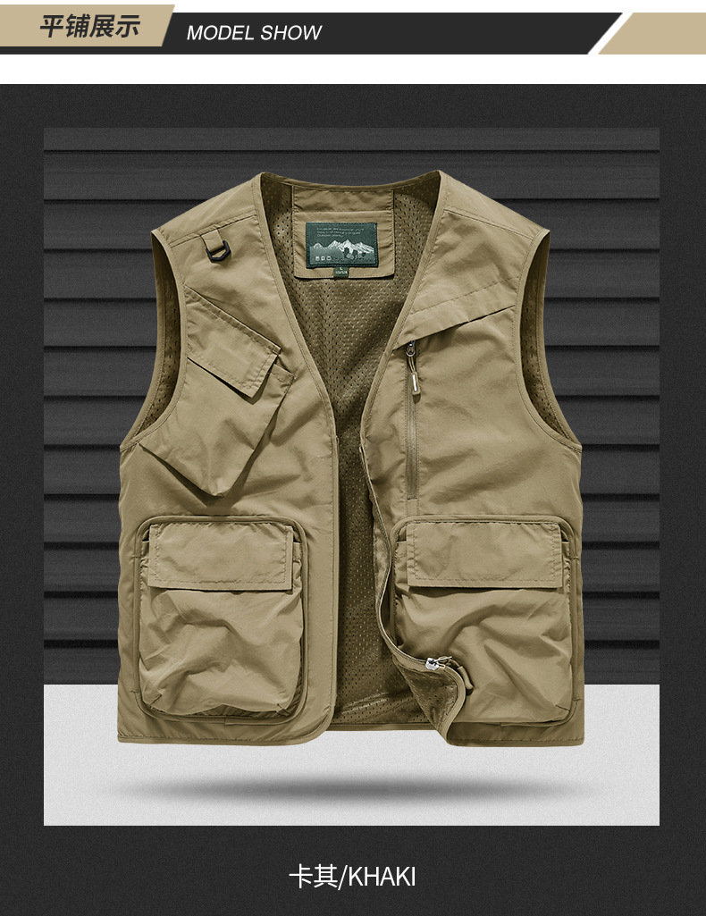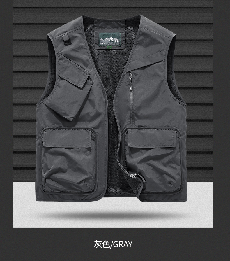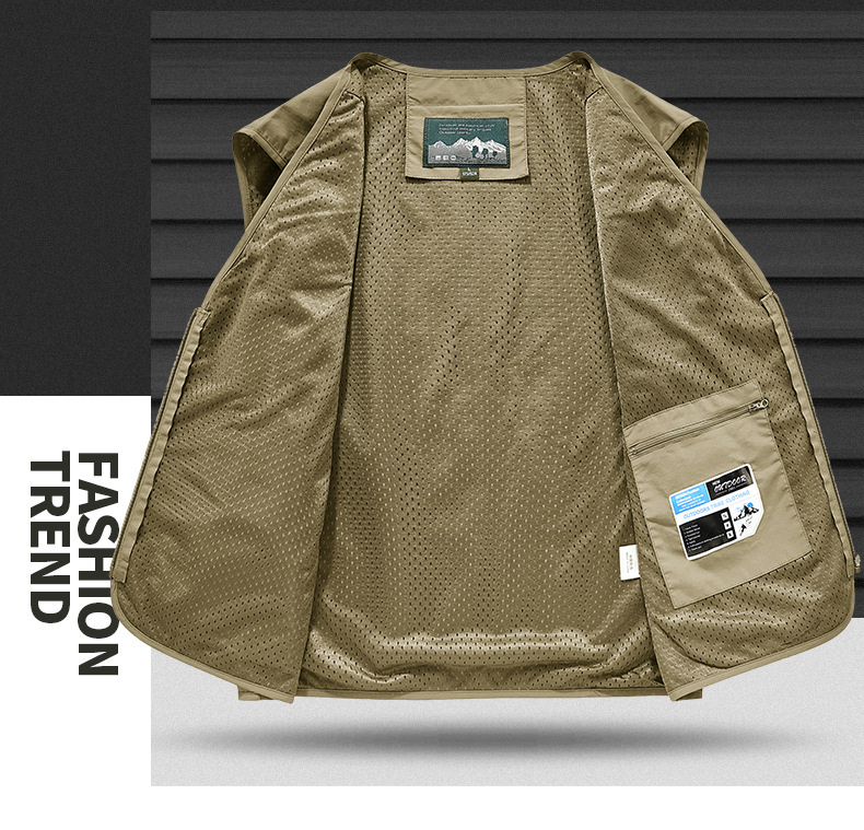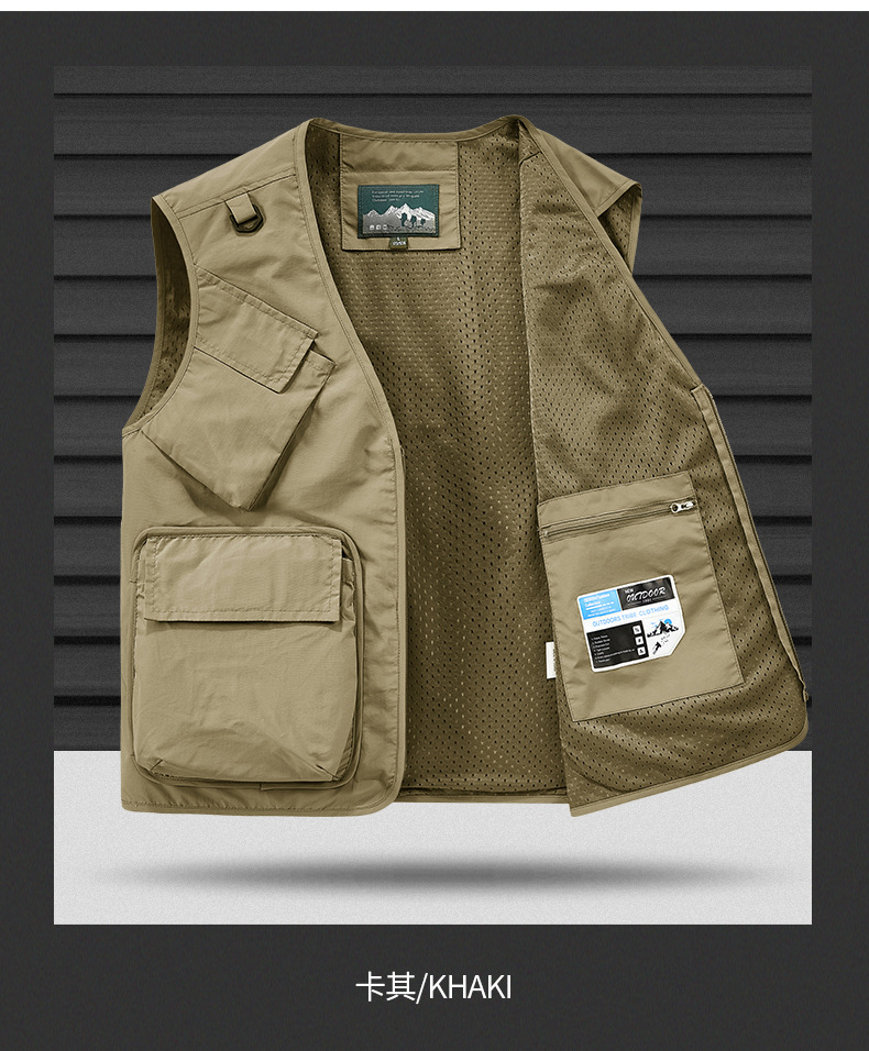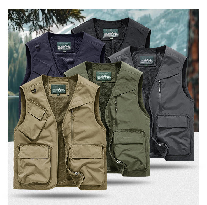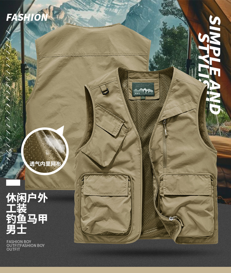 25 새로운 여름과 가을 남성 멀티 포켓 조끼 스포츠 및 레저 조끼 야외 낚시 탑 양복 조끼