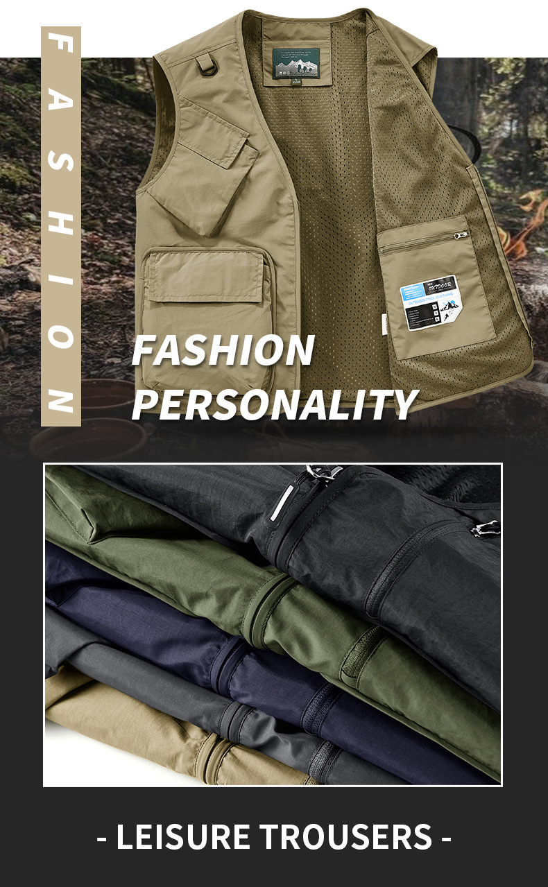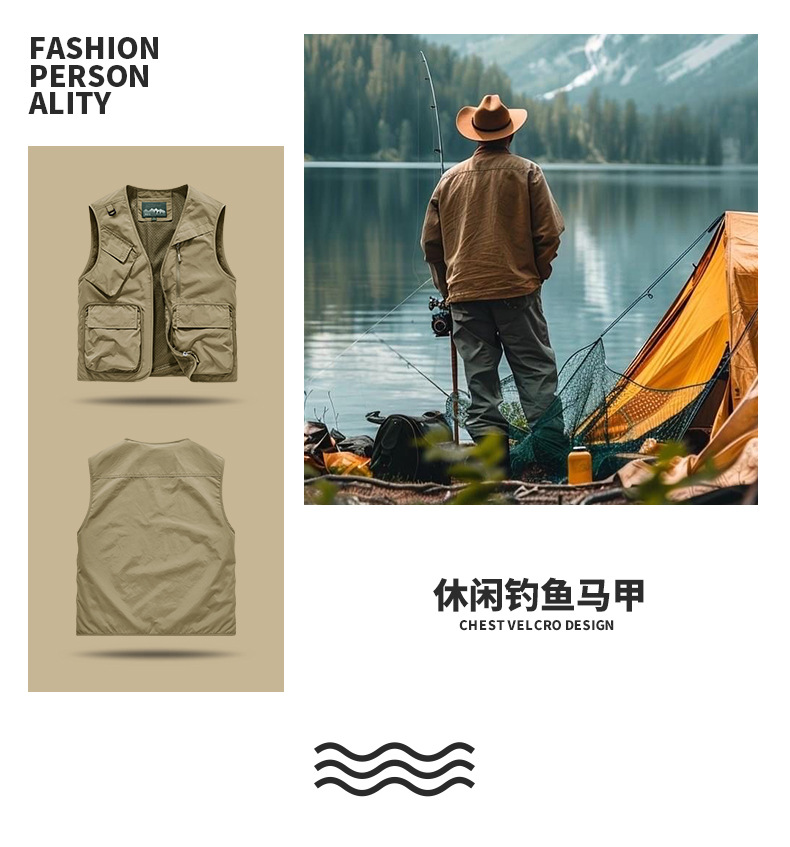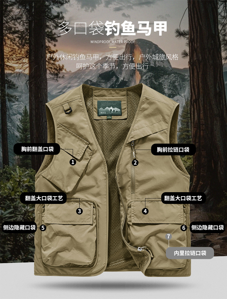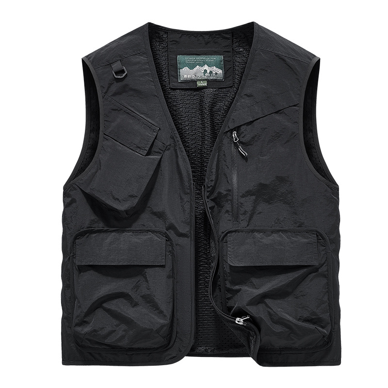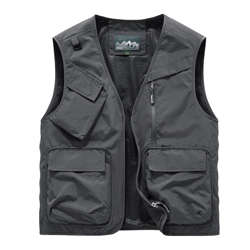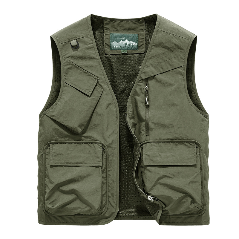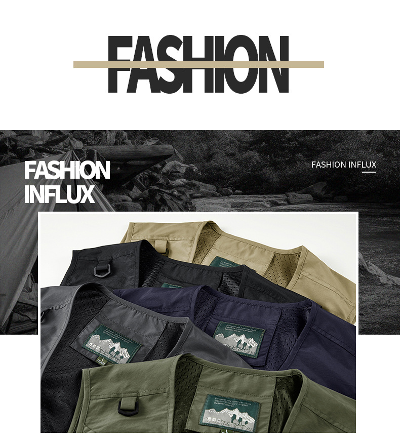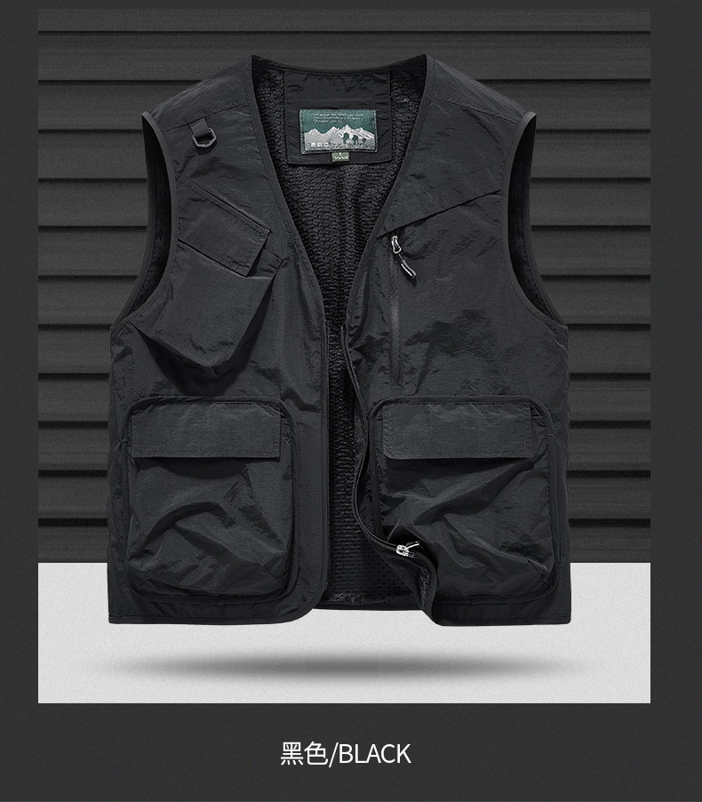 25 새로운 여름과 가을 남성 멀티 포켓 조끼 스포츠 및 레저 조끼 야외 낚시 탑 양복 조끼