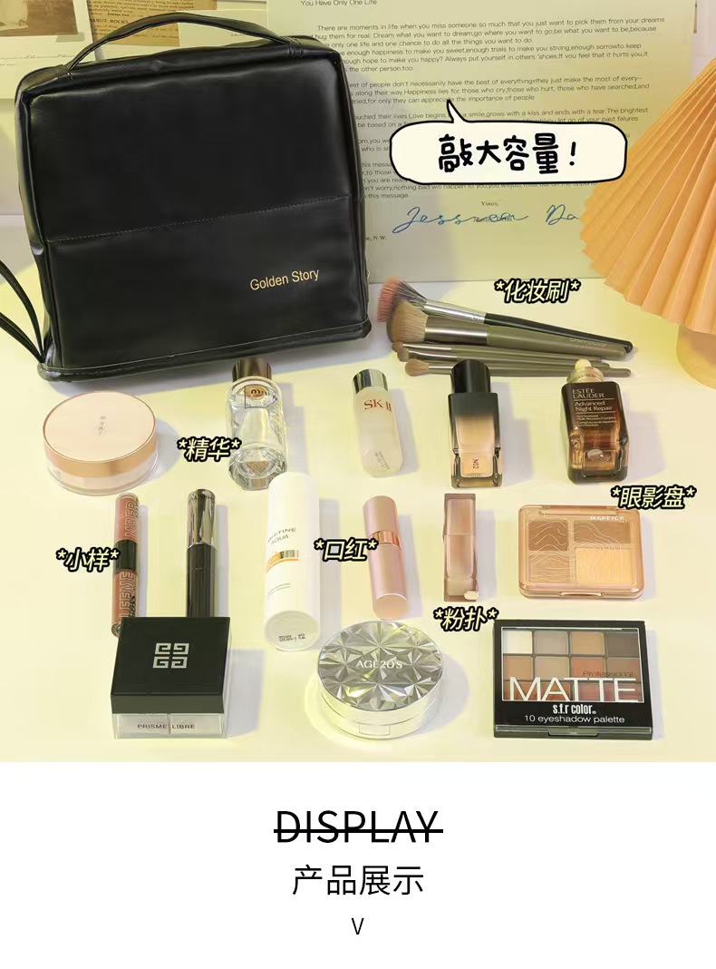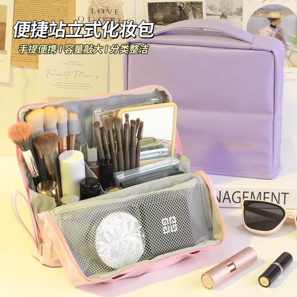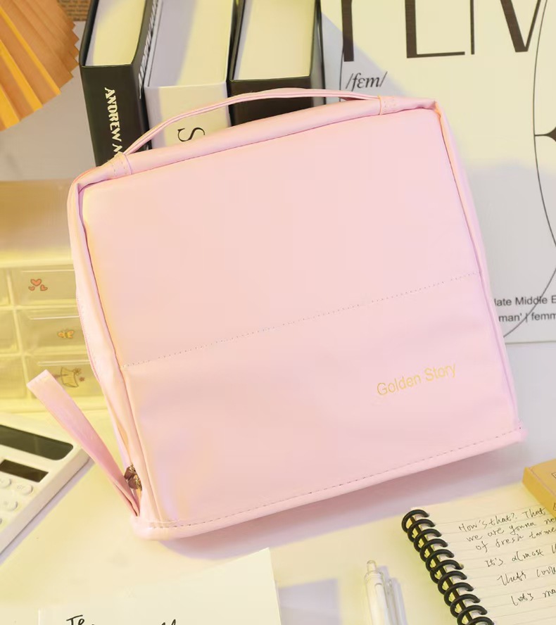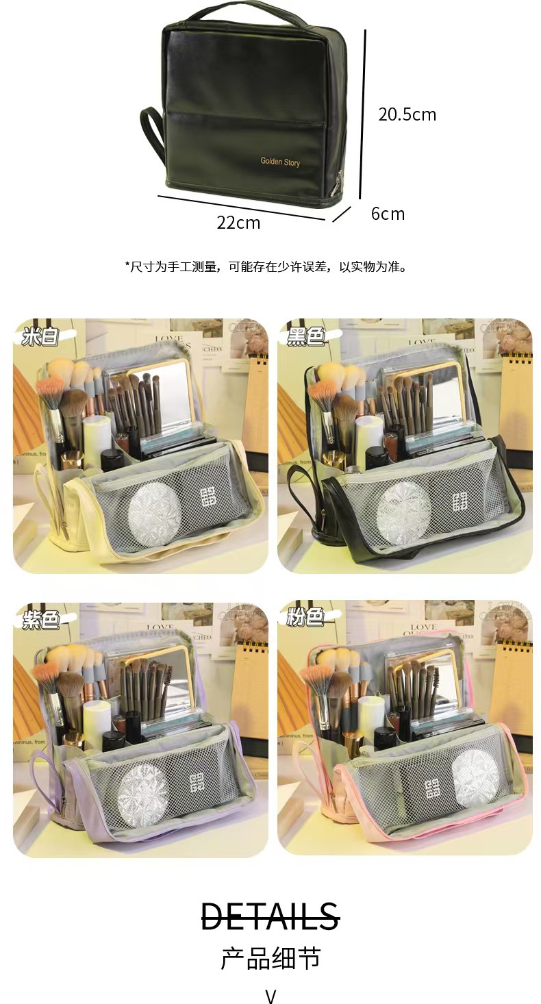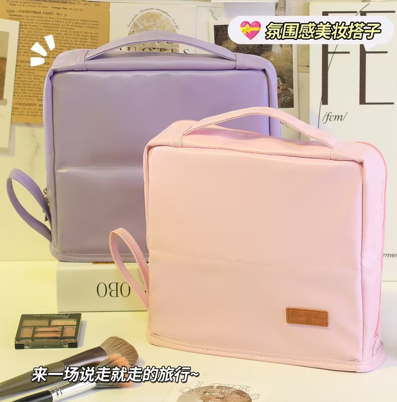 대용량 화장품 가방 PU 가죽 세로형 접이식 화장품 수납 가방 휴대용 여행용 세면도구 가방 세로형 수납스토어 가기