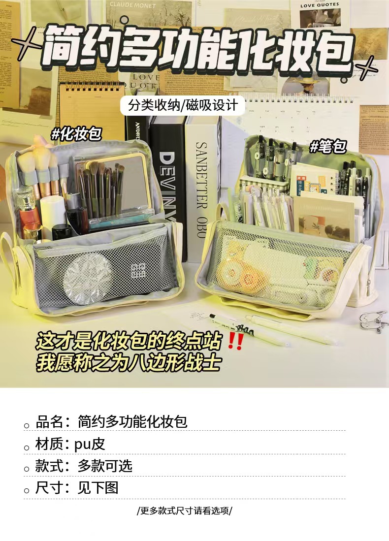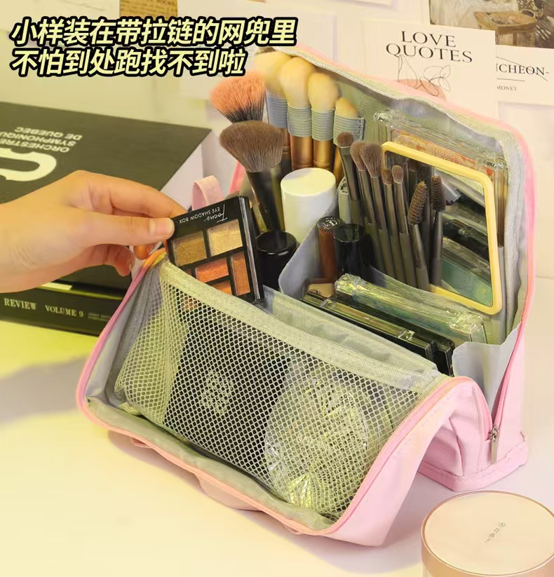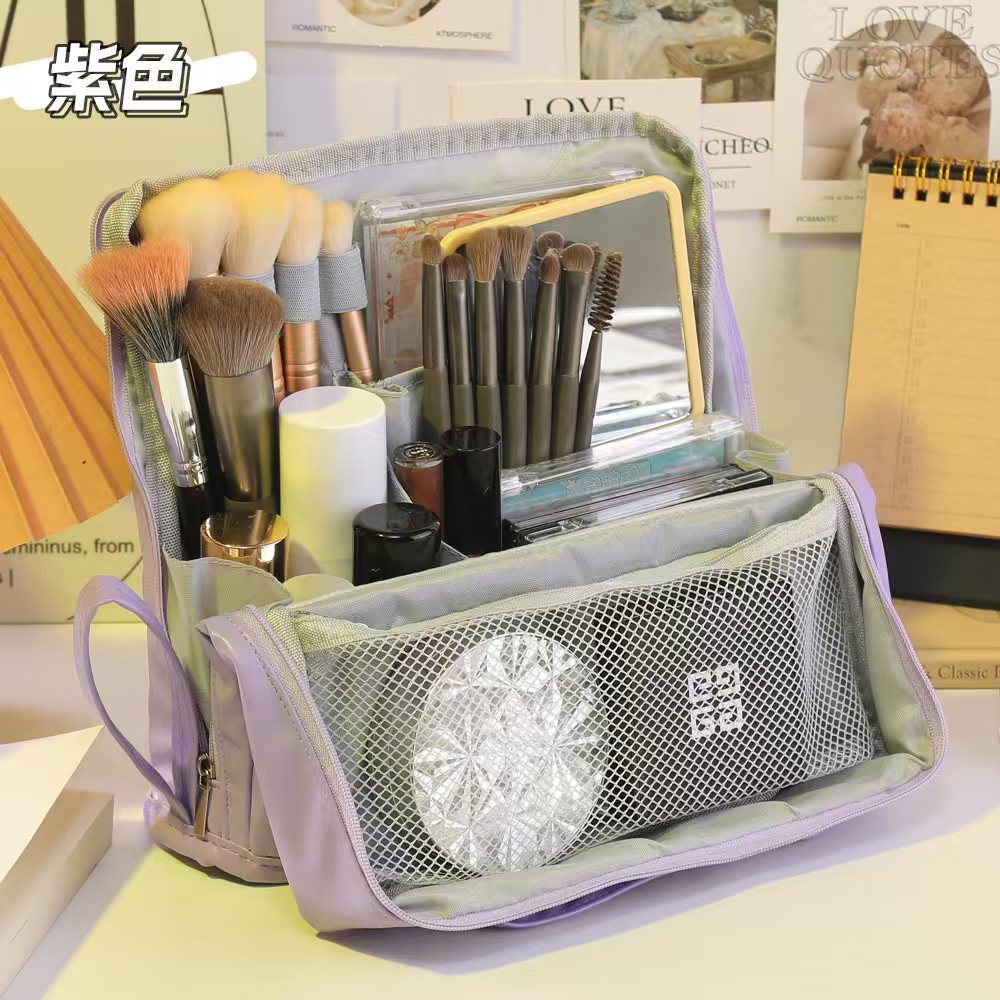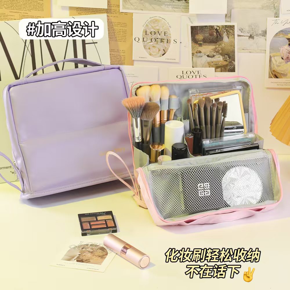 대용량 화장품 가방 PU 가죽 세로형 접이식 화장품 수납 가방 휴대용 여행용 세면도구 가방 세로형 수납스토어 가기