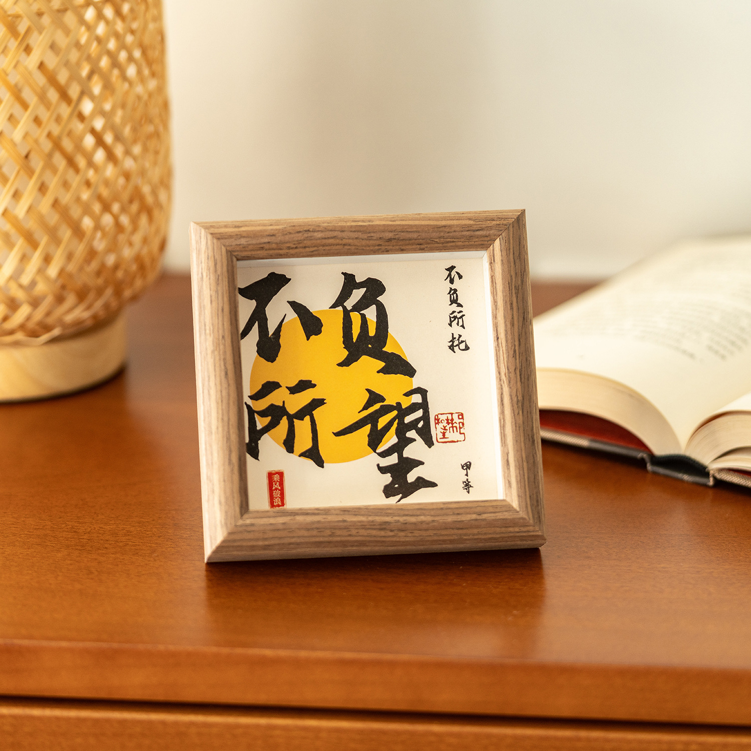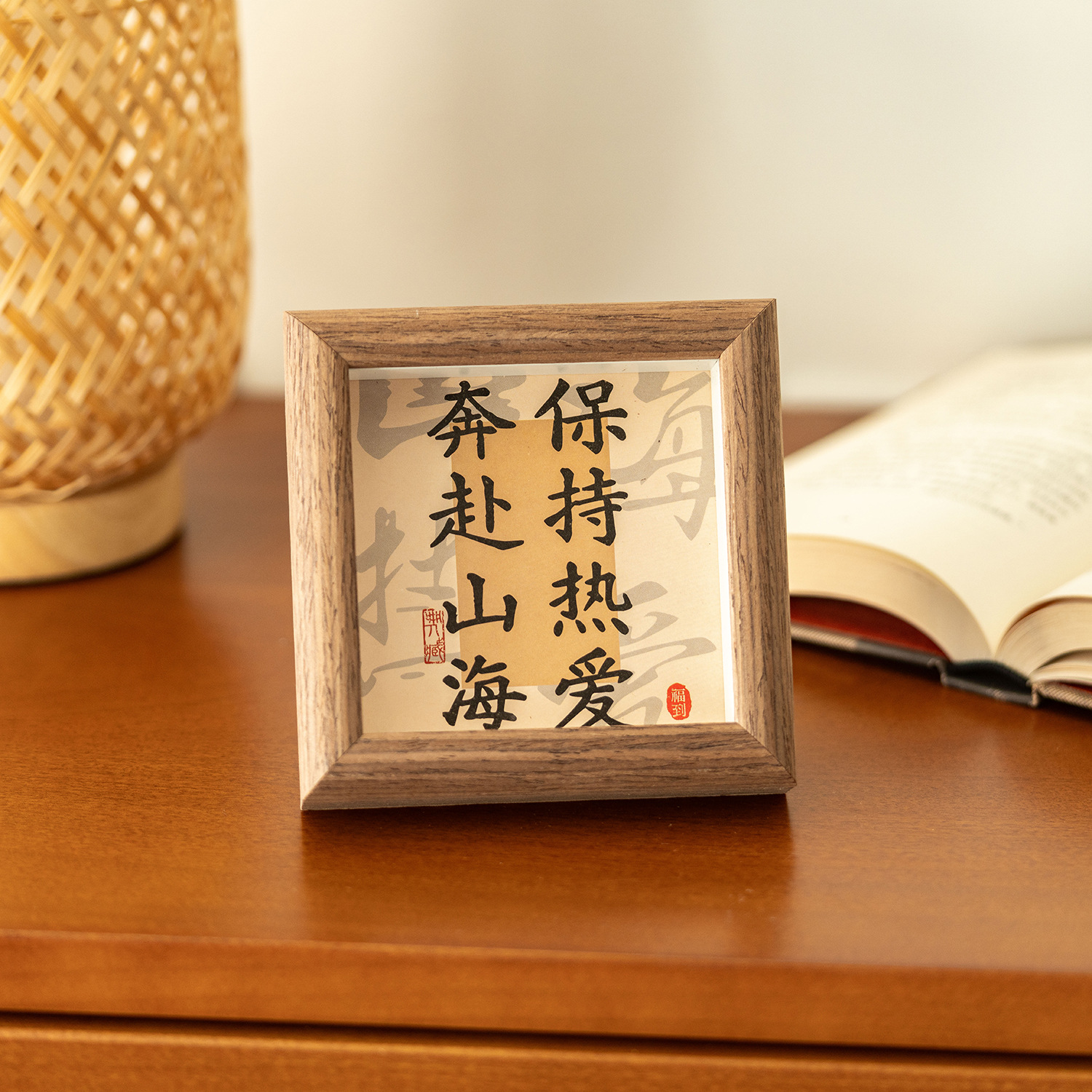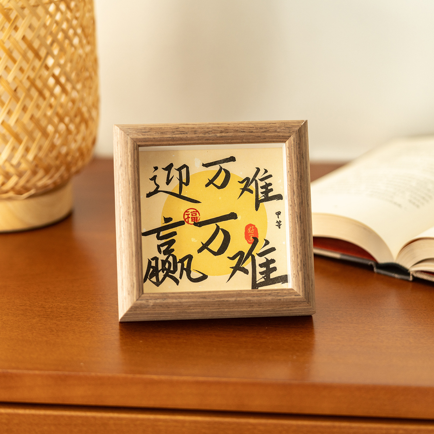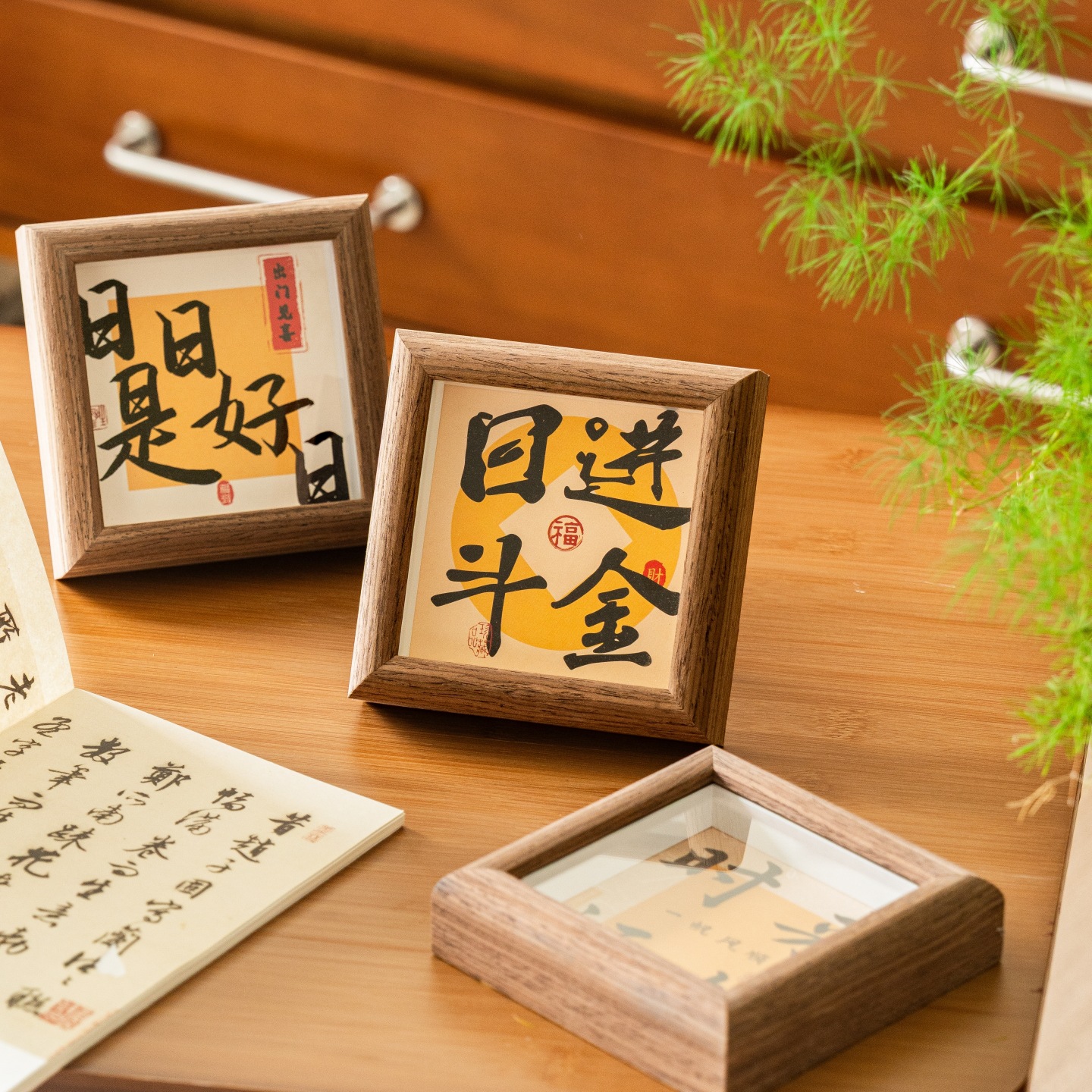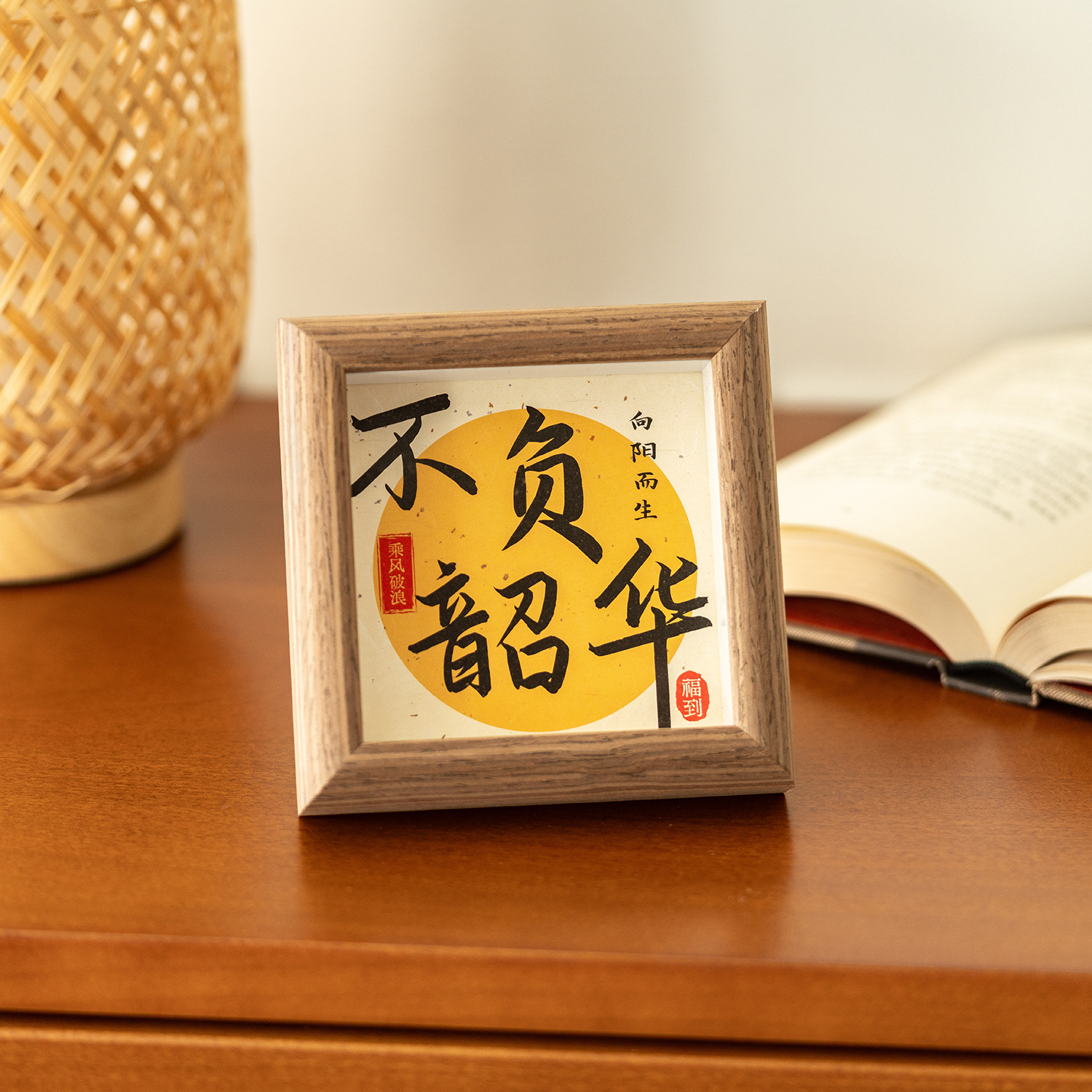 3차원 서예 미니 사진 프레임 중공 나무 장식품 사무실 데스크탑 장식 영감 텍스트 테이블 프레임스토어 가기