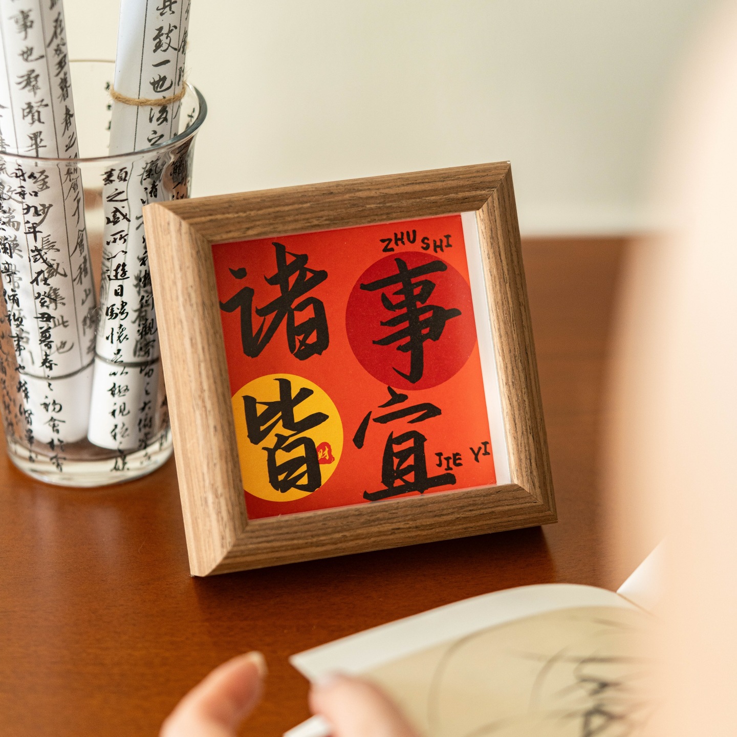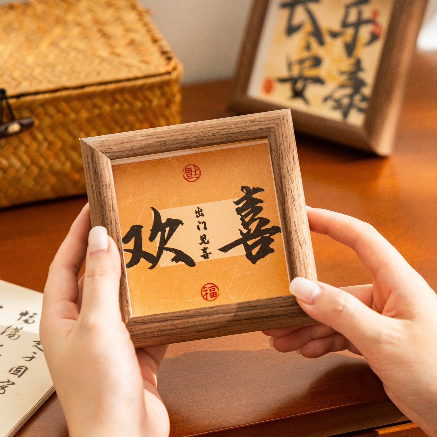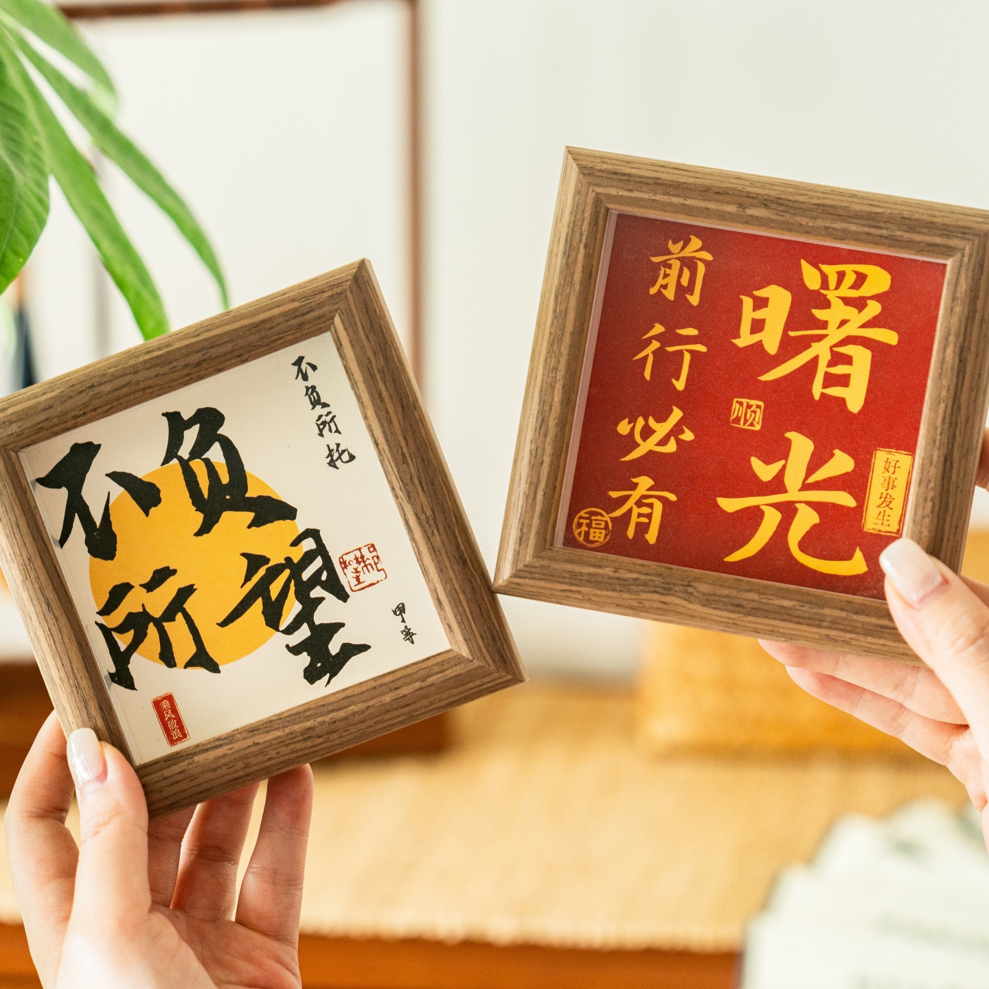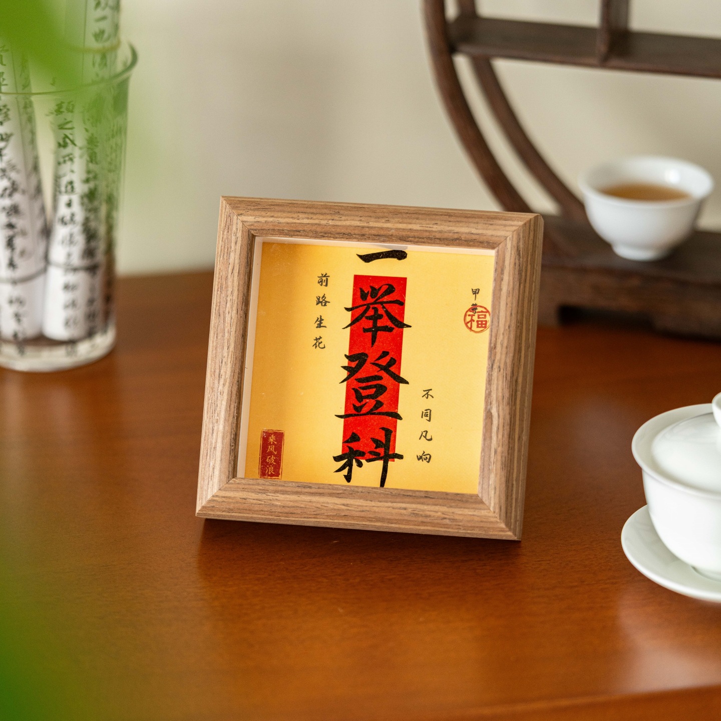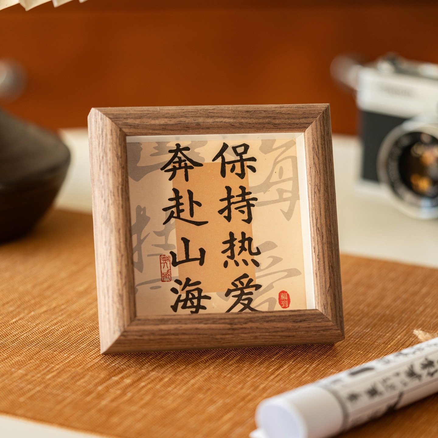 3차원 서예 미니 사진 프레임 중공 나무 장식품 사무실 데스크탑 장식 영감 텍스트 테이블 프레임스토어 가기
