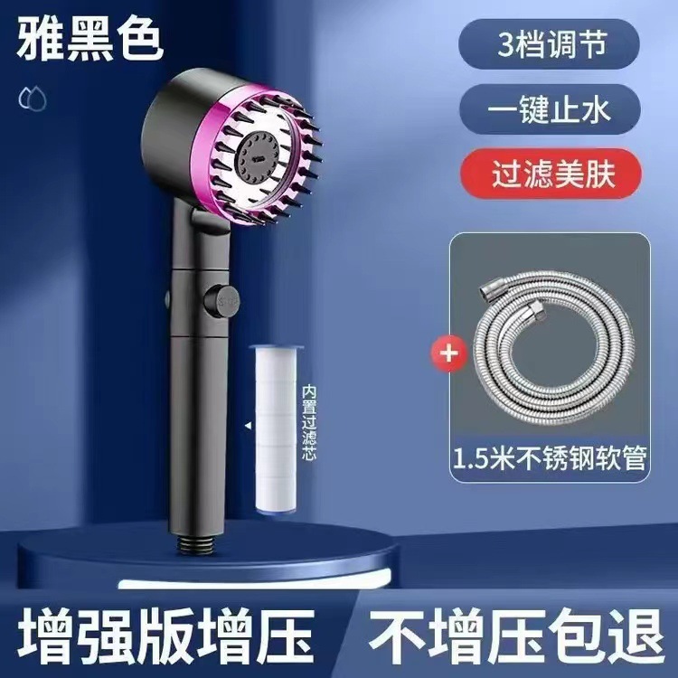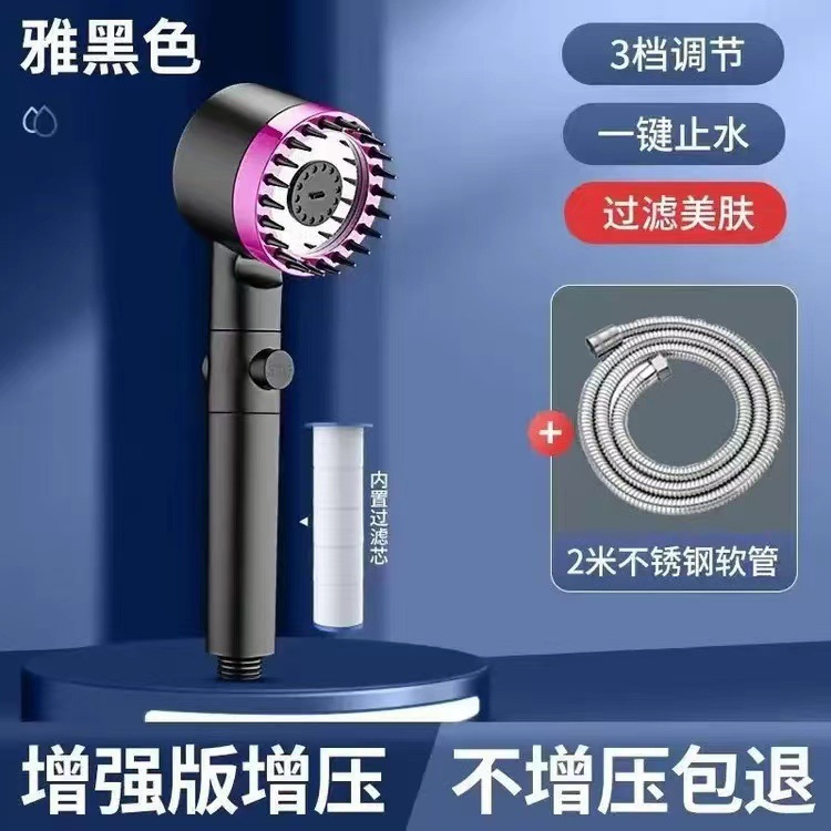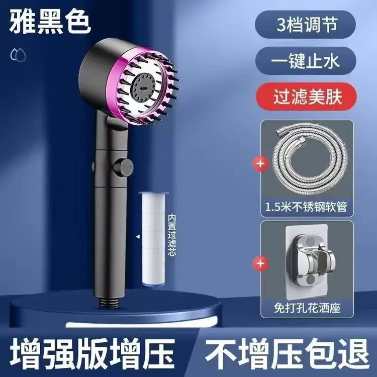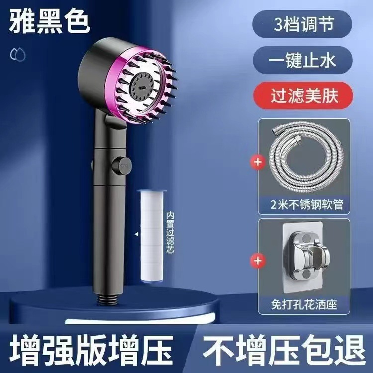 • [피부에 해롭지 않은 슈퍼차지] 블랙 & 퍼플 마사지 필터 샤워헤드