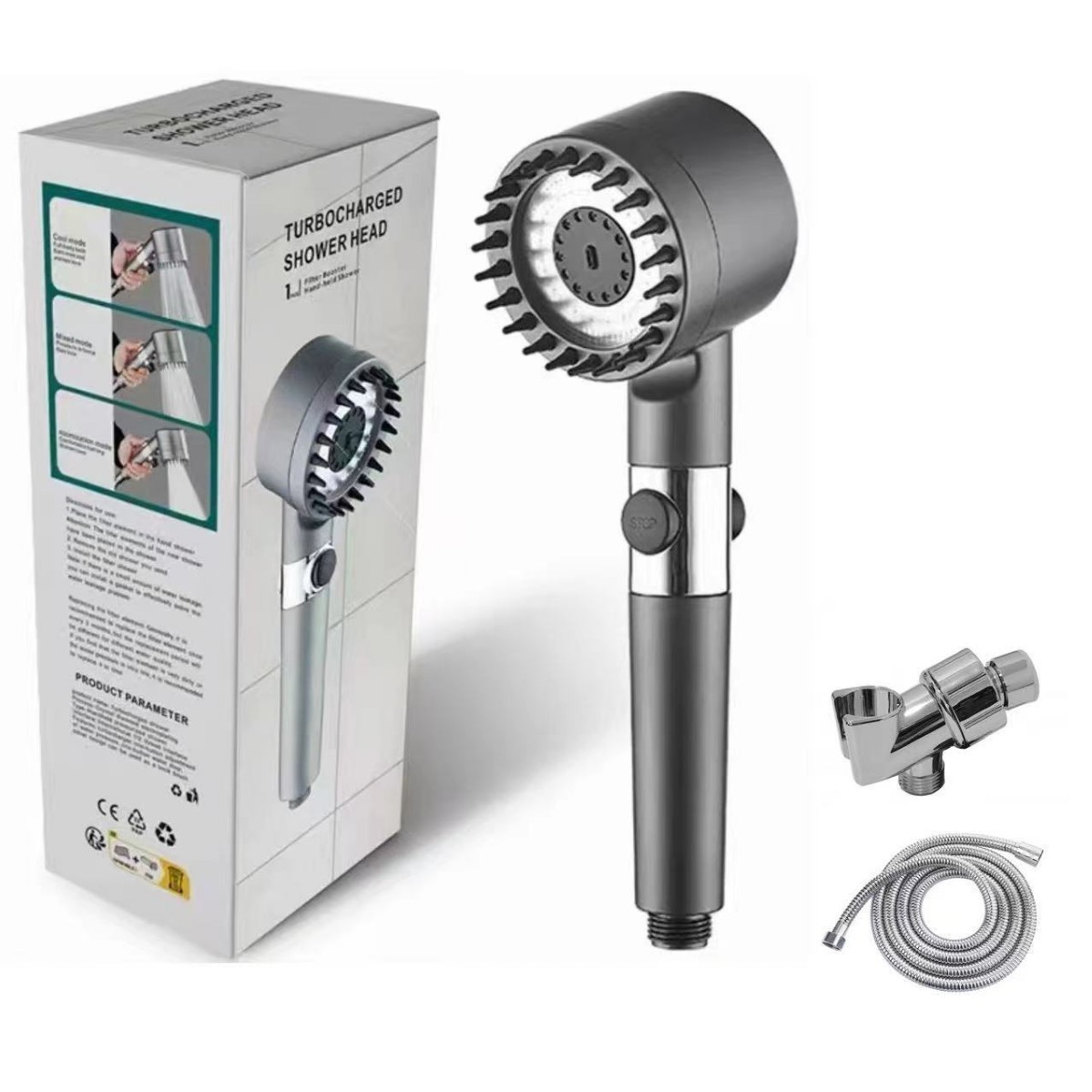 • [과압으로 피부에 해롭지 않음] 건그레이 샤워헤드 + 1.5m암호호스 스테인레스 파이프