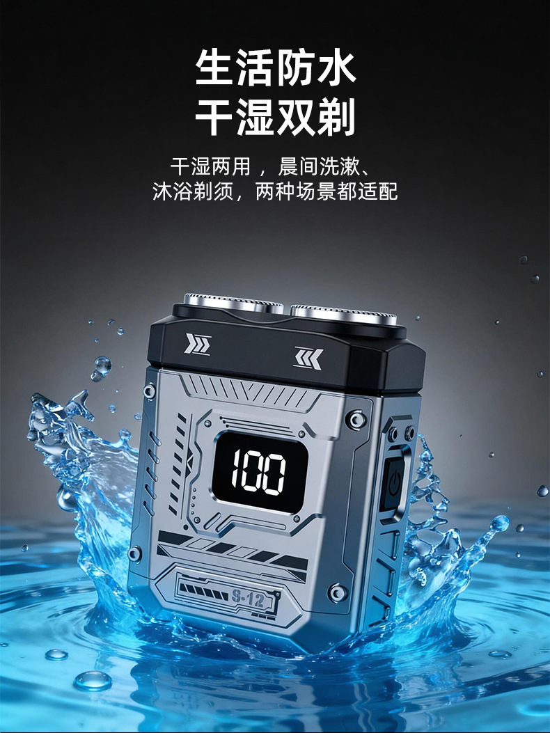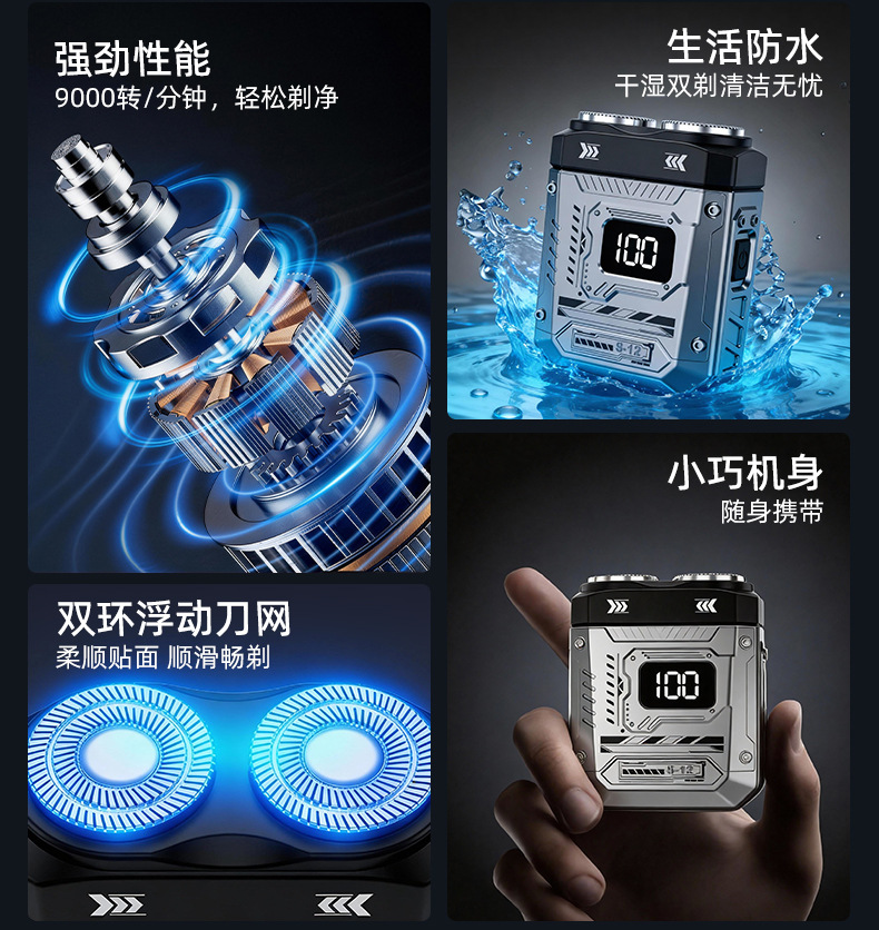틱톡 펑크 메카 전기면도기 전신 물세척 가능 남성용 초깨끗이 휴대용 면도기 미니 소형 강력 면도기