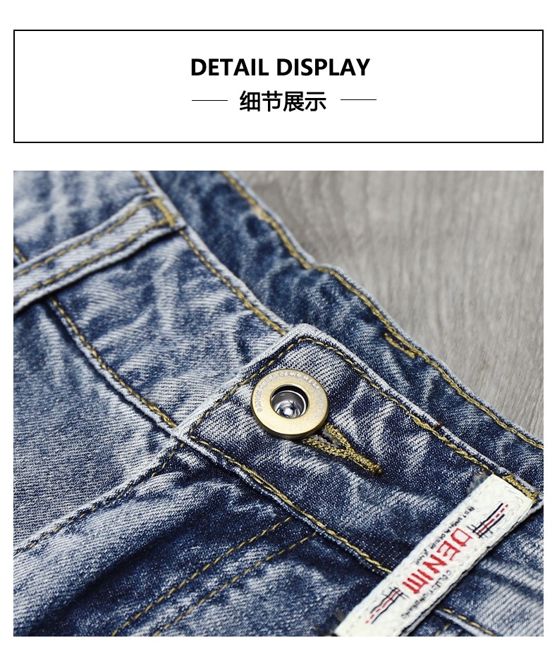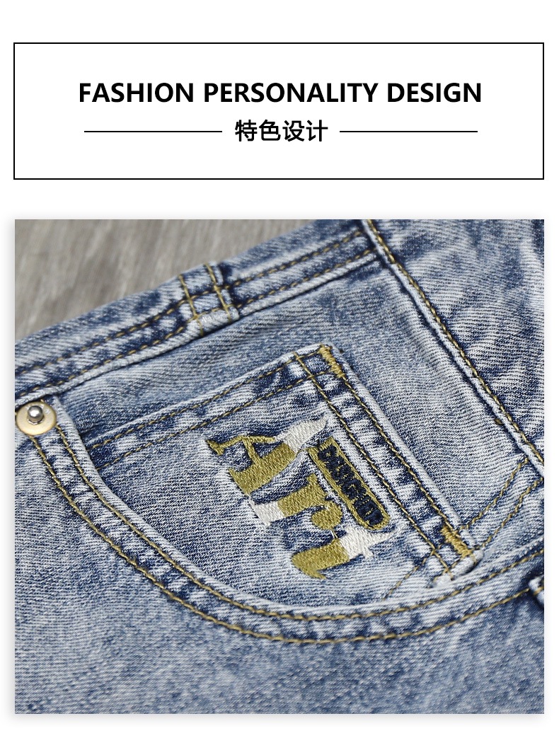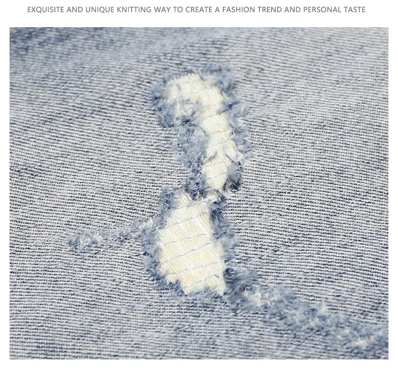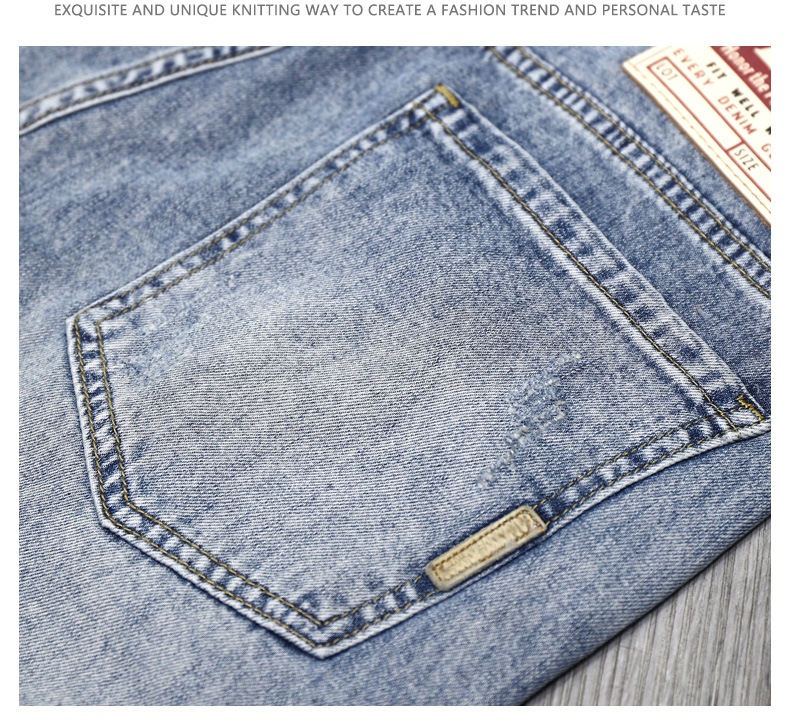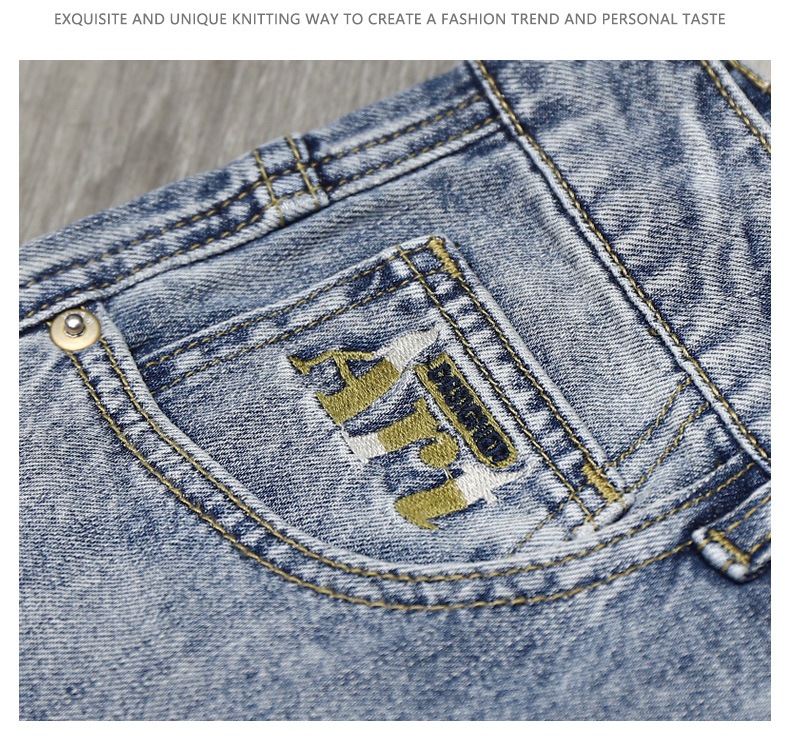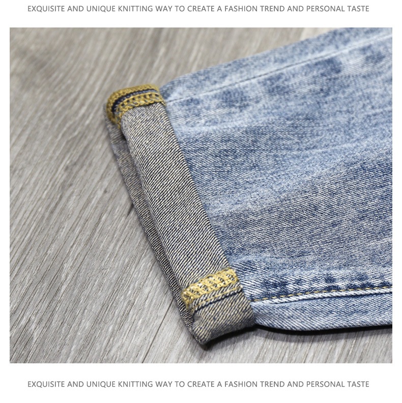 하이엔드 라이트 블루 9부 팬츠 남성 청바지 트렌디 브랜드 인즈 찢어진 패치 핸섬 청소년 9부 팬츠 여름 얇은 스타일스토어 가기