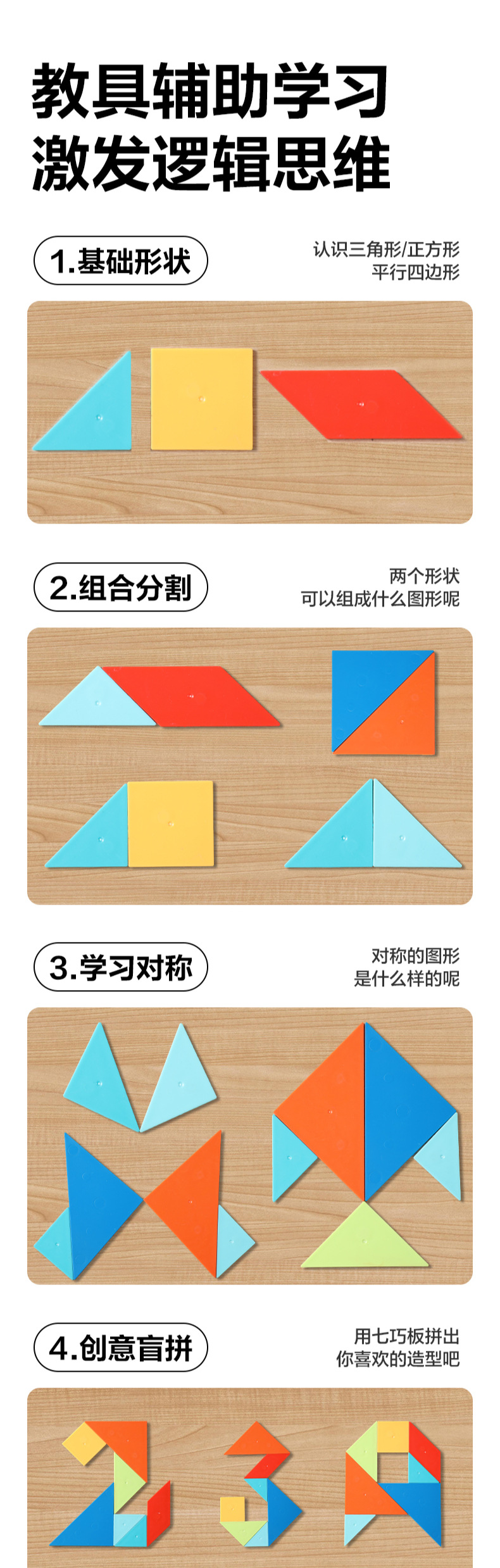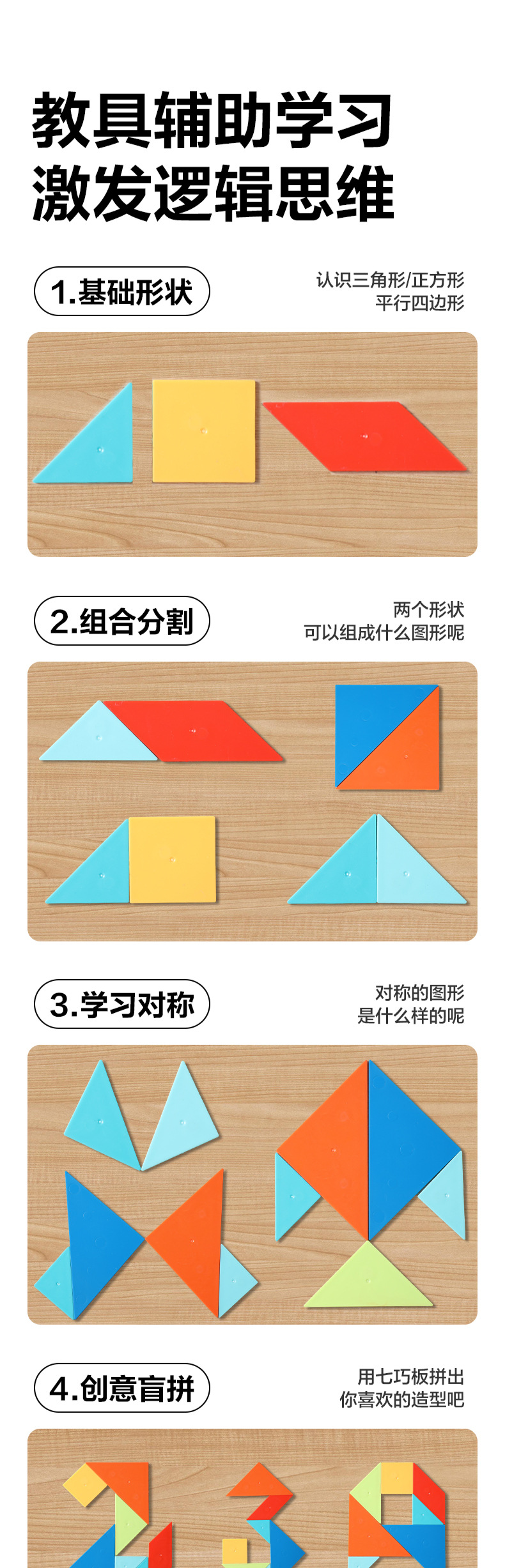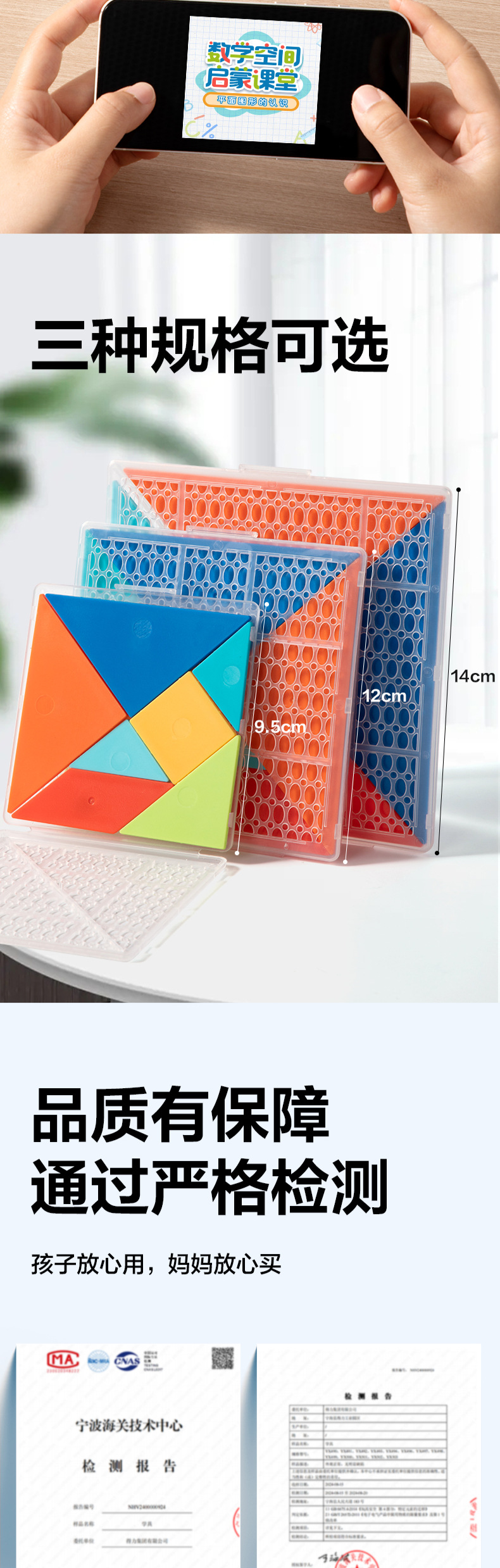 PP 보관 상자가있는 델리 tangram 1 학년 초등학생 지적 퍼즐 어린이 유치원 플라스틱 장난감스토어 가기