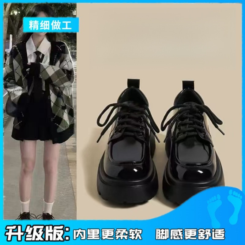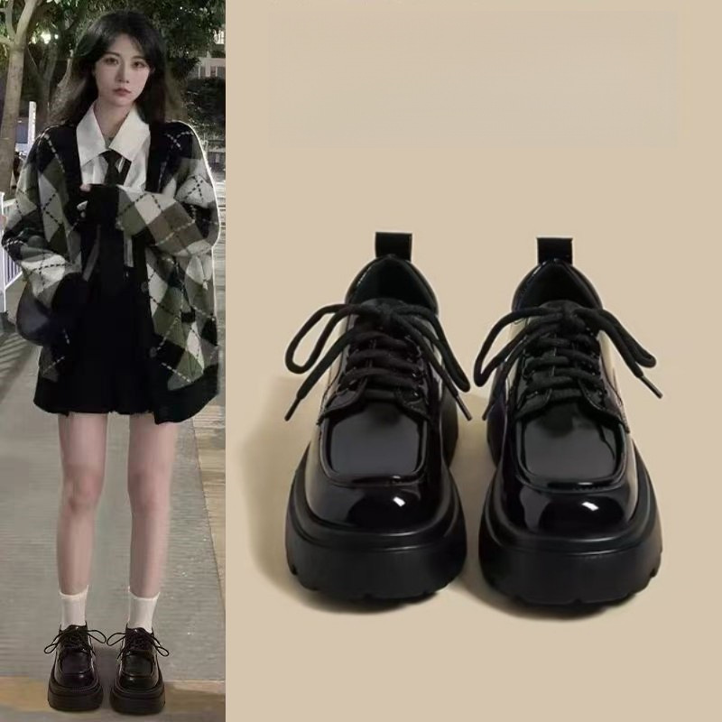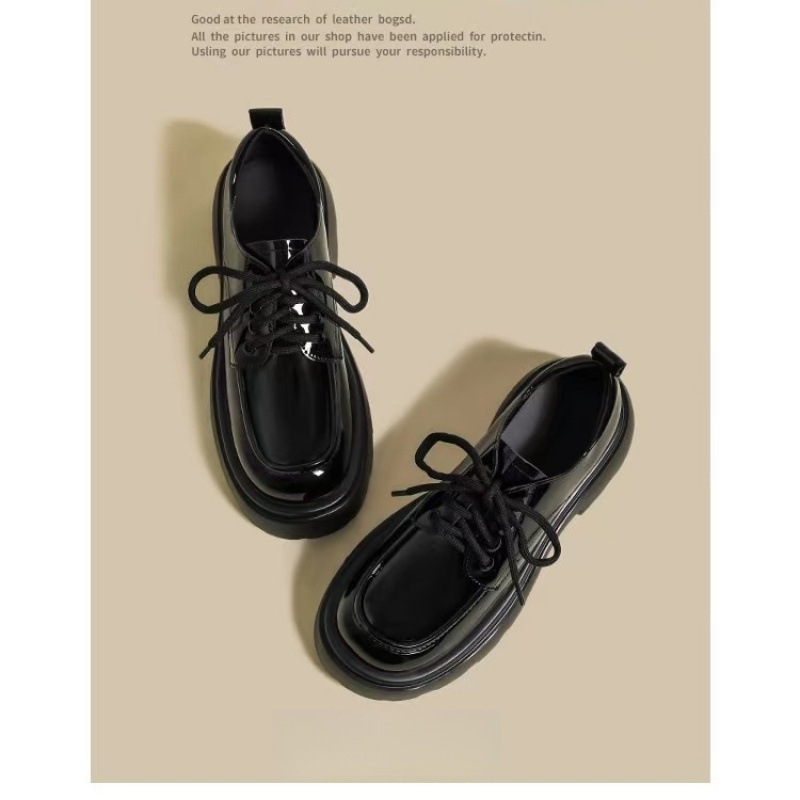 여성을위한 영국 스타일 작은 가죽 신발 2025 봄 새로운 두꺼운 밑창 끈 부드러운 밑창 플랫폼 복고풍 다목적 로퍼스토어 가기
