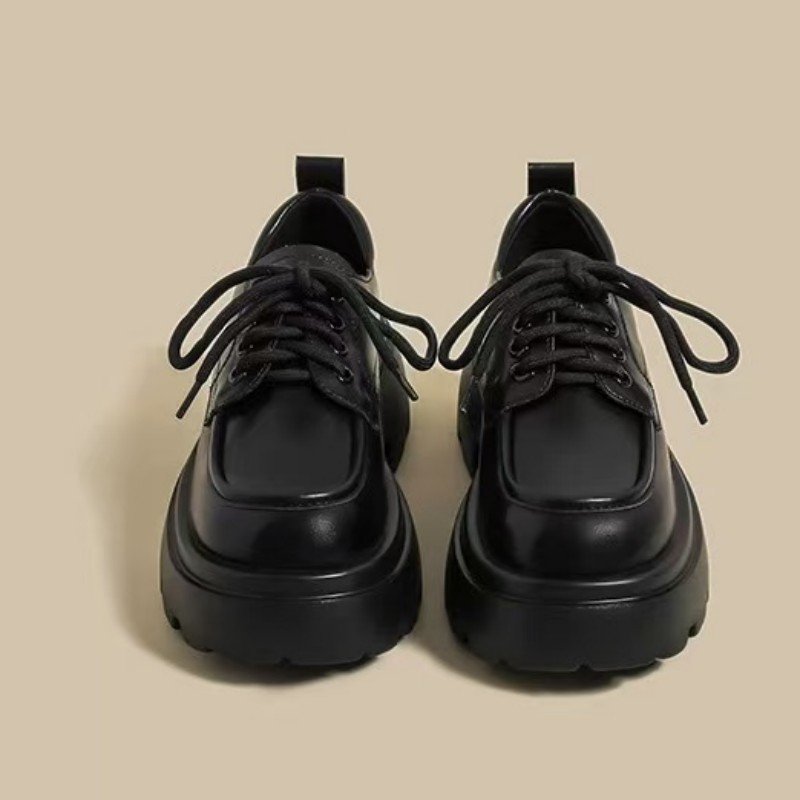 여성을위한 영국 스타일 작은 가죽 신발 2025 봄 새로운 두꺼운 밑창 끈 부드러운 밑창 플랫폼 복고풍 다목적 로퍼