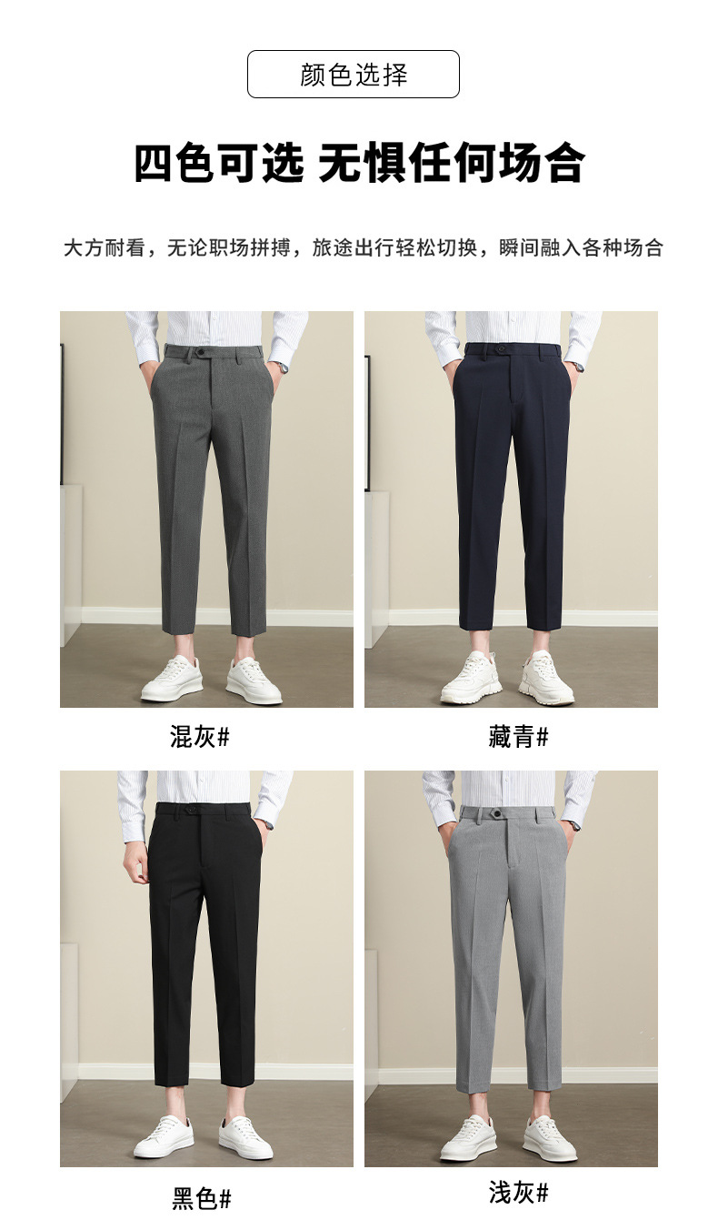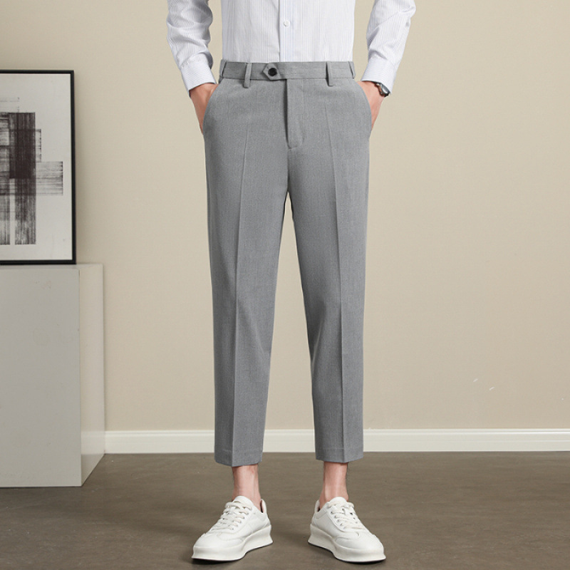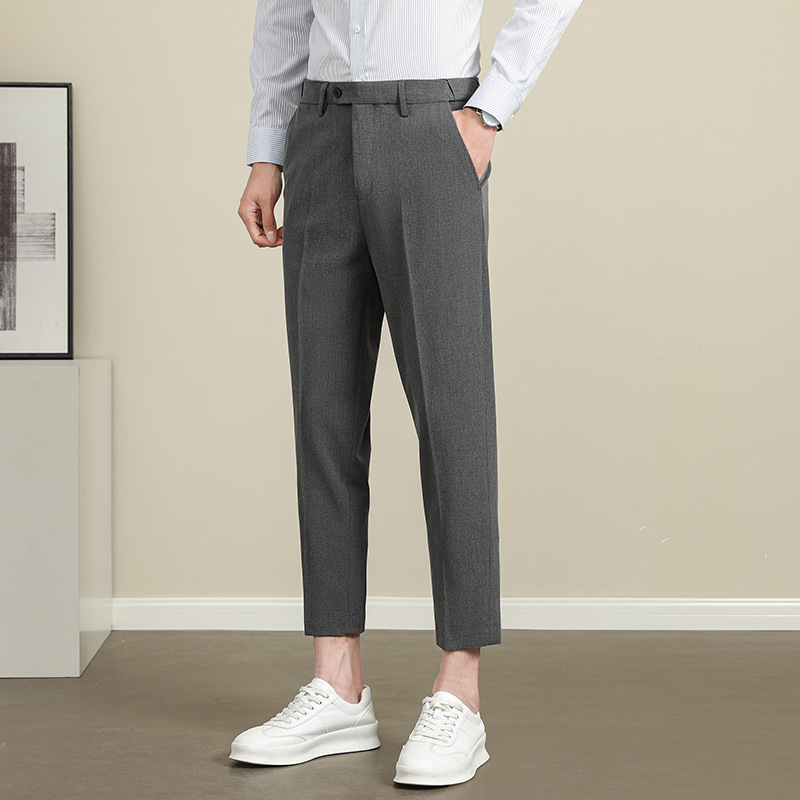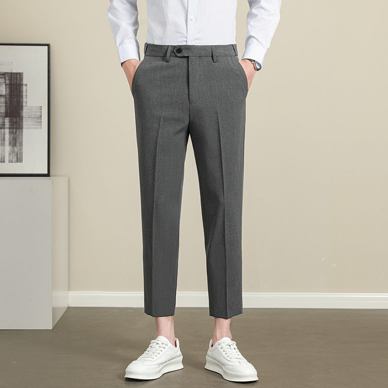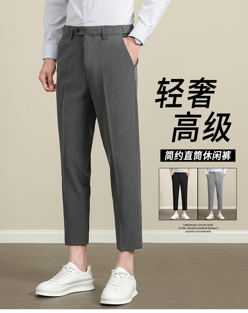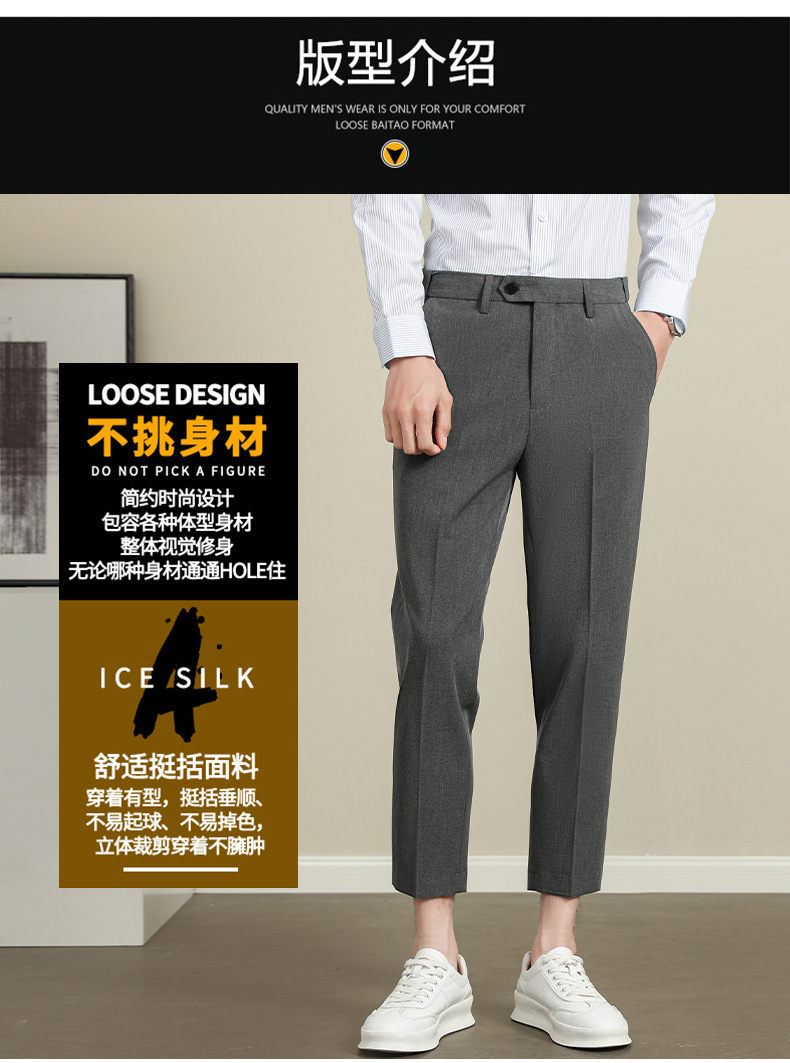 남성용 텐셀 주름 방지 바지 2025 여름 신상 하이 엔드 드레이프 스몰 스트레이트 9 점 아이스 실크 캐주얼 정장 바지