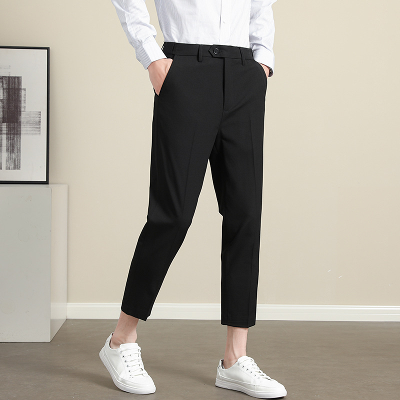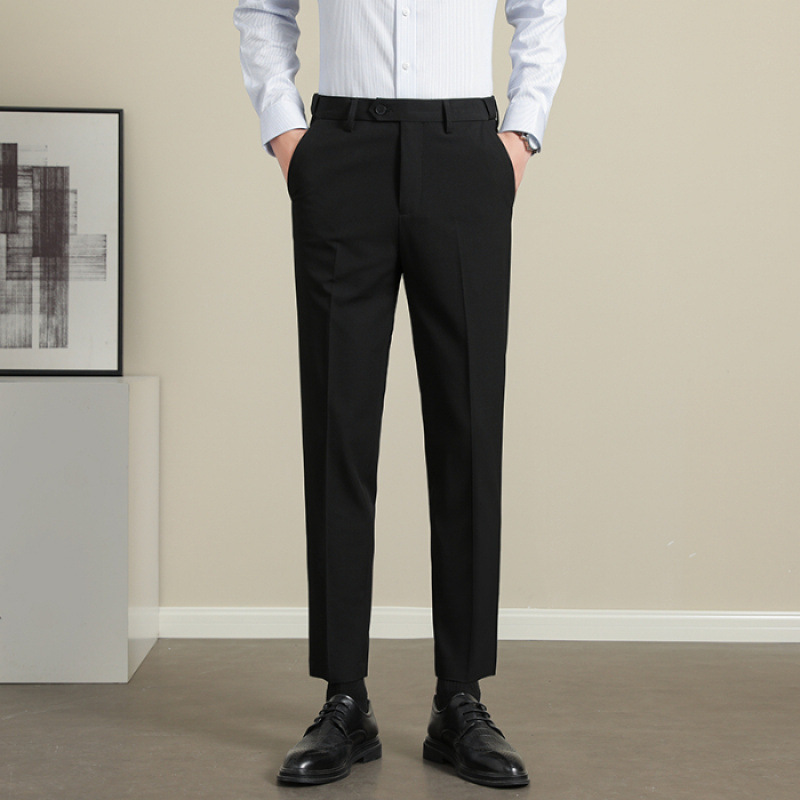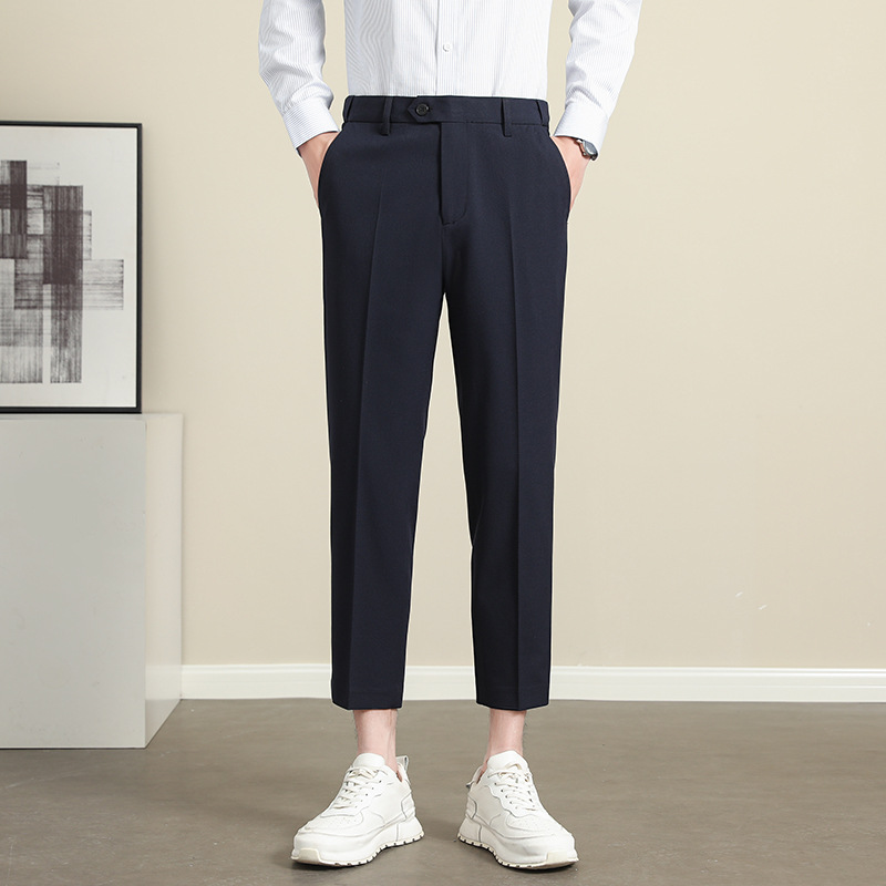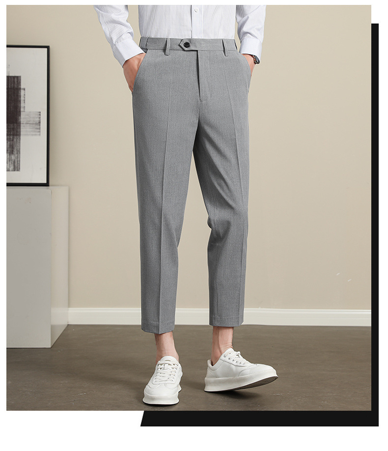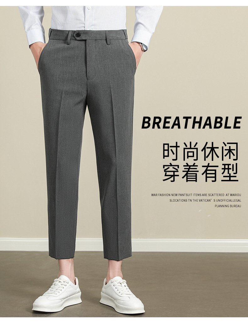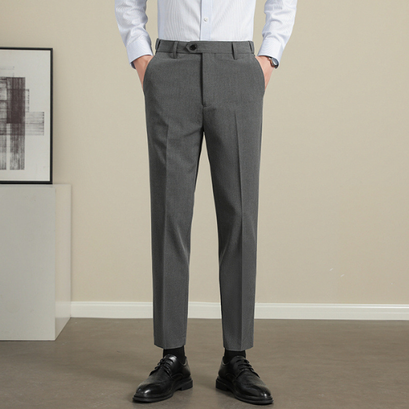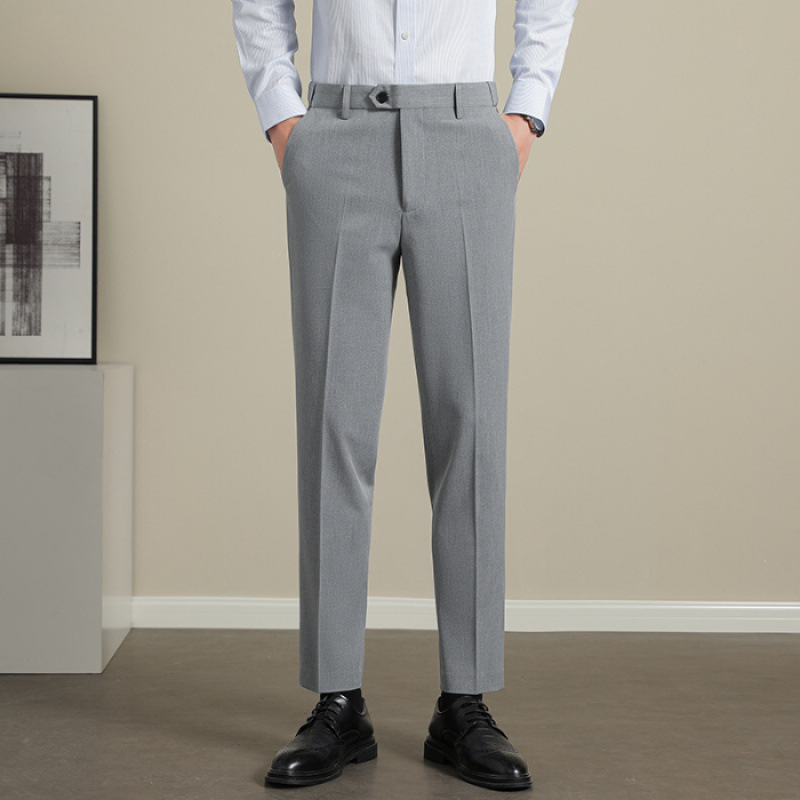 남성용 텐셀 주름 방지 바지 2025 여름 신상 하이 엔드 드레이프 스몰 스트레이트 9 점 아이스 실크 캐주얼 정장 바지