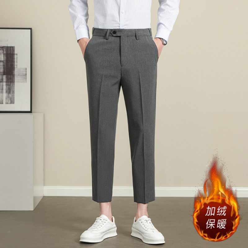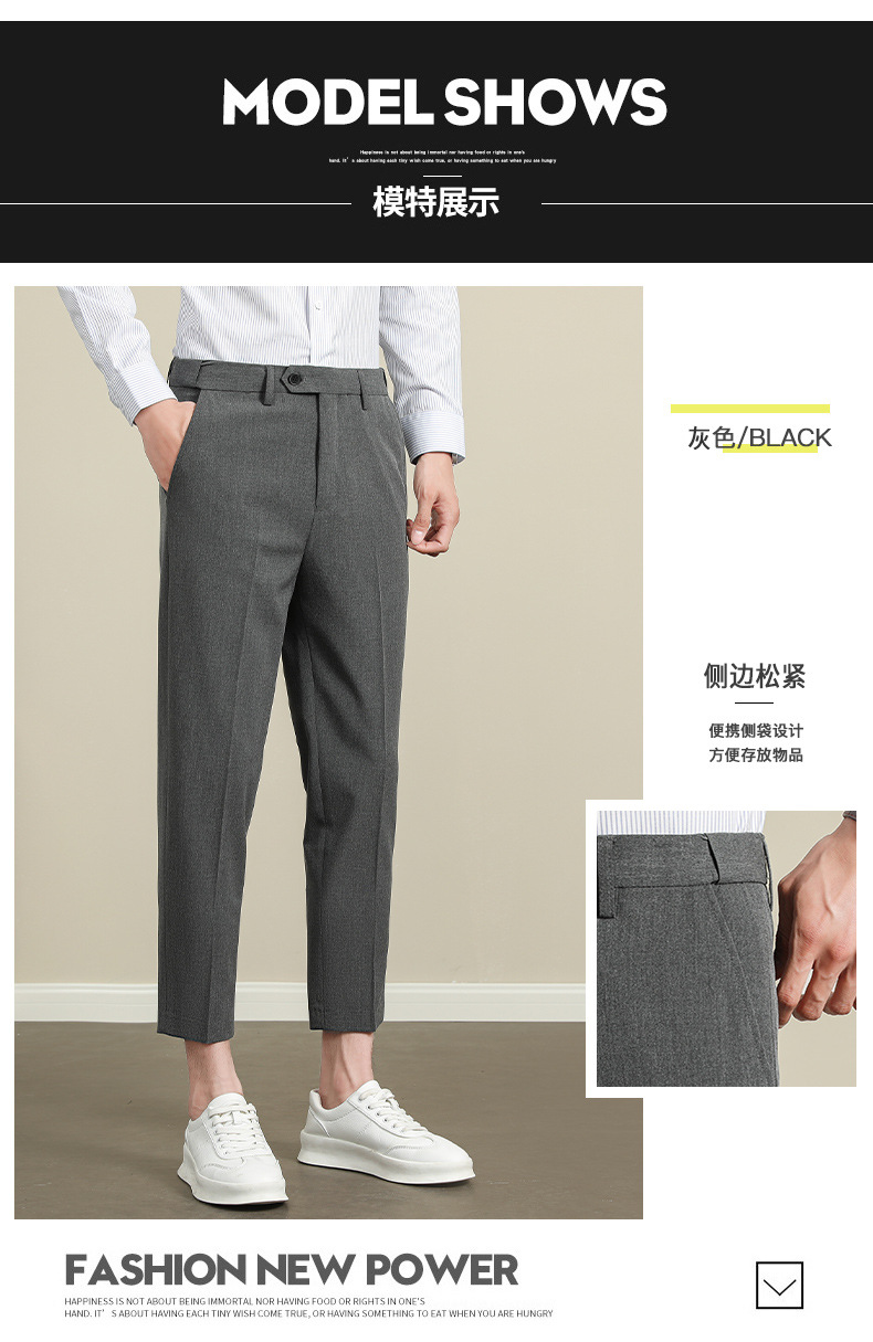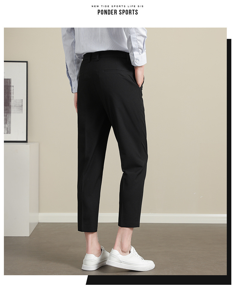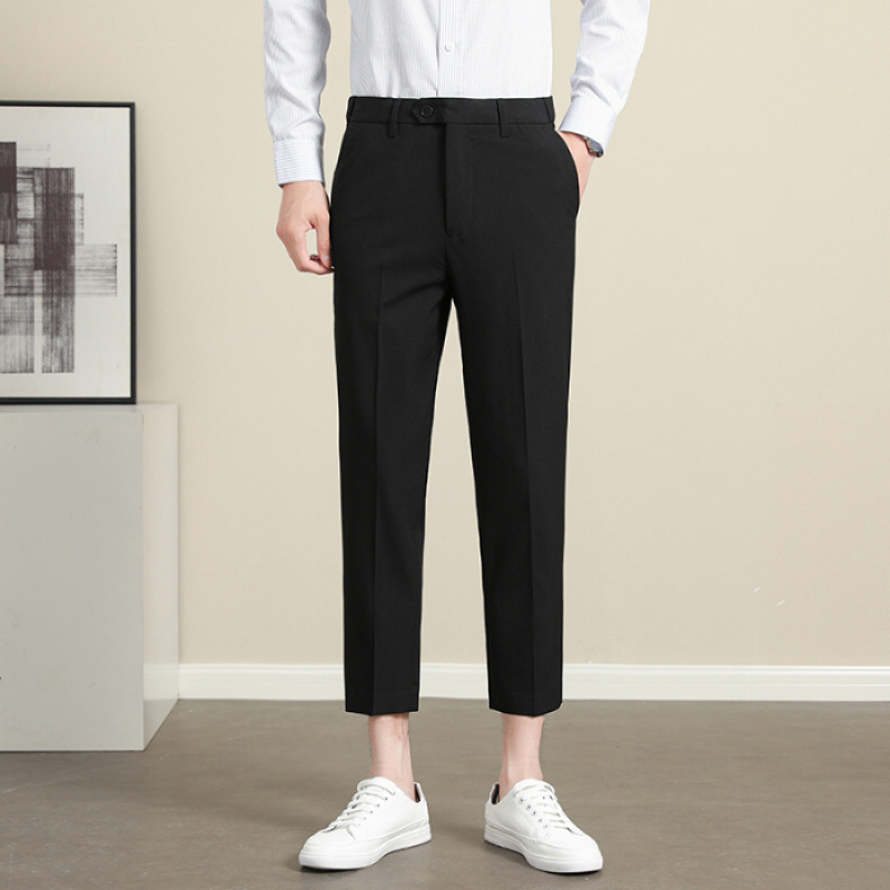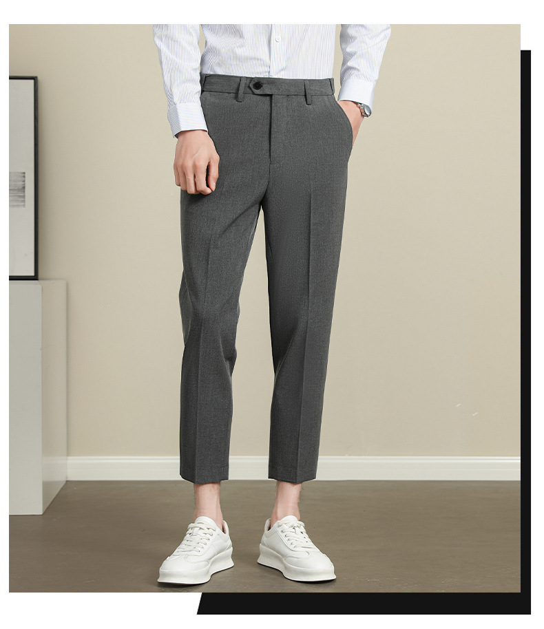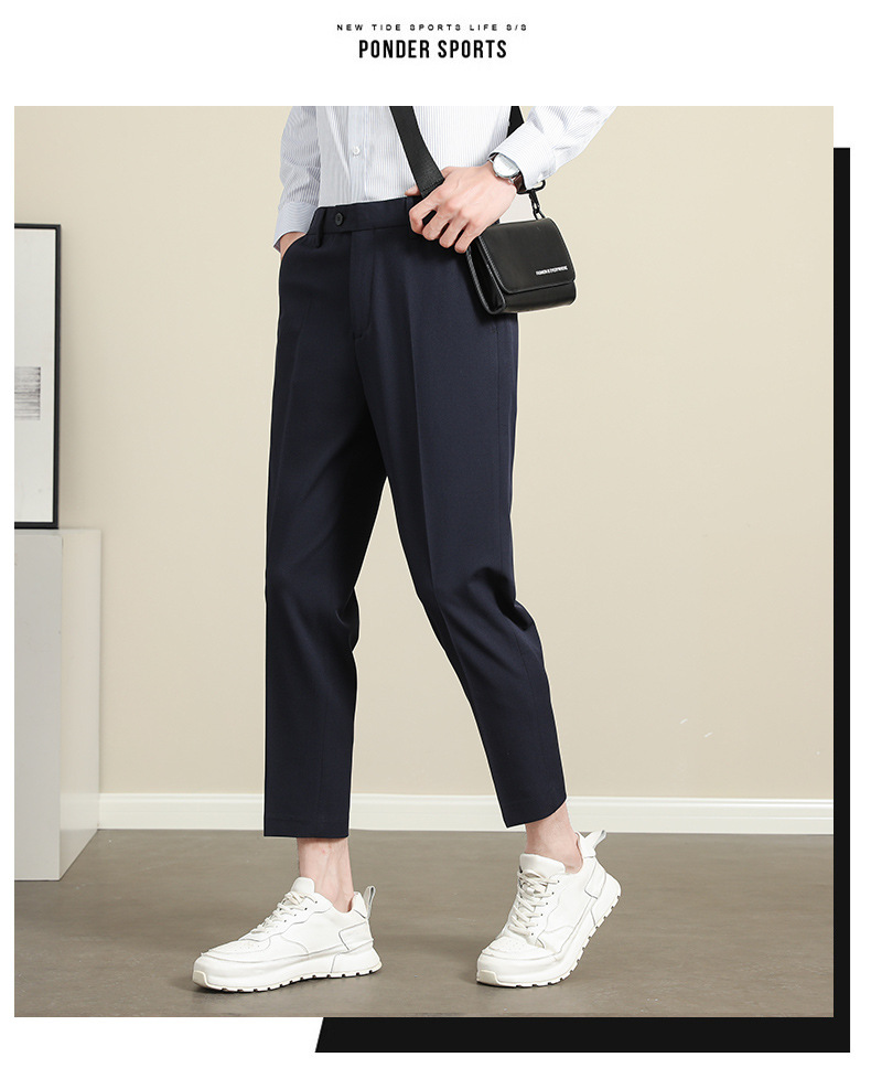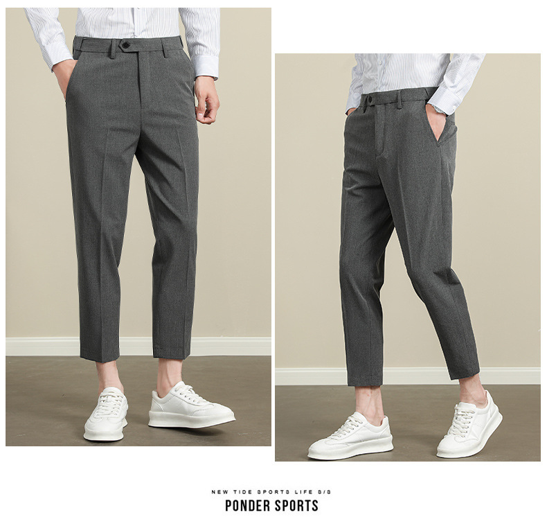 남성용 텐셀 주름 방지 바지 2025 여름 신상 하이 엔드 드레이프 스몰 스트레이트 9 점 아이스 실크 캐주얼 정장 바지