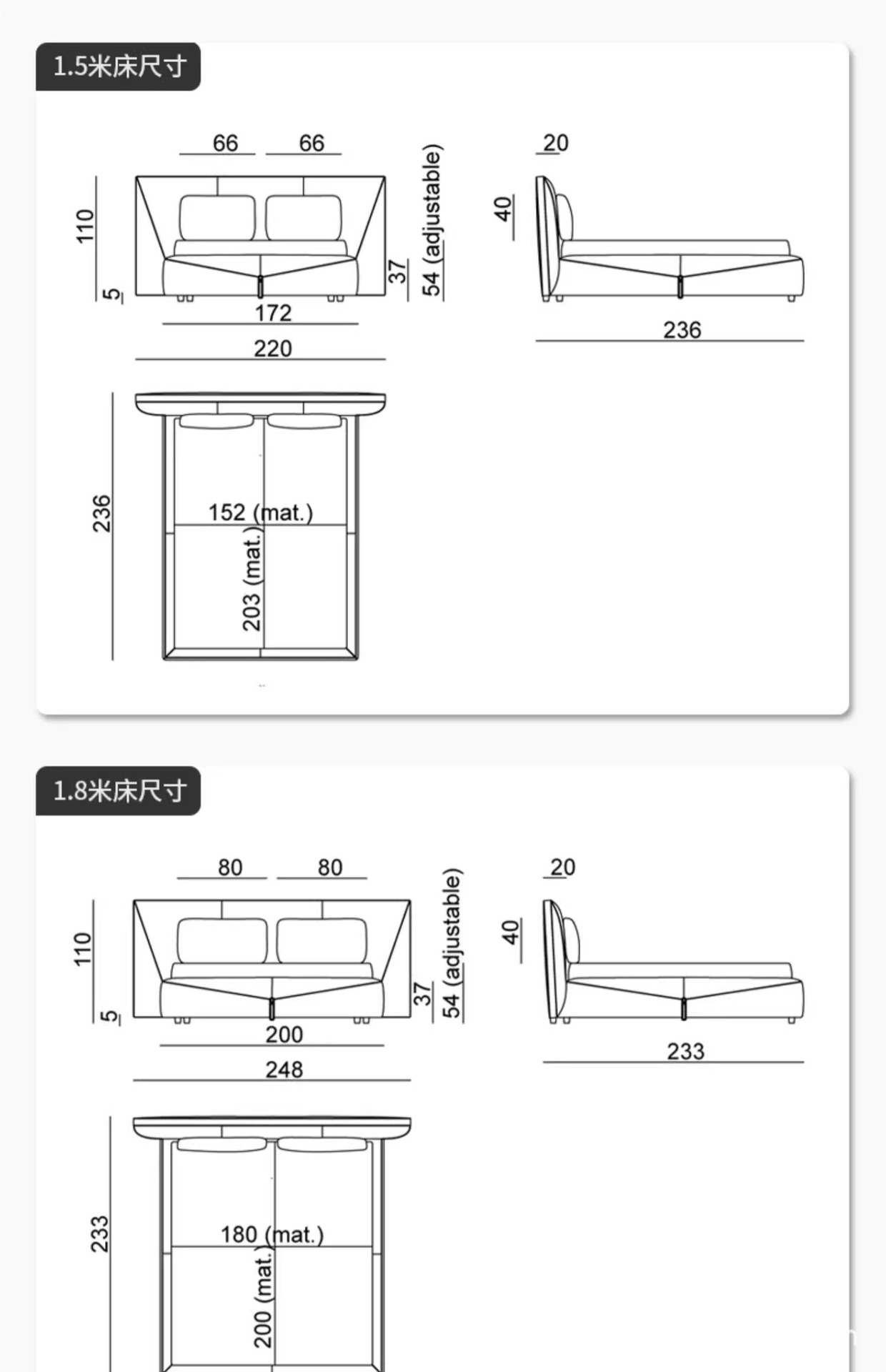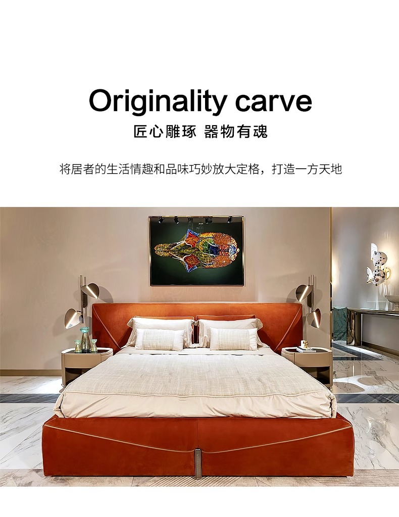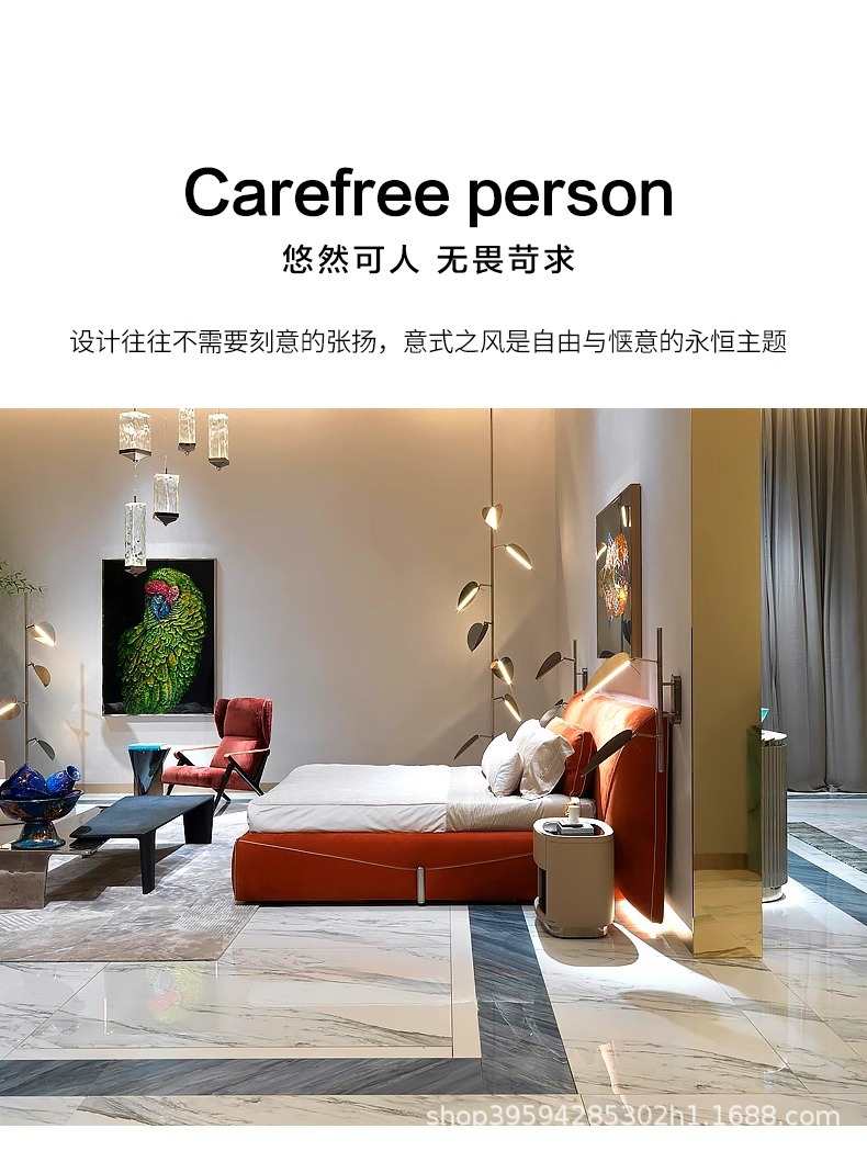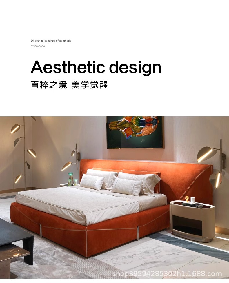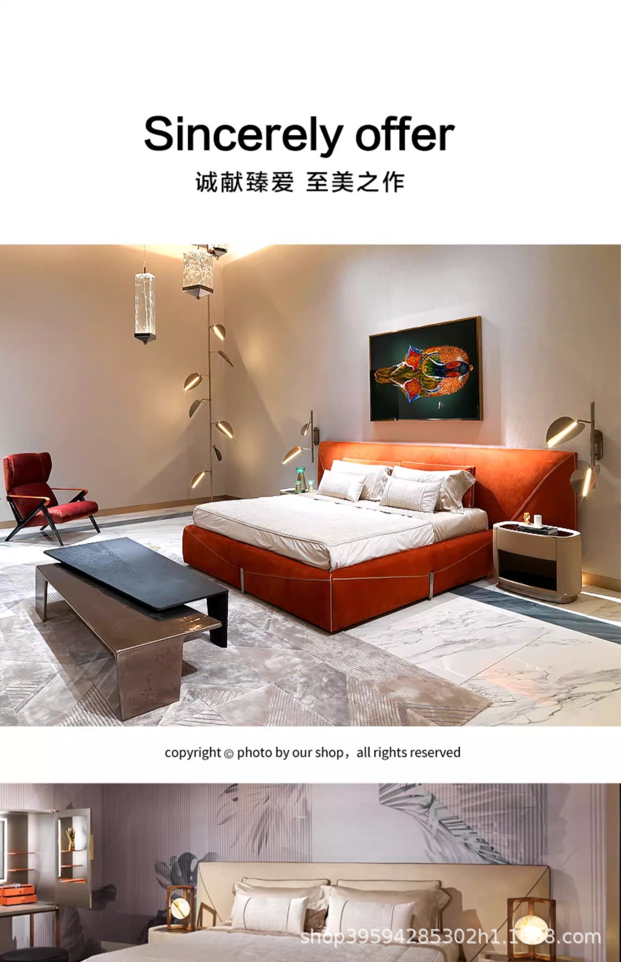 이탈리아 스타일의 가벼운 고급 가죽 침대 이탈리아 디자이너 와이드 스크린 대형 침대 하이 엔드 빌라 대형 플랫 레벨 봉투 침대스토어 가기