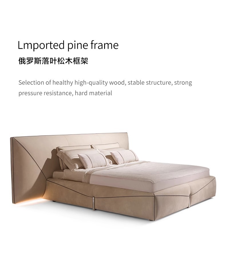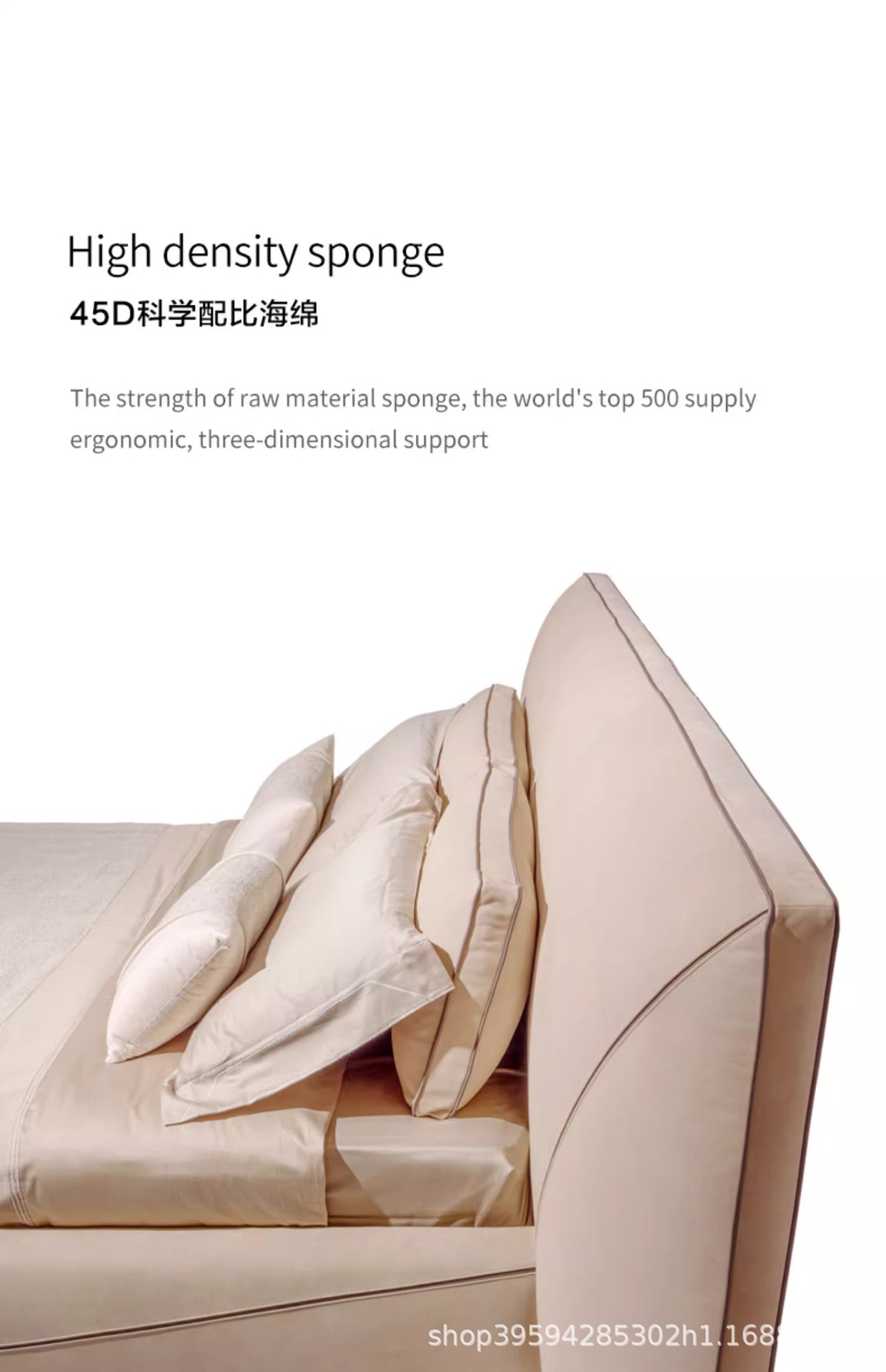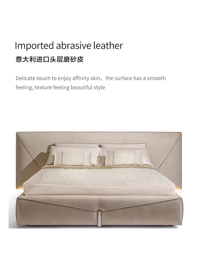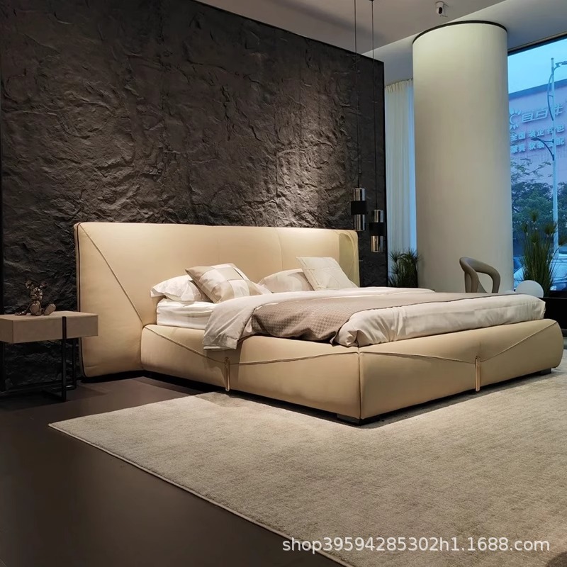 이탈리아 스타일의 가벼운 고급 가죽 침대 이탈리아 디자이너 와이드 스크린 대형 침대 하이 엔드 빌라 대형 플랫 레벨 봉투 침대