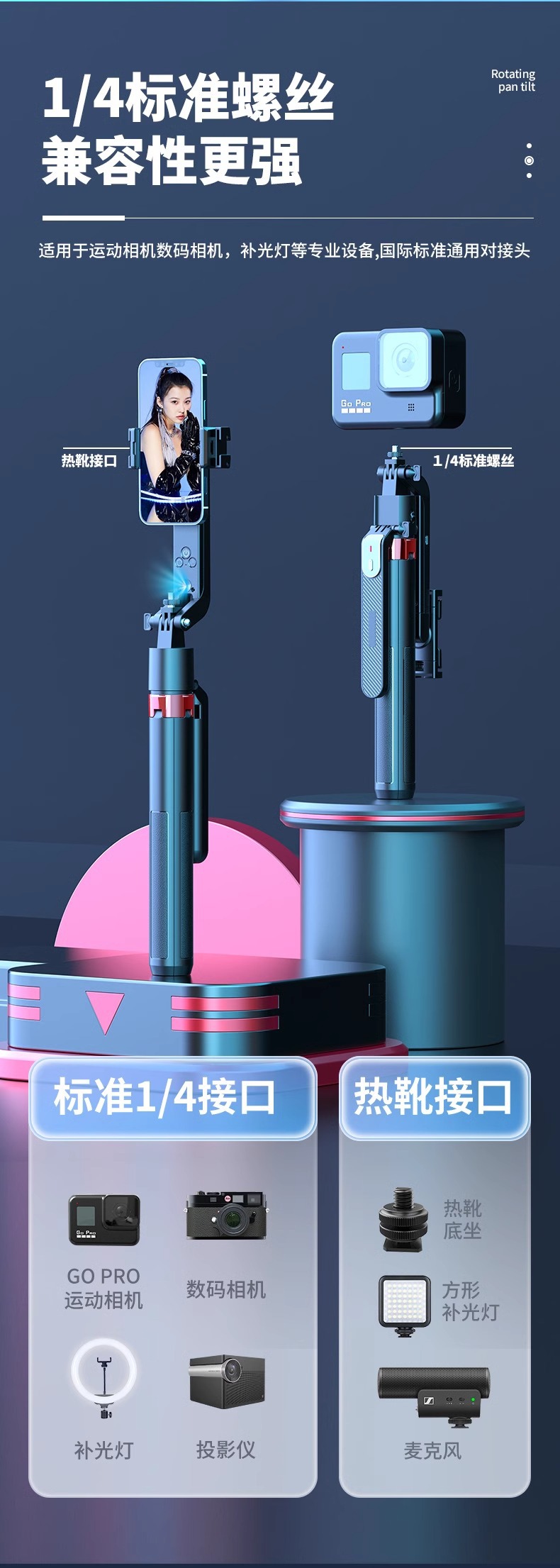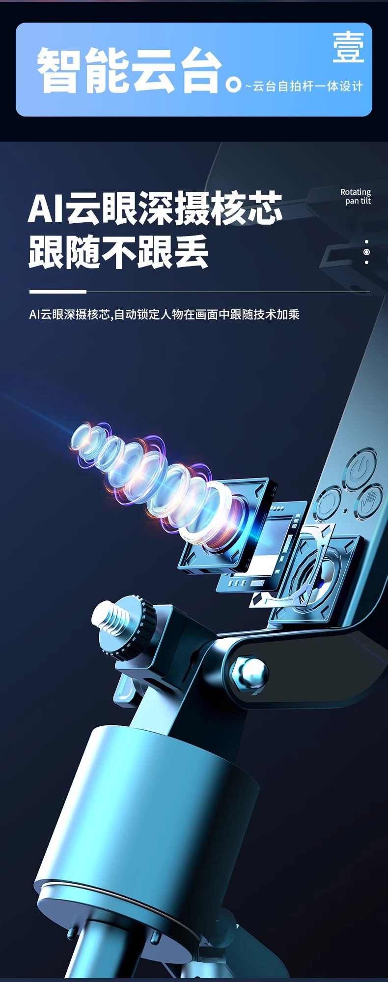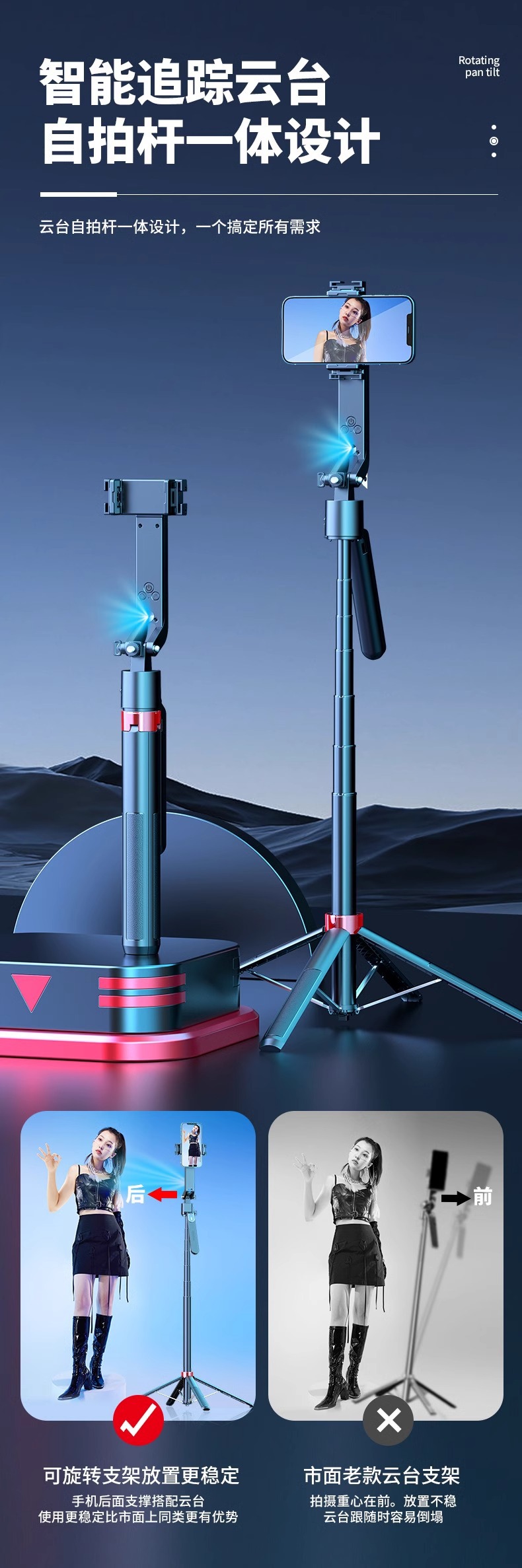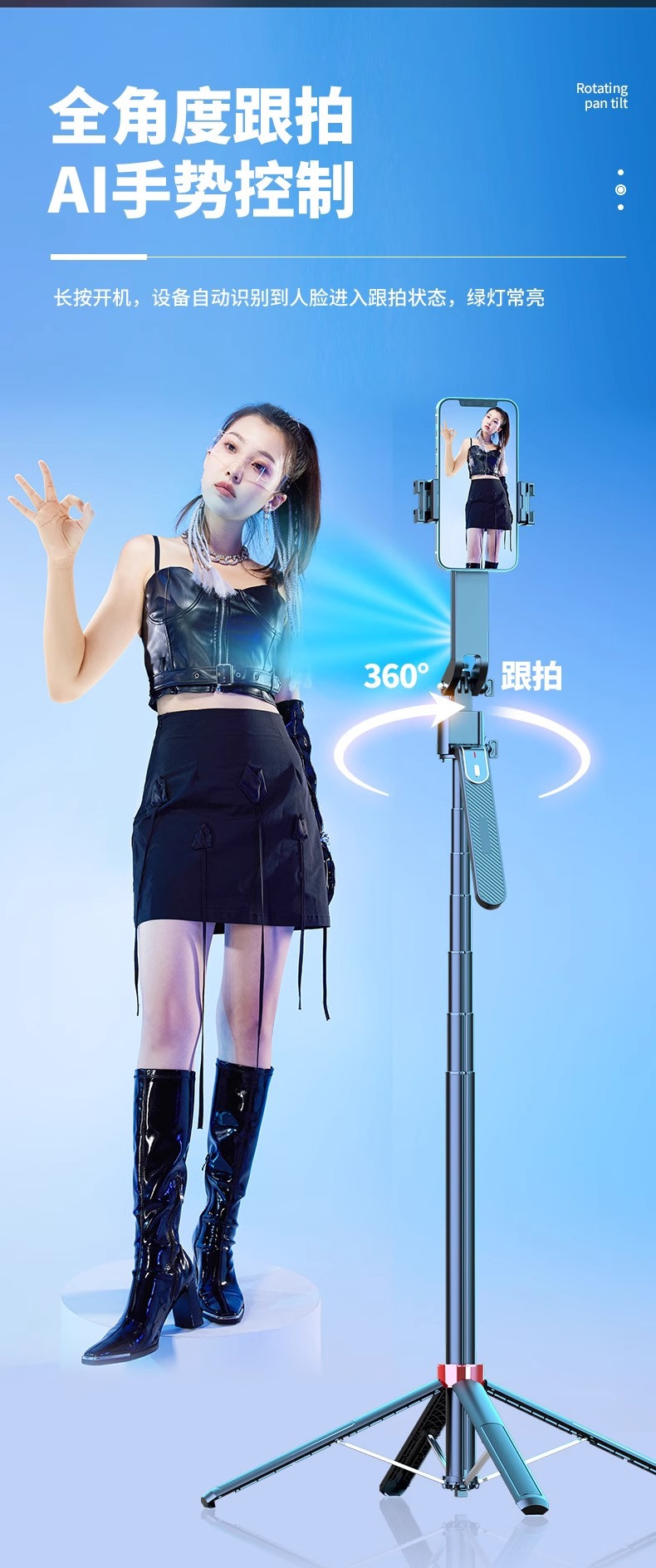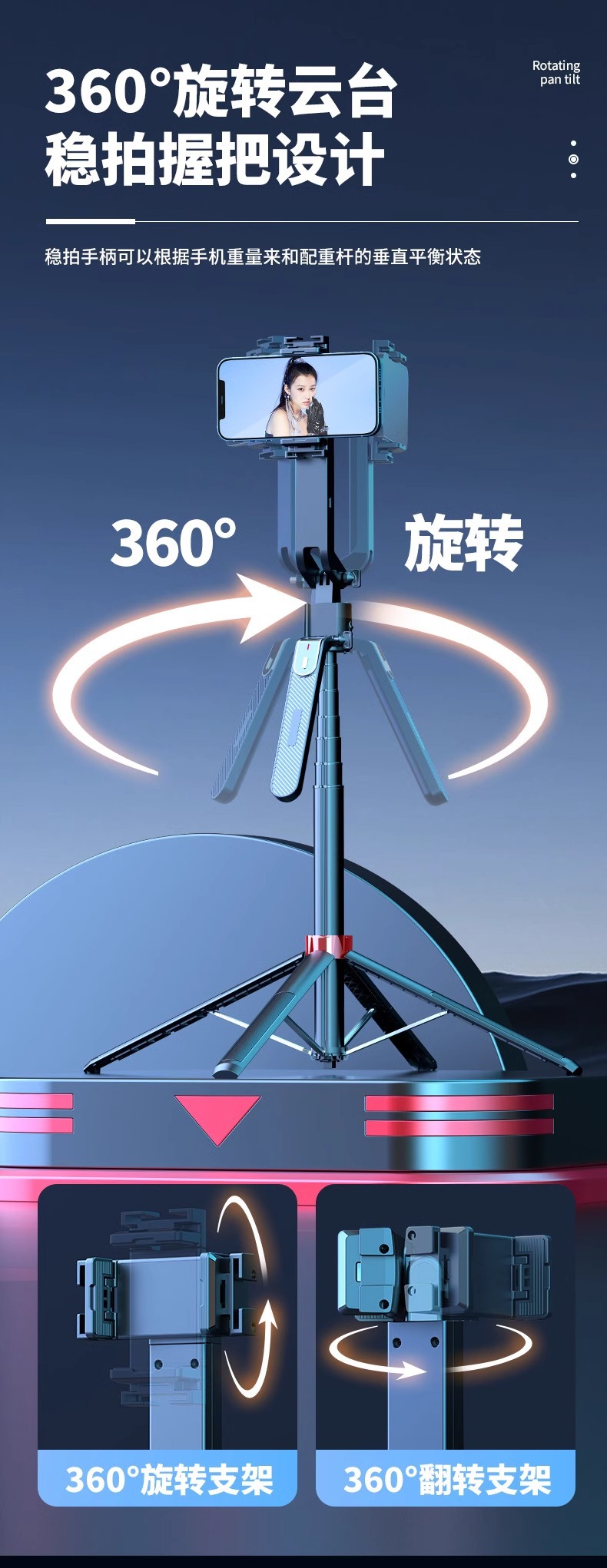 새로운 Q185 스마트 360 ° 회전하는 얼굴 추적 짐벌 셀카봉 하단의 원클릭 팝업 4피트 스탠드