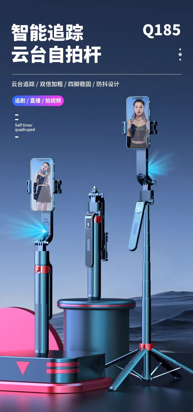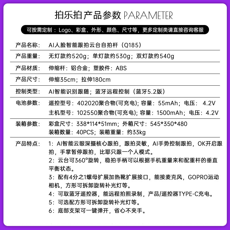 새로운 Q185 스마트 360 ° 회전하는 얼굴 추적 짐벌 셀카봉 하단의 원클릭 팝업 4피트 스탠드스토어 가기