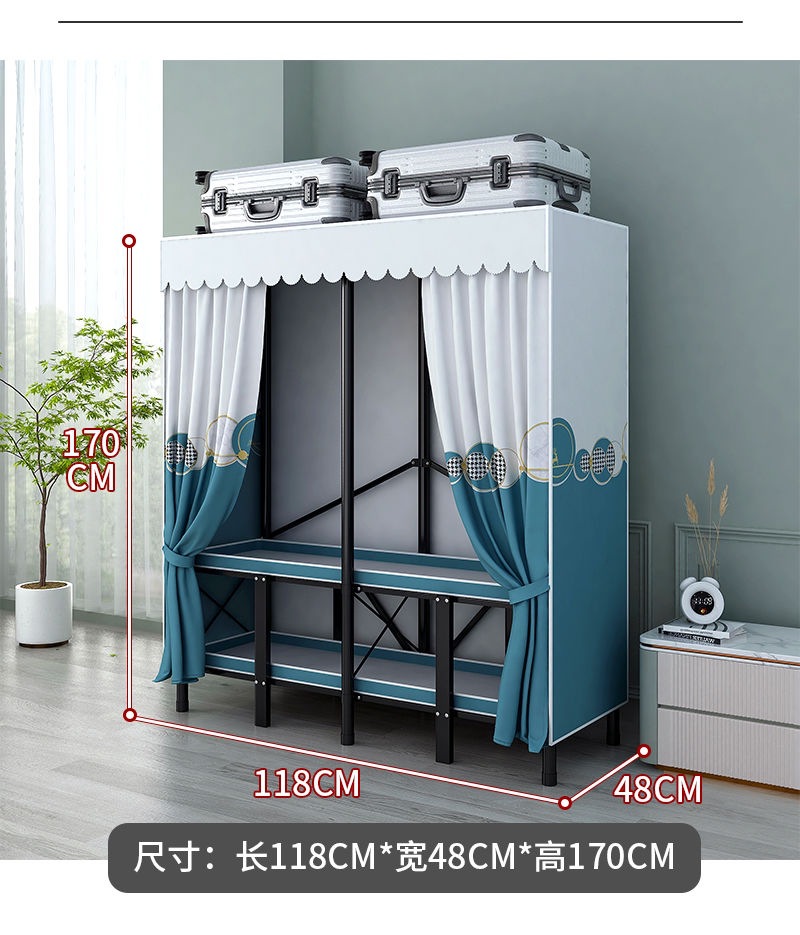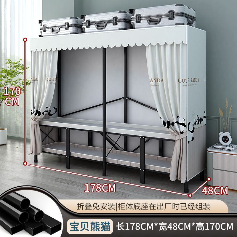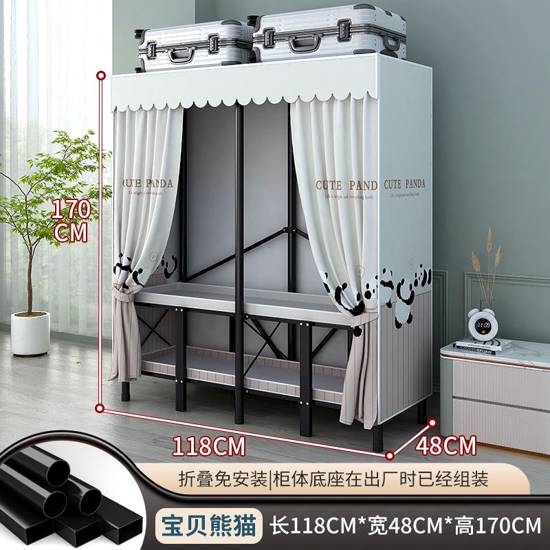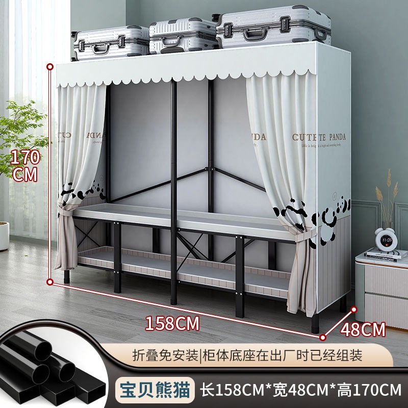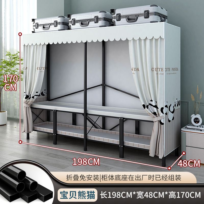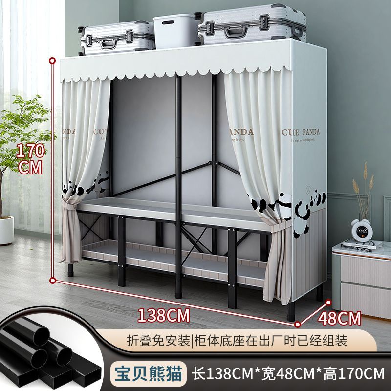 접이식 설치가 필요 없는 옷장 강철 파이프 두껍고 강화된 침실 거실 임대실 가정용 옷장 간단한 보관