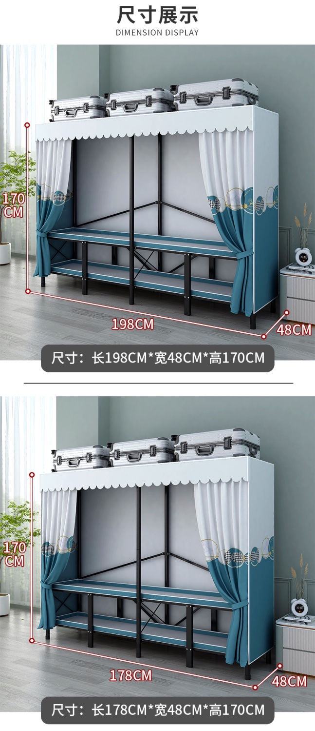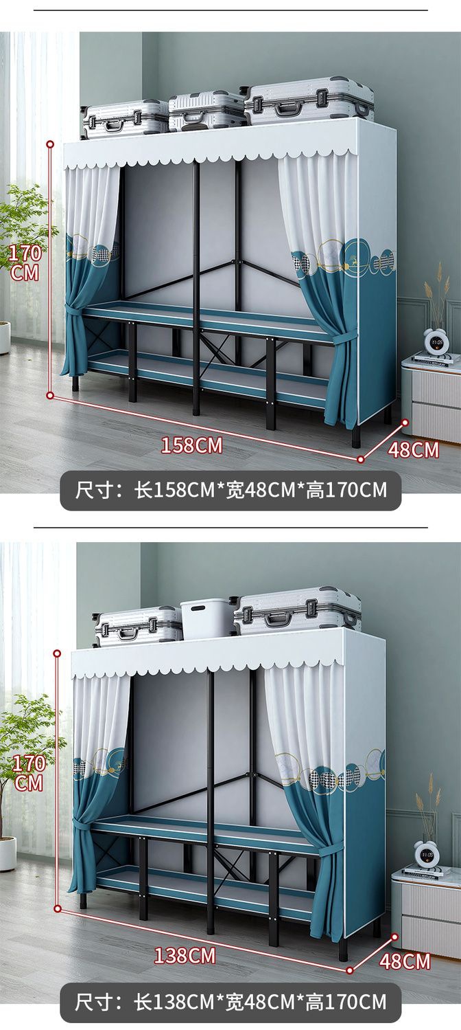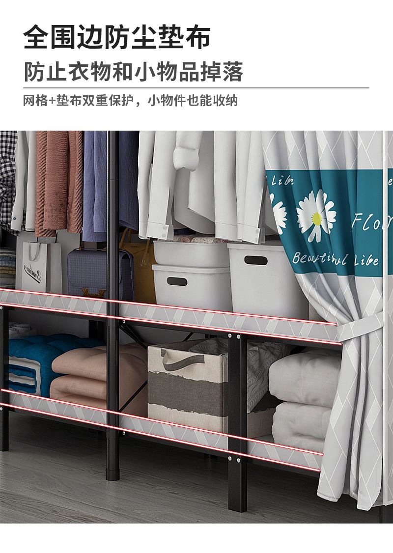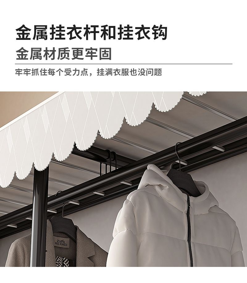 접이식 설치가 필요 없는 옷장 강철 파이프 두껍고 강화된 침실 거실 임대실 가정용 옷장 간단한 보관