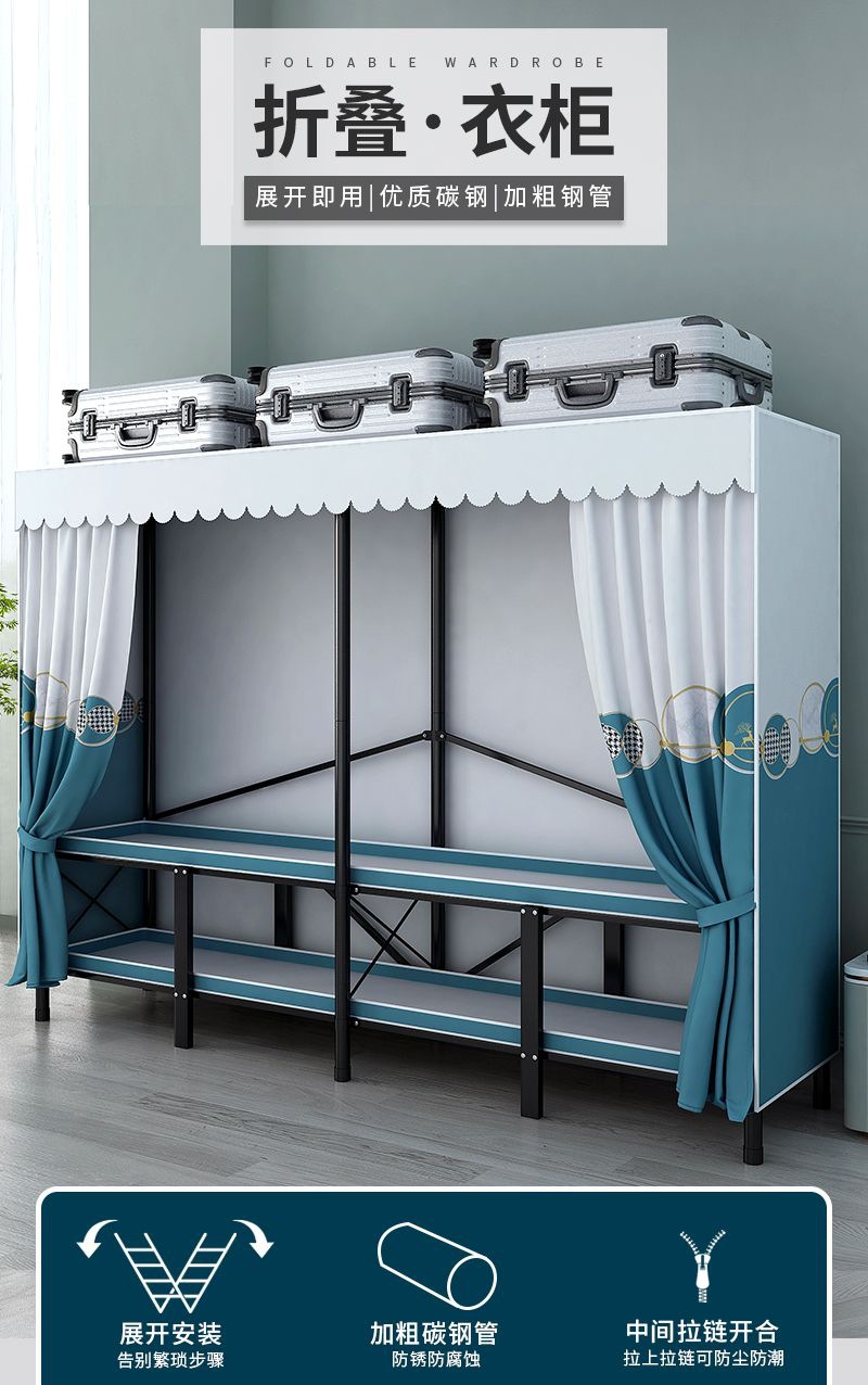 접이식 설치가 필요 없는 옷장 강철 파이프 두껍고 강화된 침실 거실 임대실 가정용 옷장 간단한 보관스토어 가기