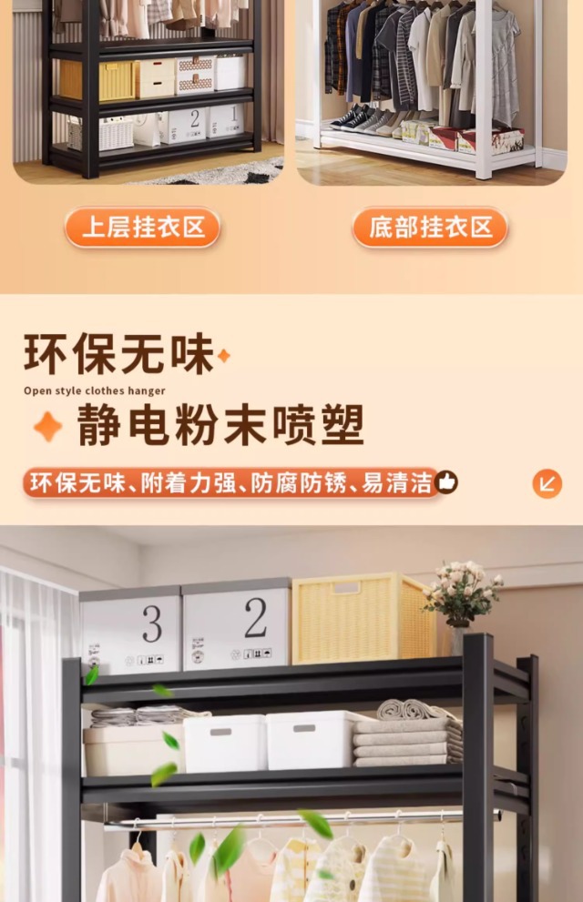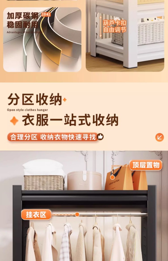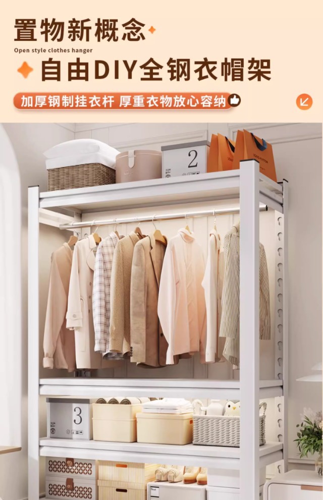 렌탈룸용 선반 옷장, 간편 조립 옷걸이, 가정용 침실 오픈 옷장, 옷걸이, 옷걸이스토어 가기