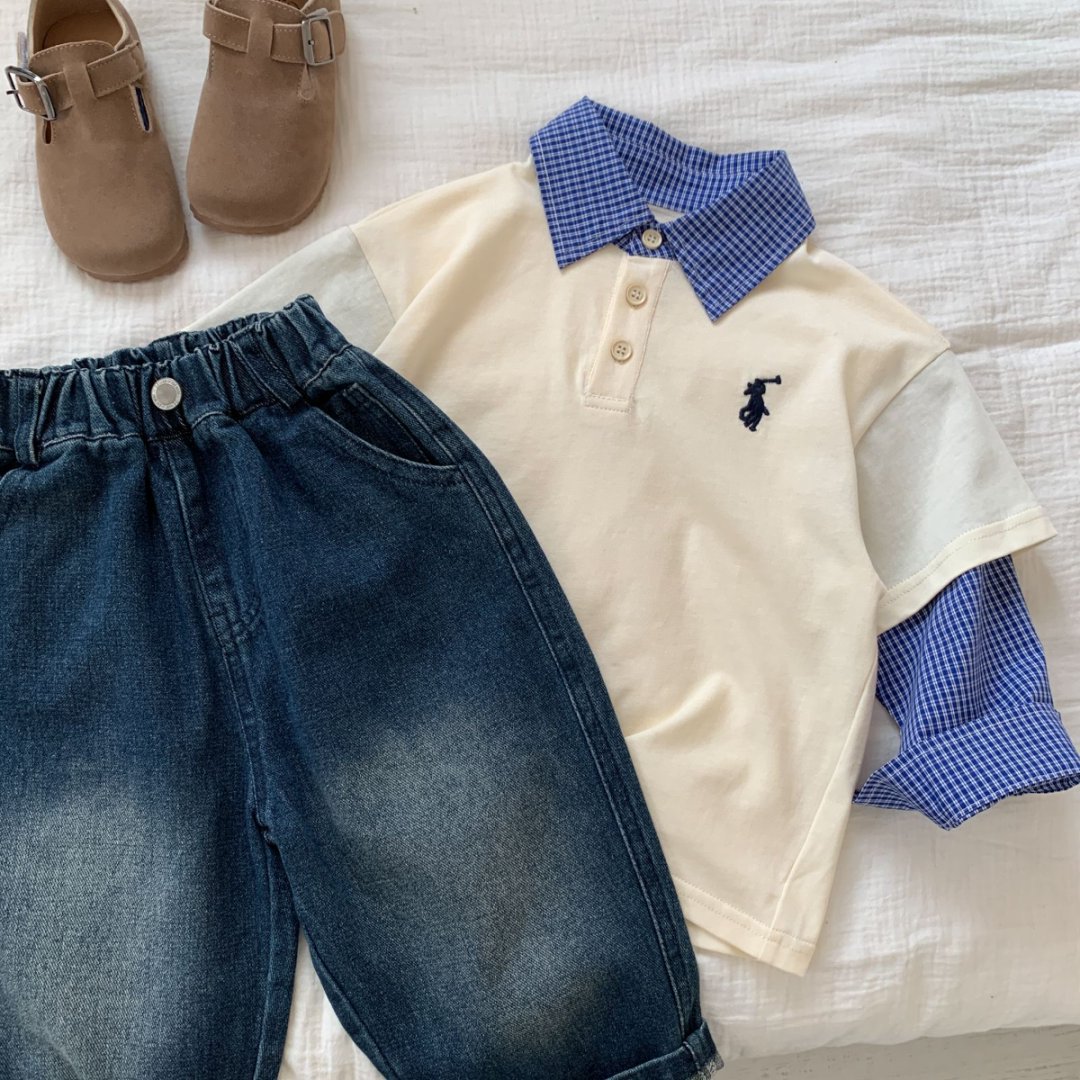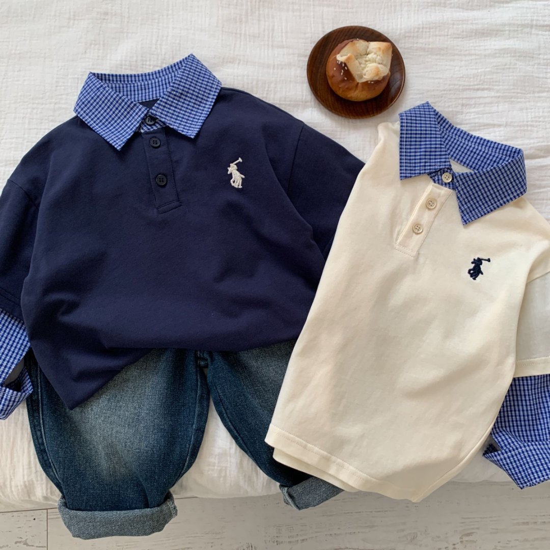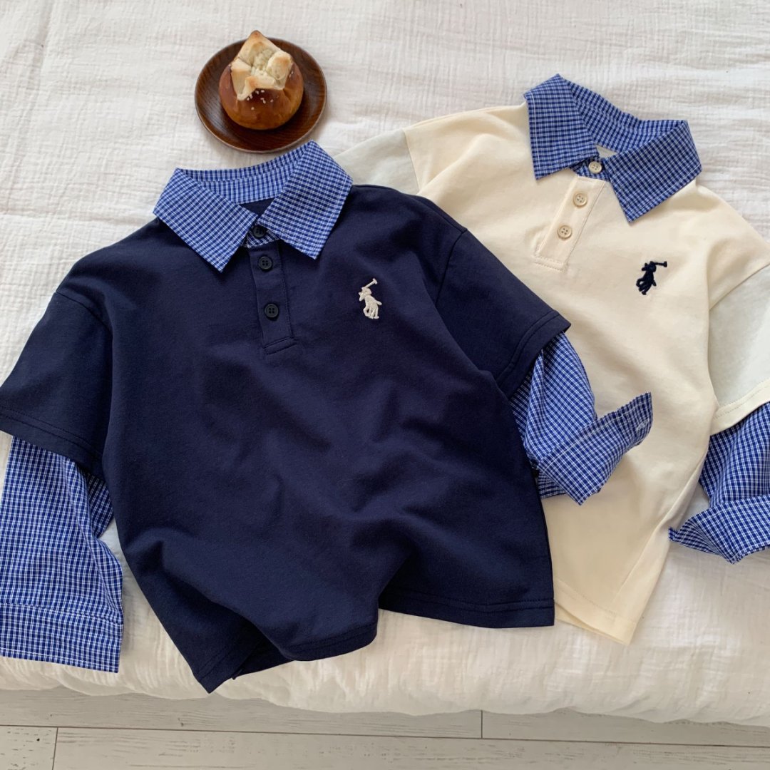 아동 셔츠 2025 가을 새로운 아동 의류 소년과 소녀 옷깃 폴로 셔츠 가짜 투피스 베이비 탑 유행스토어 가기