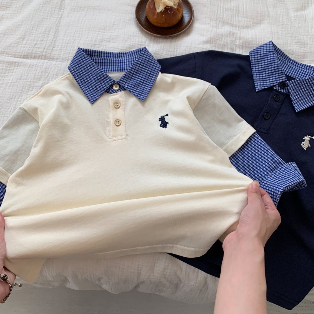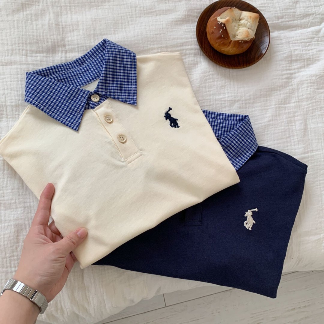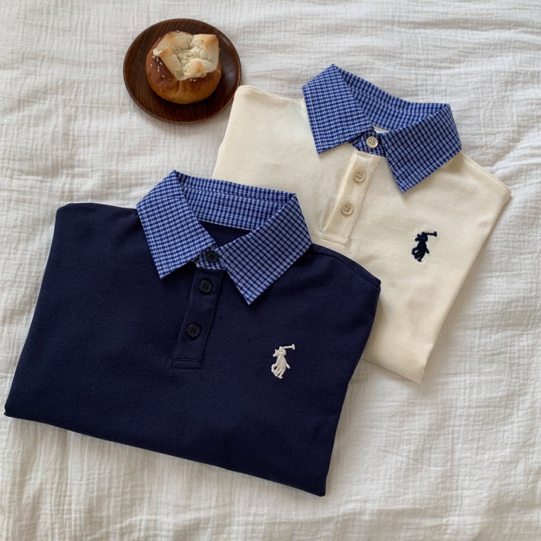 아동 셔츠 2025 가을 새로운 아동 의류 소년과 소녀 옷깃 폴로 셔츠 가짜 투피스 베이비 탑 유행스토어 가기