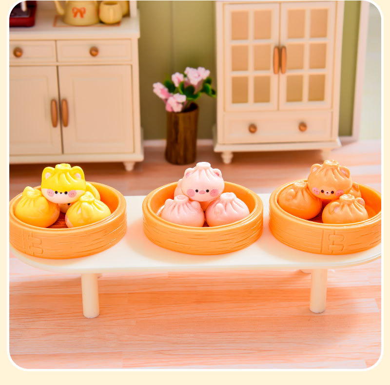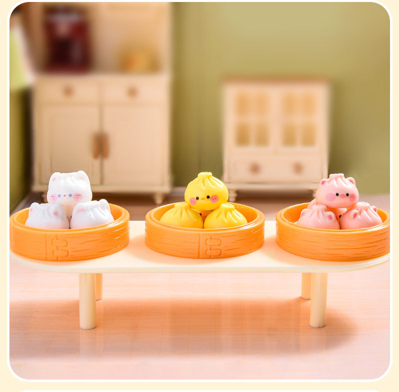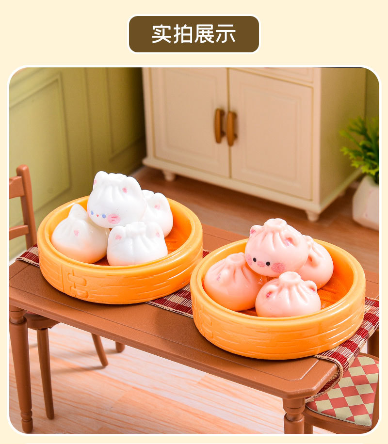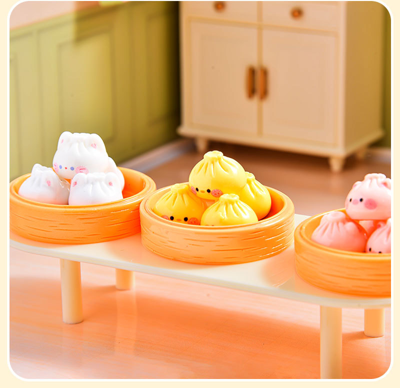 귀여운 아침 식사 Xiaolongbao 시뮬레이션 소형 음식 장난감 수지 액세서리 인형 집 diy 장식 데스크탑 장식품