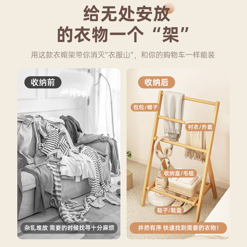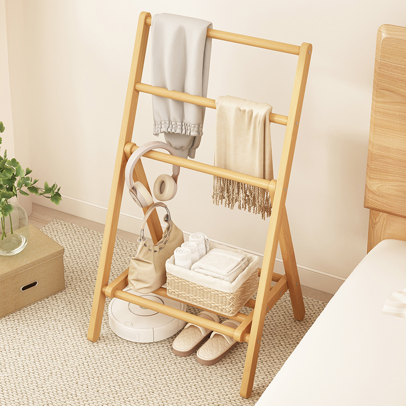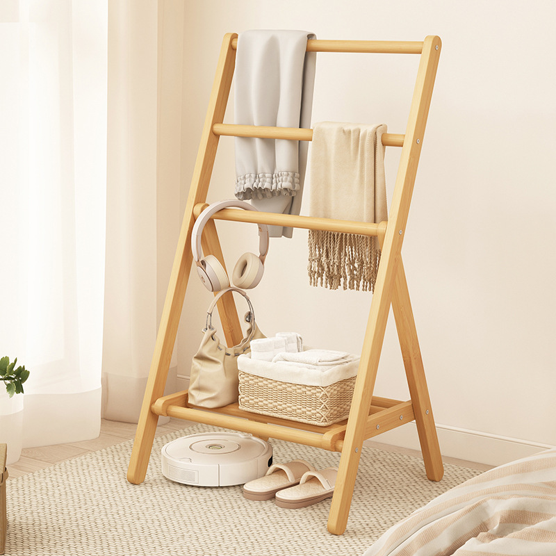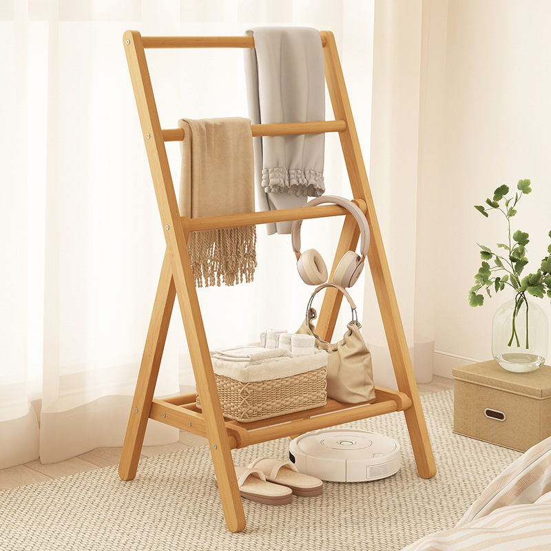 접이식 옷걸이, 침실 바닥 옷걸이, 침대 옆 옷걸이, 경제적인 대나무 수납 선반스토어 가기