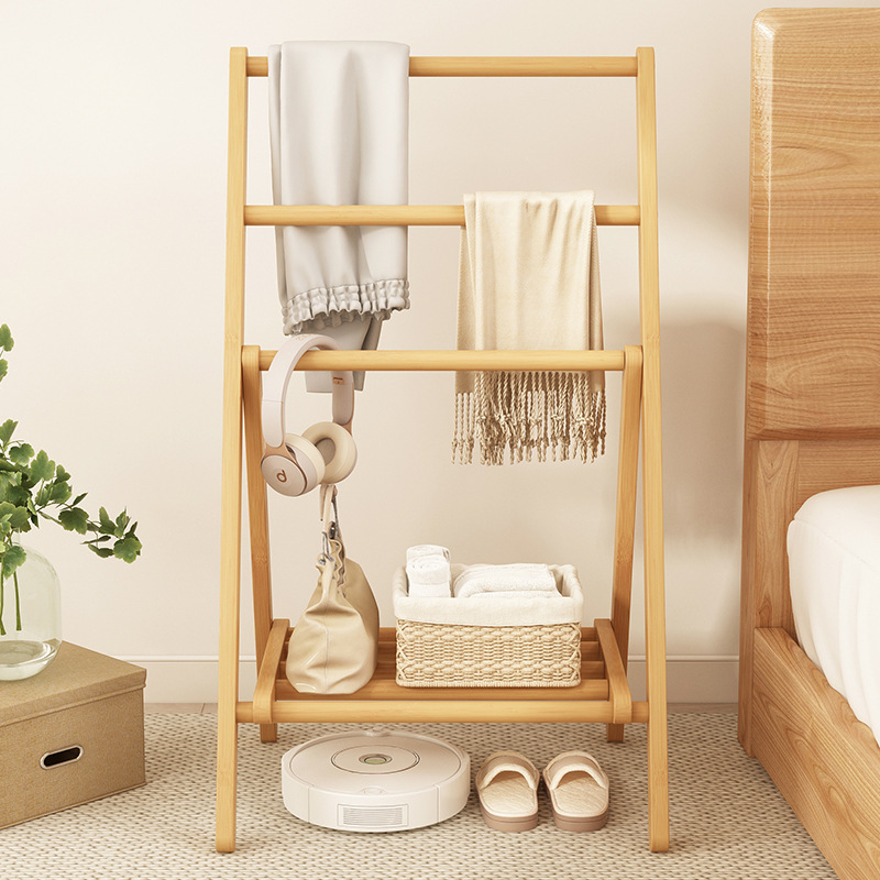 접이식 옷걸이, 침실 바닥 옷걸이, 침대 옆 옷걸이, 경제적인 대나무 수납 선반