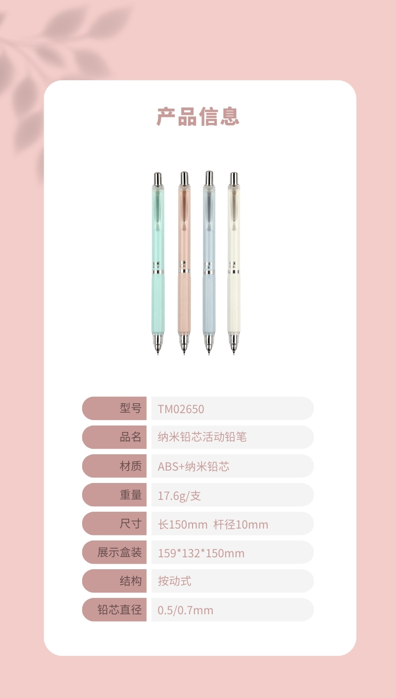 Tianzhuo 정품 02650 나노 리드 자동 연필 학생 0.5mm 깨지기 쉽지 않은 고가치 샤프 펜슬스토어 가기