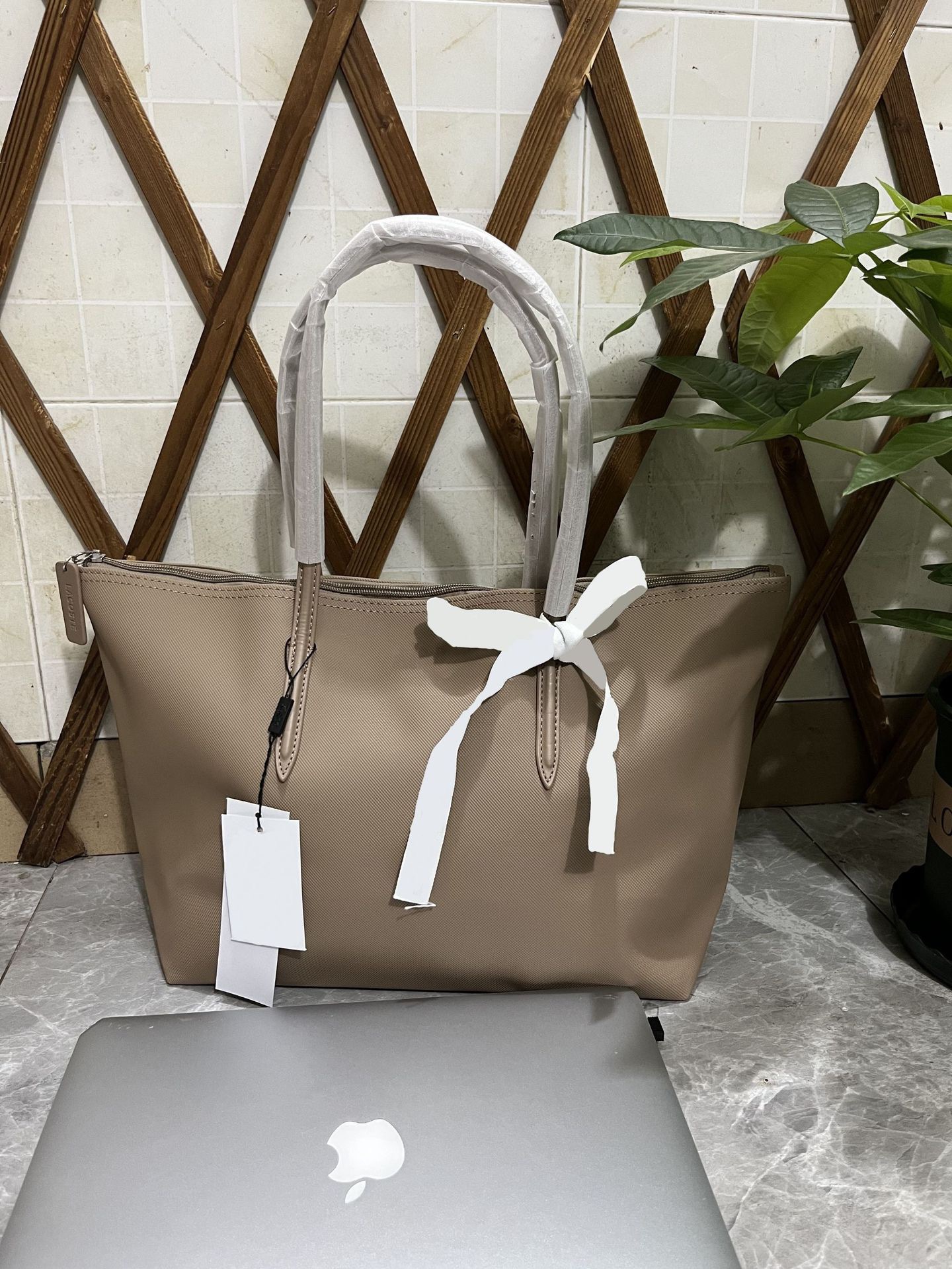 프랑스의 새로운 가로형 대형 사악한 물고기 가방 대용량 토트 백 방수 통근 토트 여성용 가방 라코스트 백스토어 가기