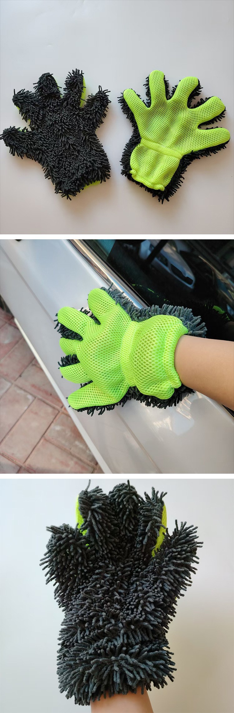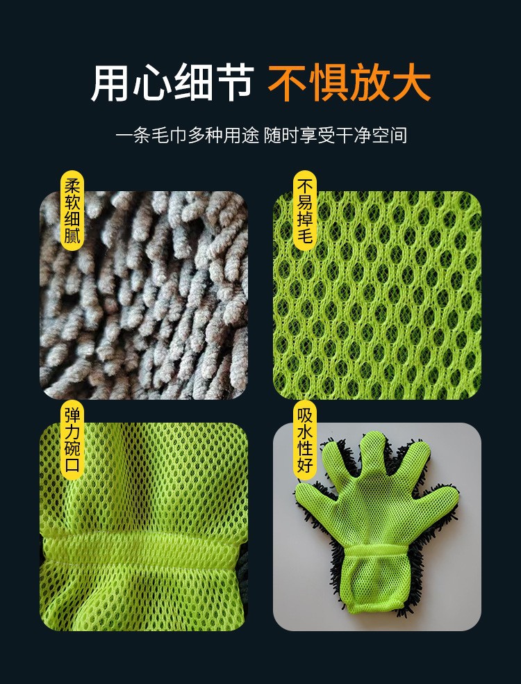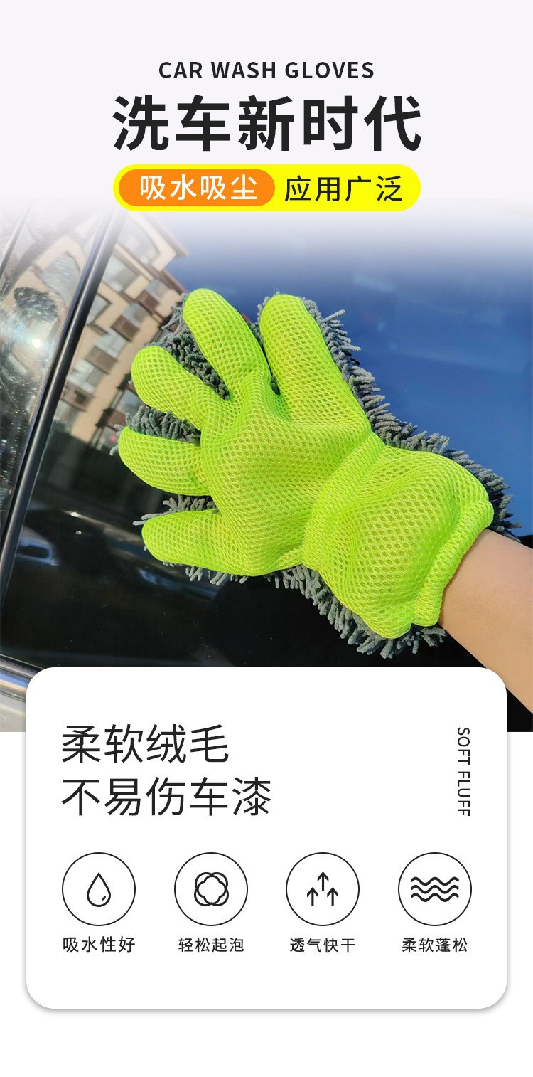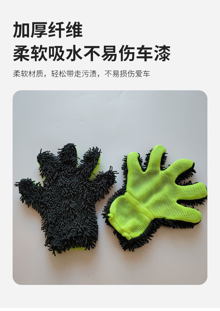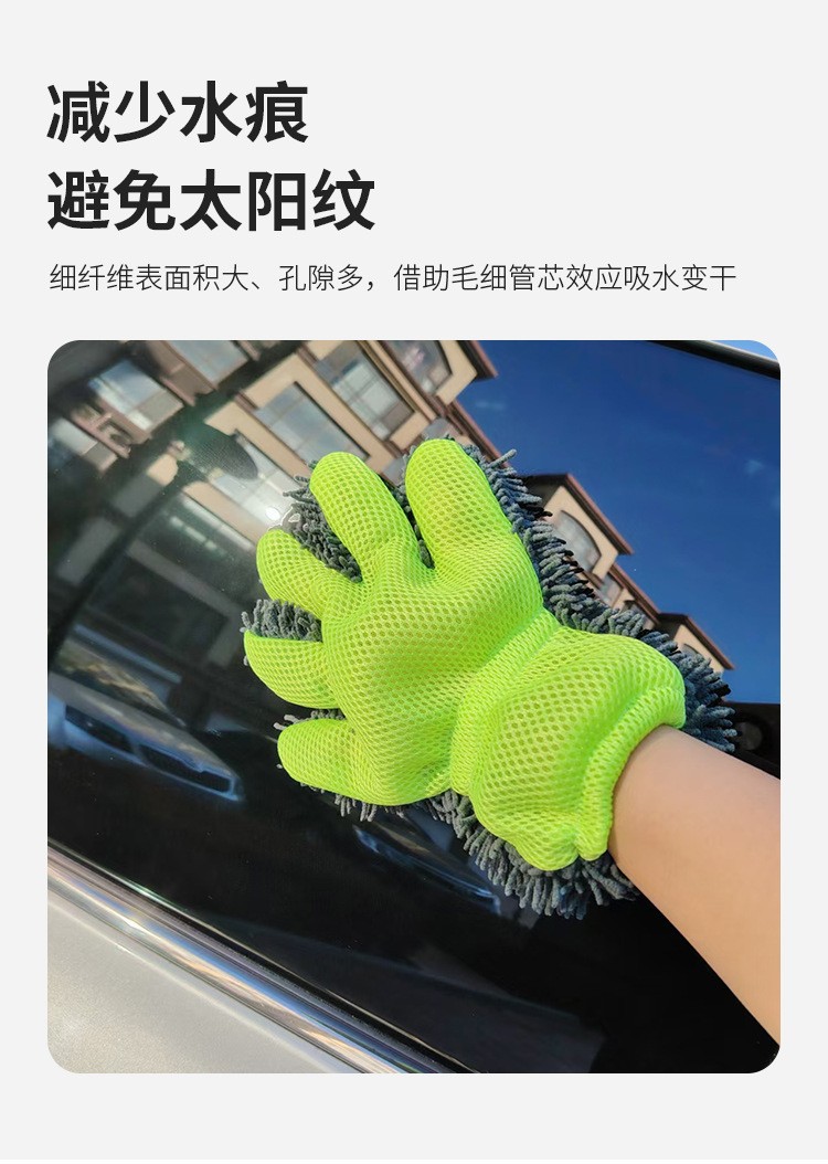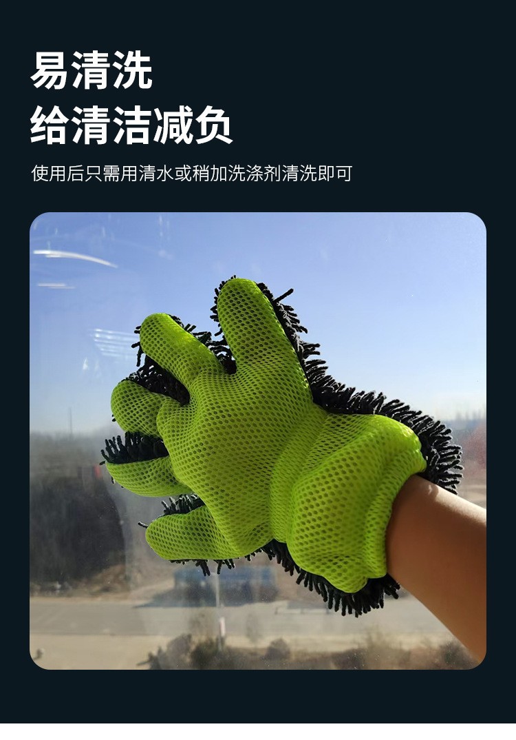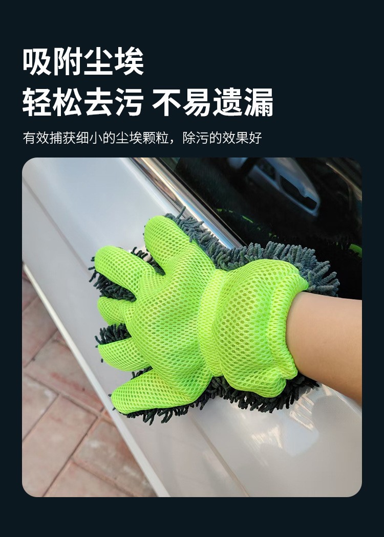 국경 간 공급 도매 셔닐 플러시 자동차 닦는 다섯 손가락 장갑 청소 걸레 샌드위치 메쉬 라벨 드롭 배송