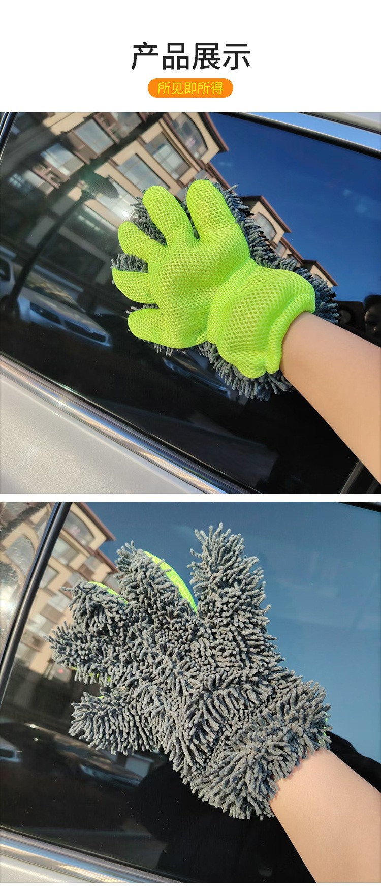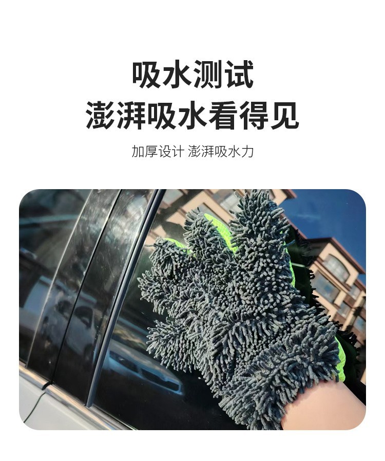 국경 간 공급 도매 셔닐 플러시 자동차 닦는 다섯 손가락 장갑 청소 걸레 샌드위치 메쉬 라벨 드롭 배송스토어 가기