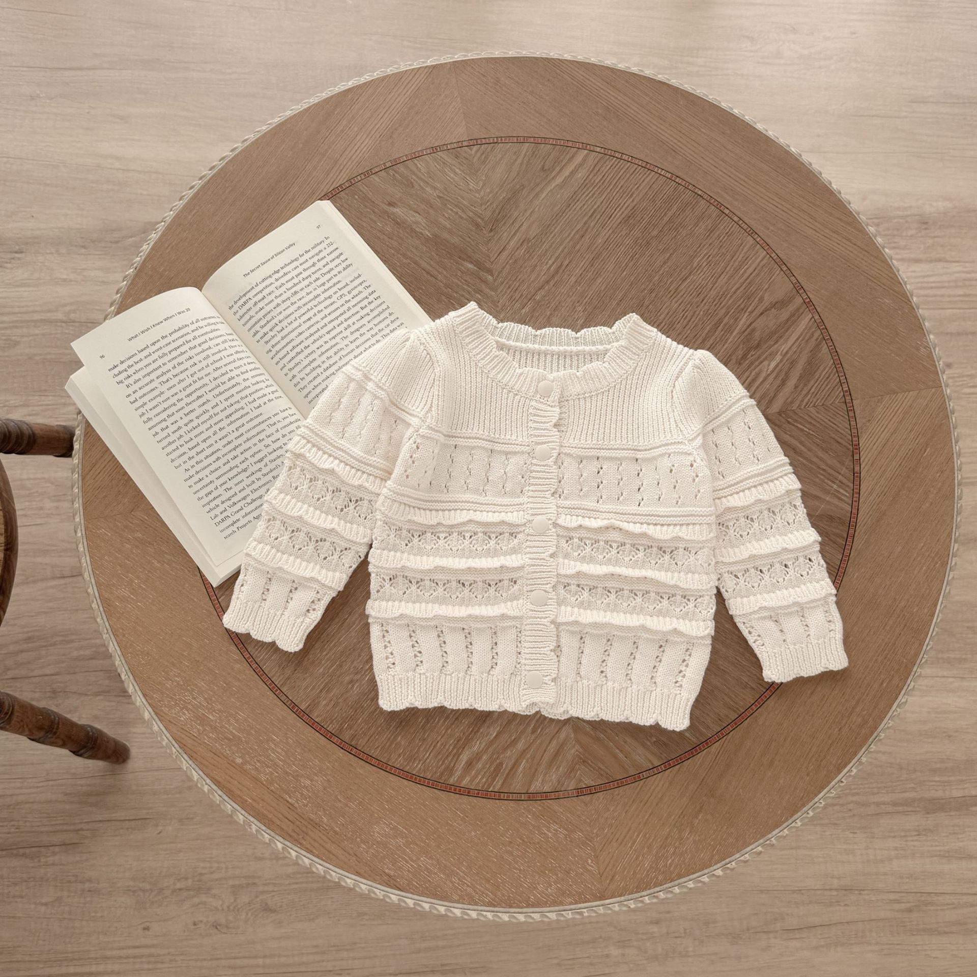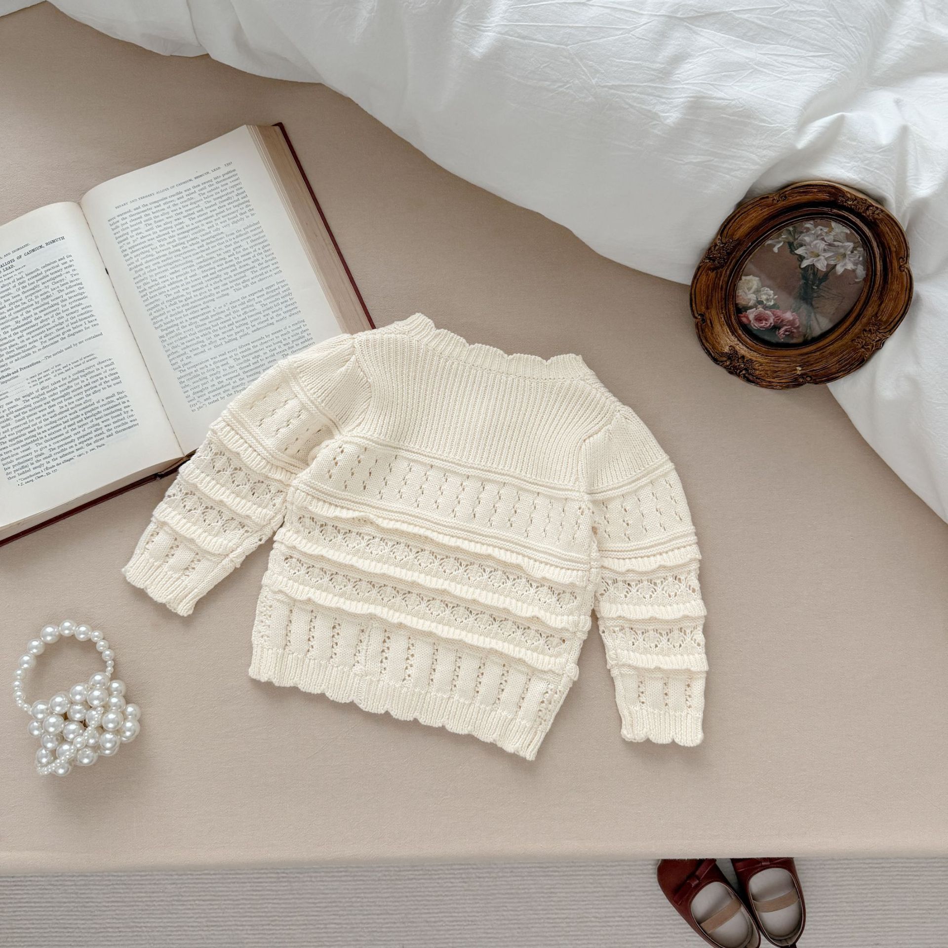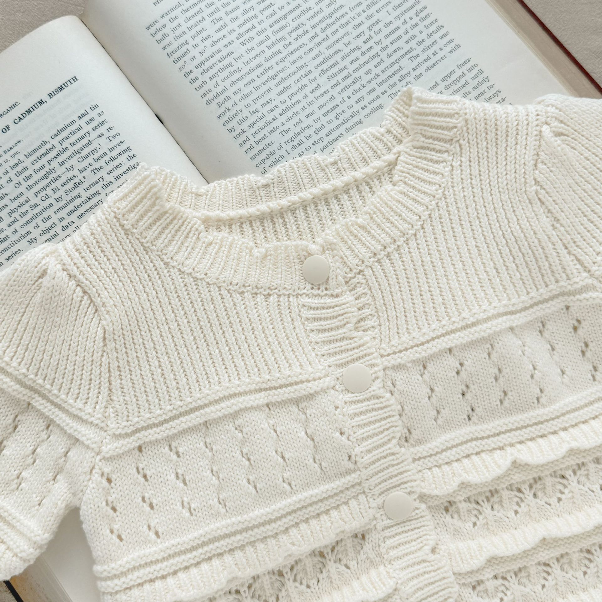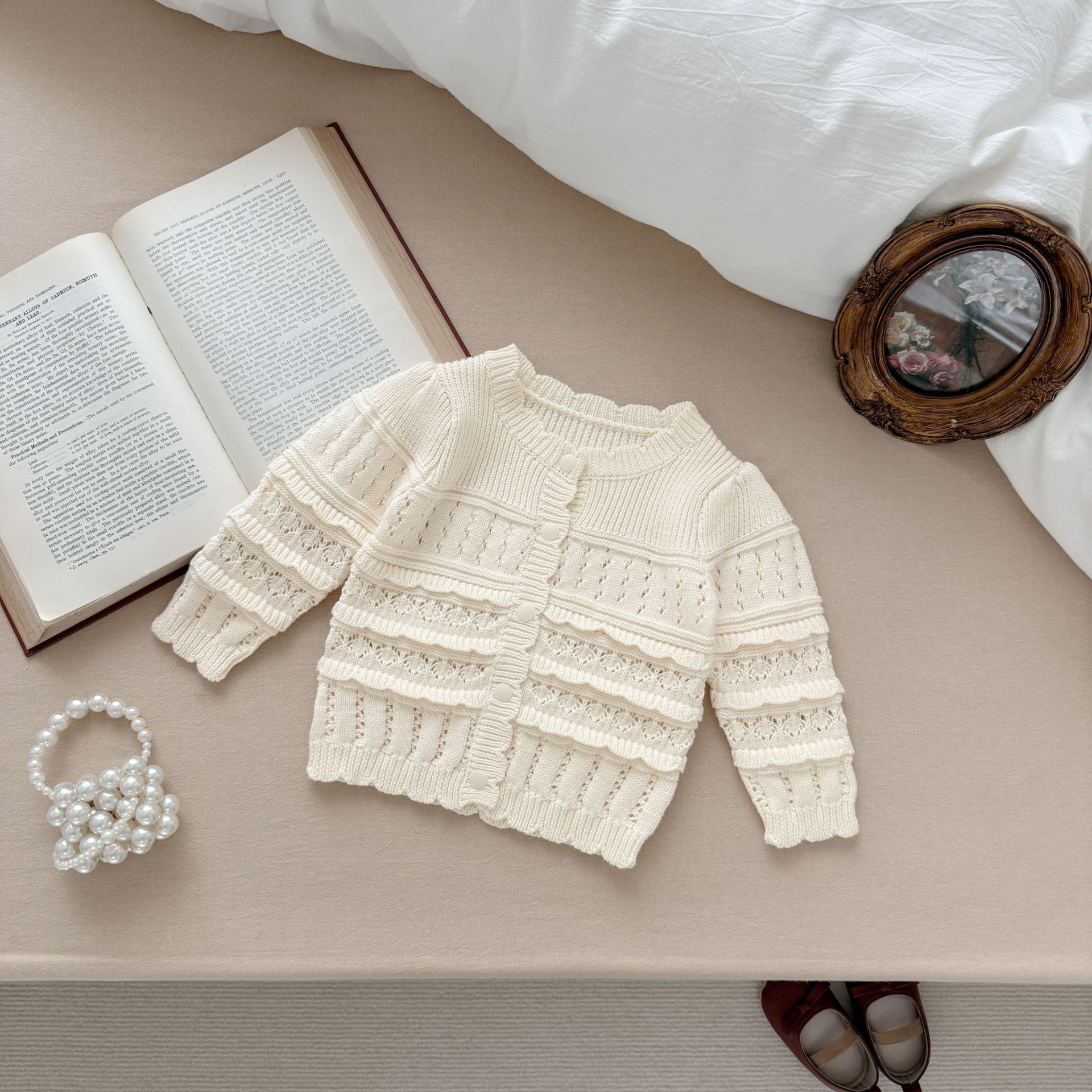 여아용 뜨개질 가디건 봄 가을 순면 여아용 삼중 레이스 라운드넥 다용도 코트