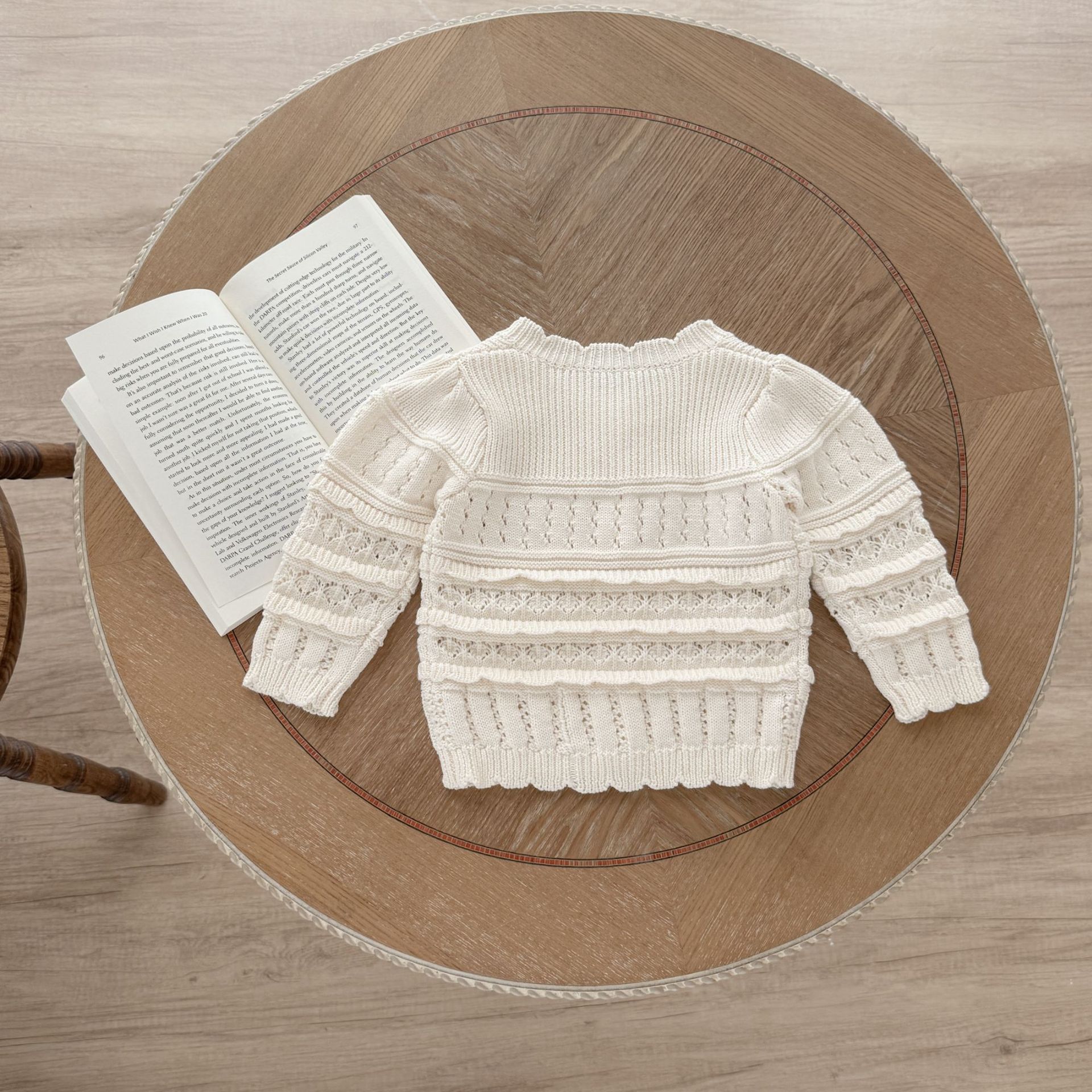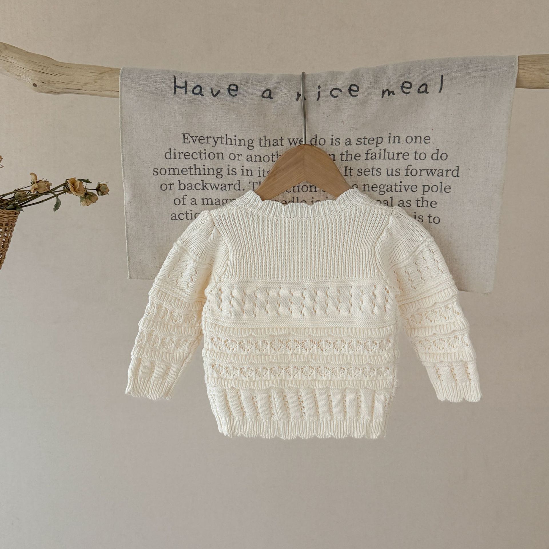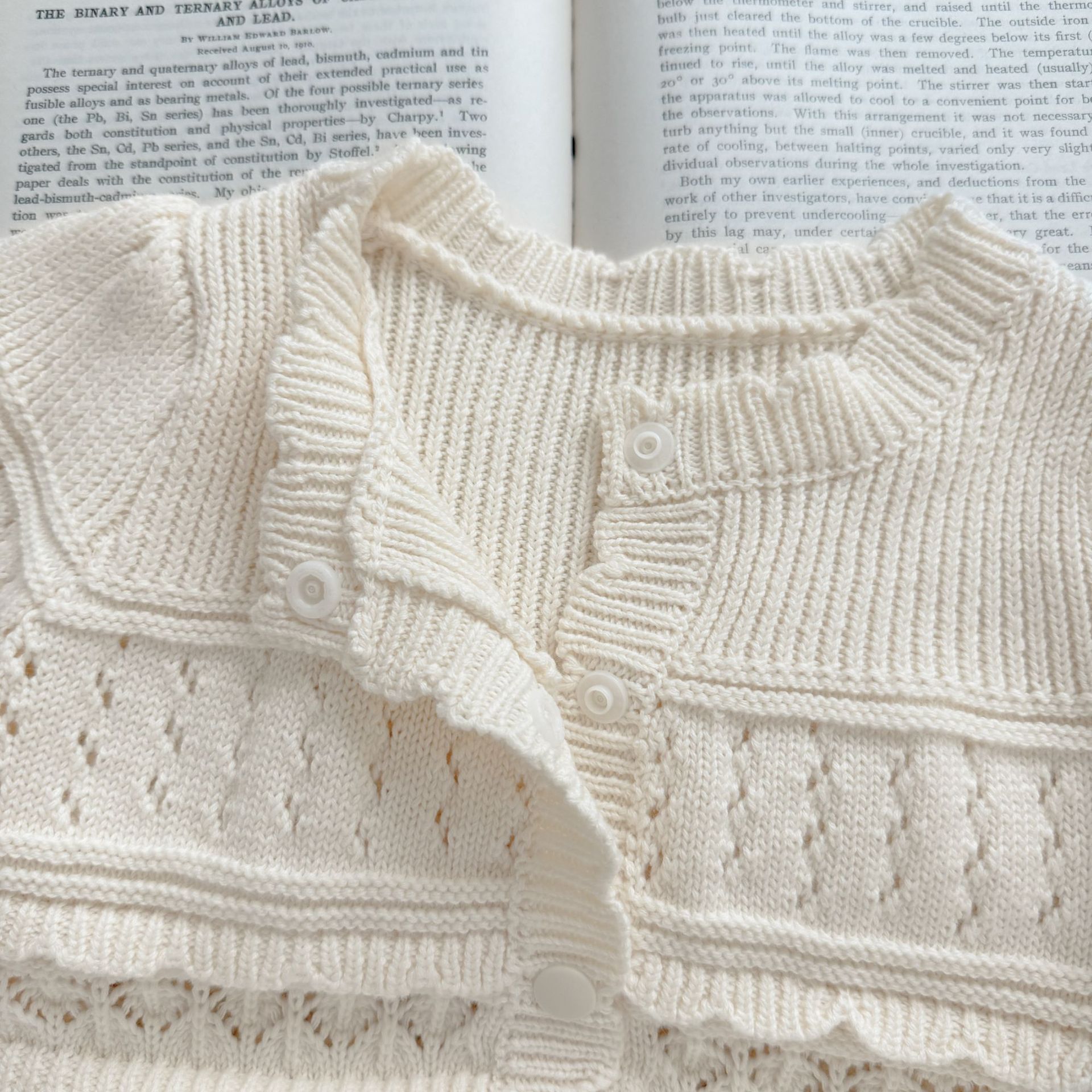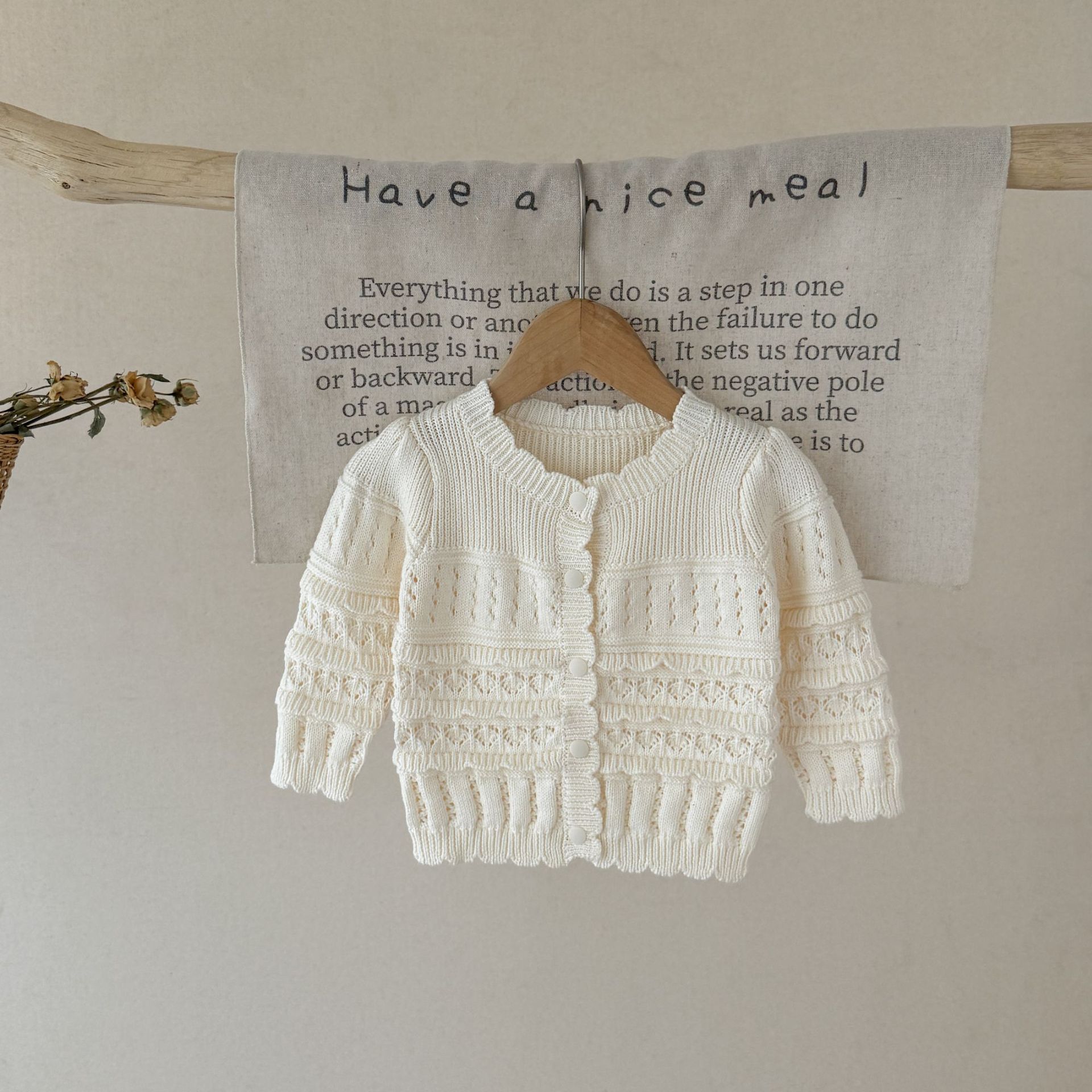 여아용 뜨개질 가디건 봄 가을 순면 여아용 삼중 레이스 라운드넥 다용도 코트