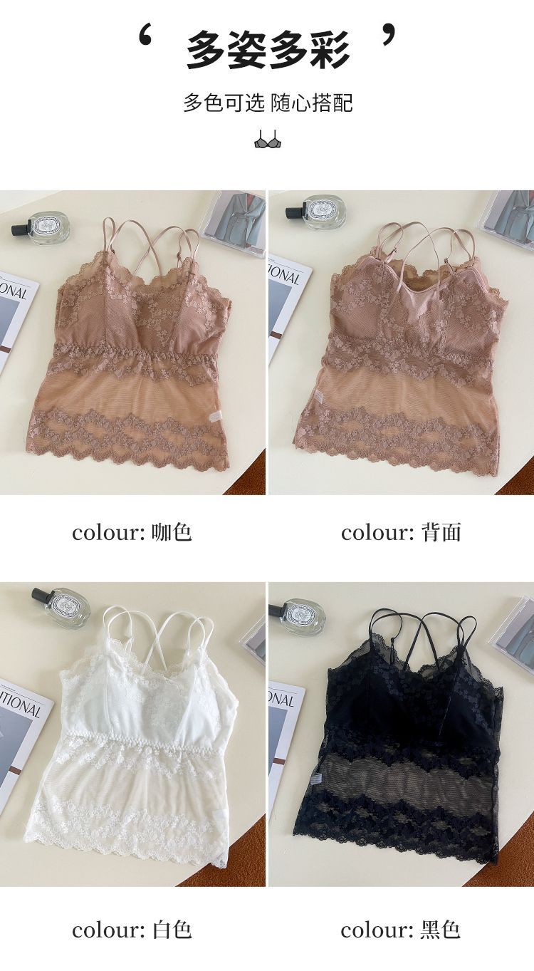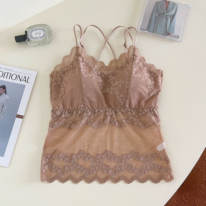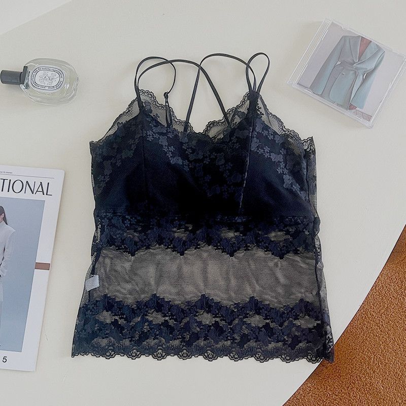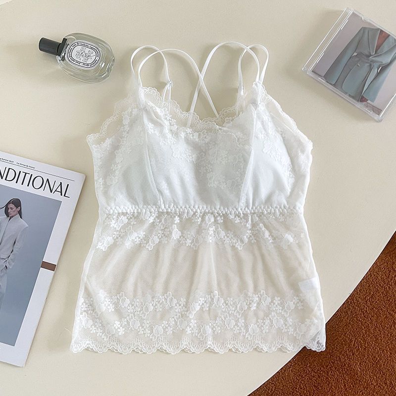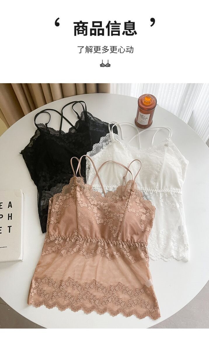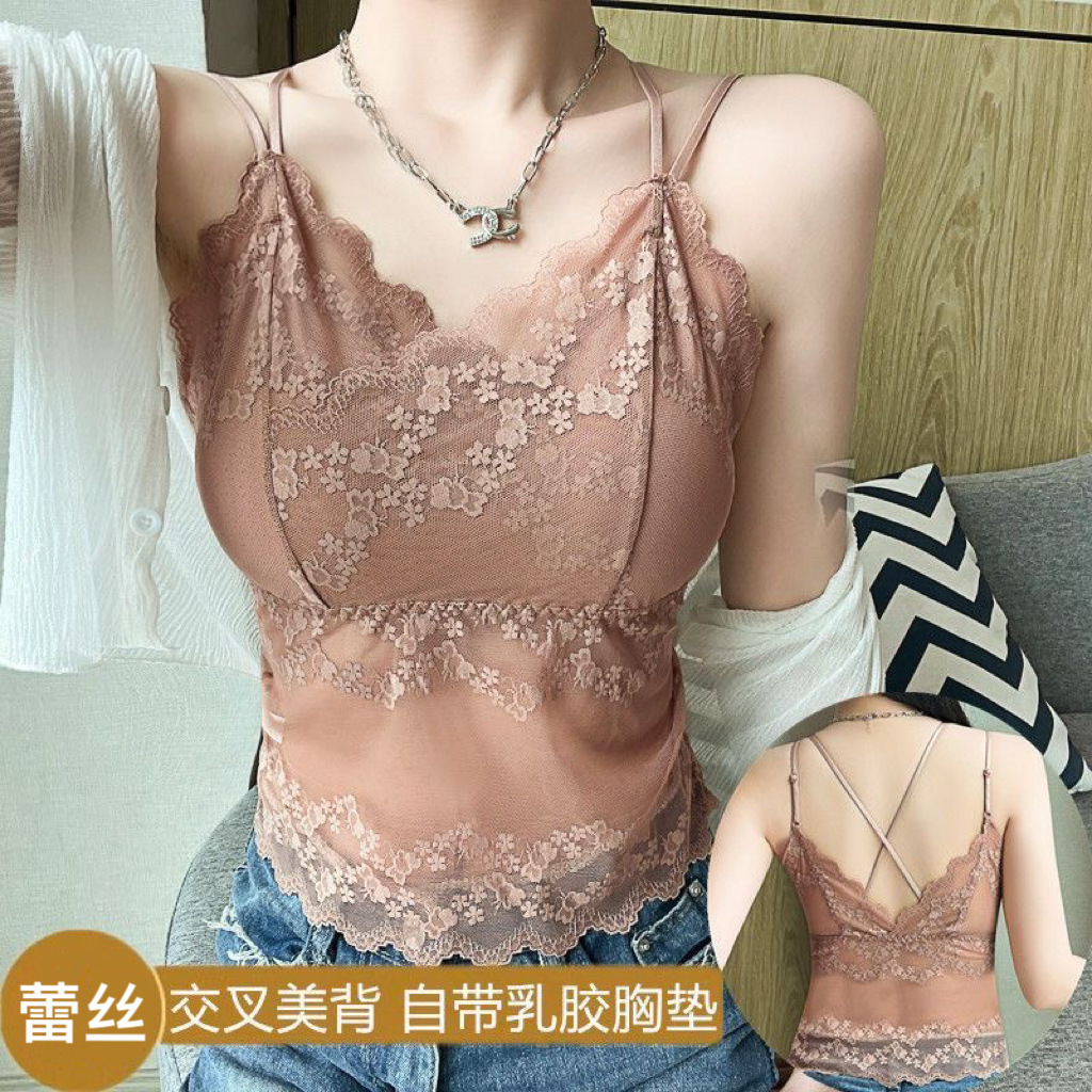 대외 무역 국경 간 인기 레이스 아름다운 등 크로스 캐미솔 여성용 가슴 패드가있는 얇은 대형 아우터 탑스토어 가기