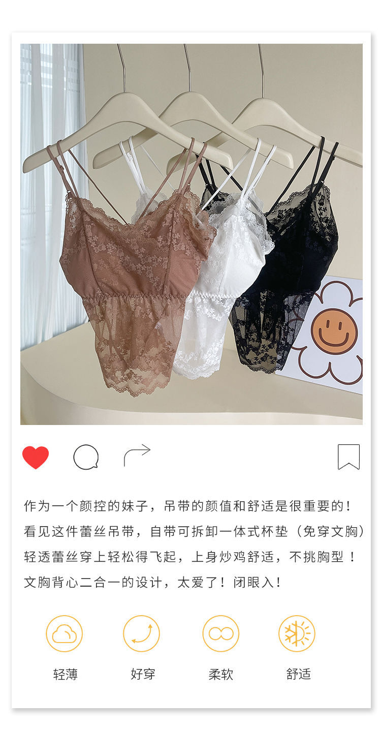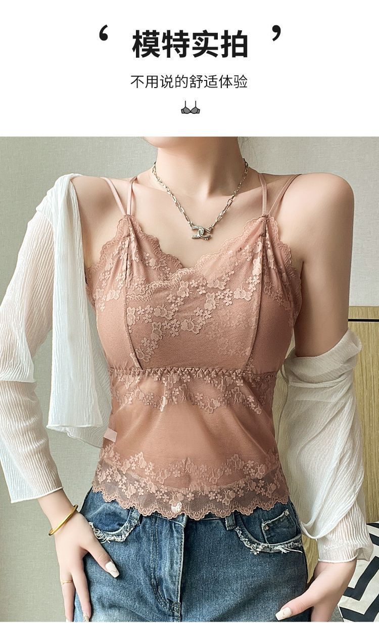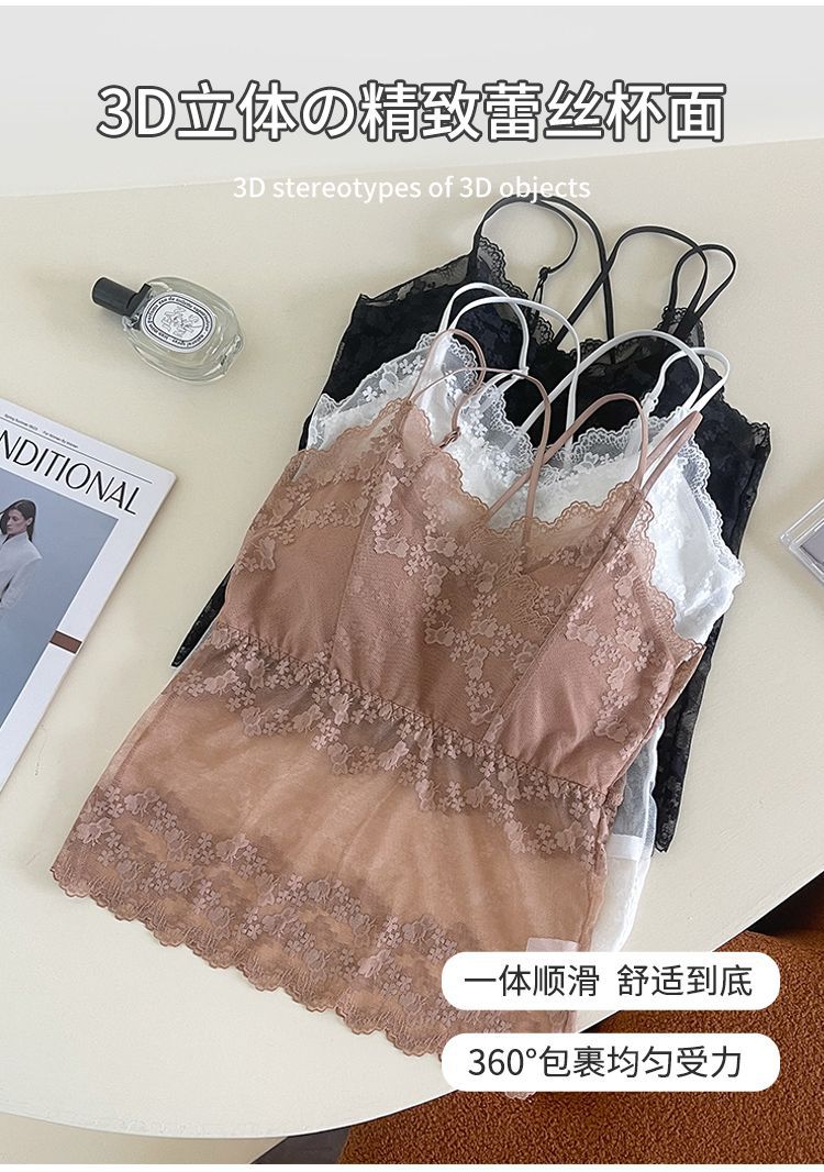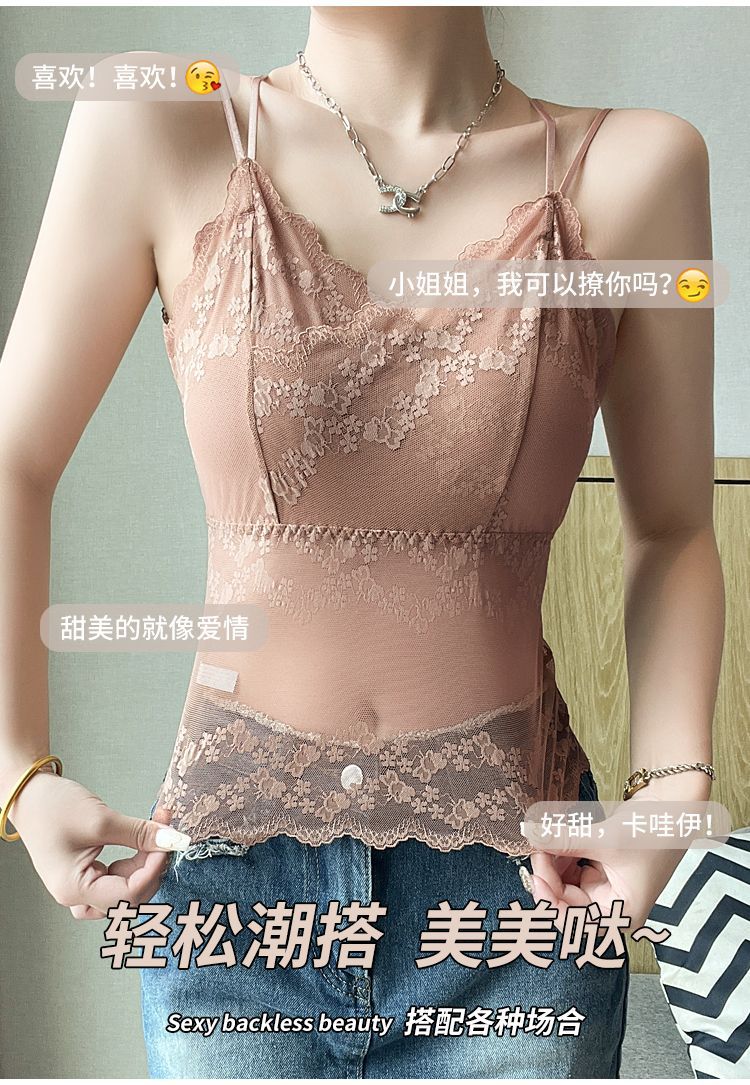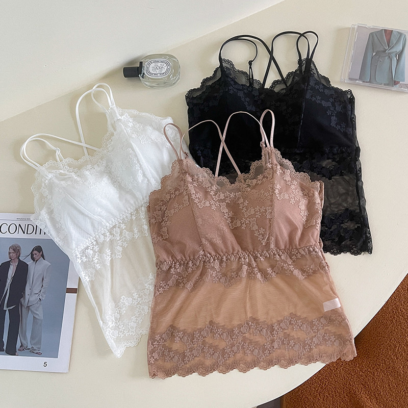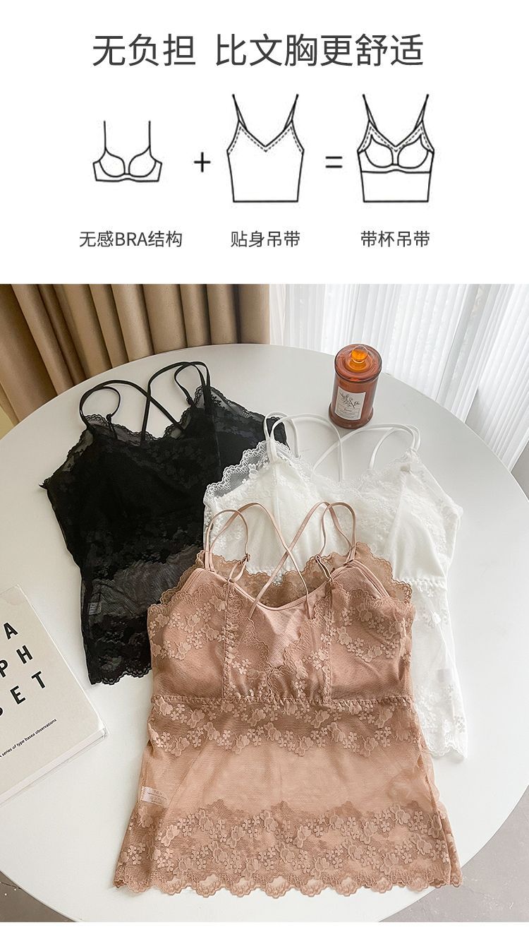 대외 무역 국경 간 인기 레이스 아름다운 등 크로스 캐미솔 여성용 가슴 패드가있는 얇은 대형 아우터 탑스토어 가기